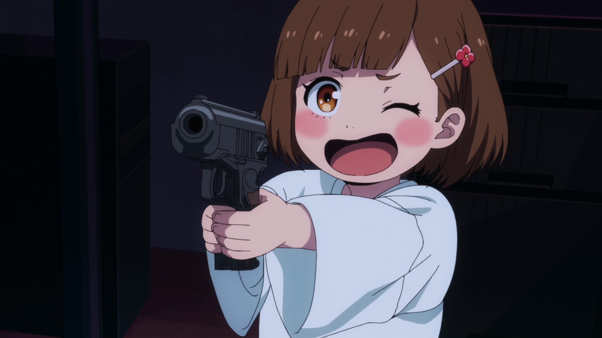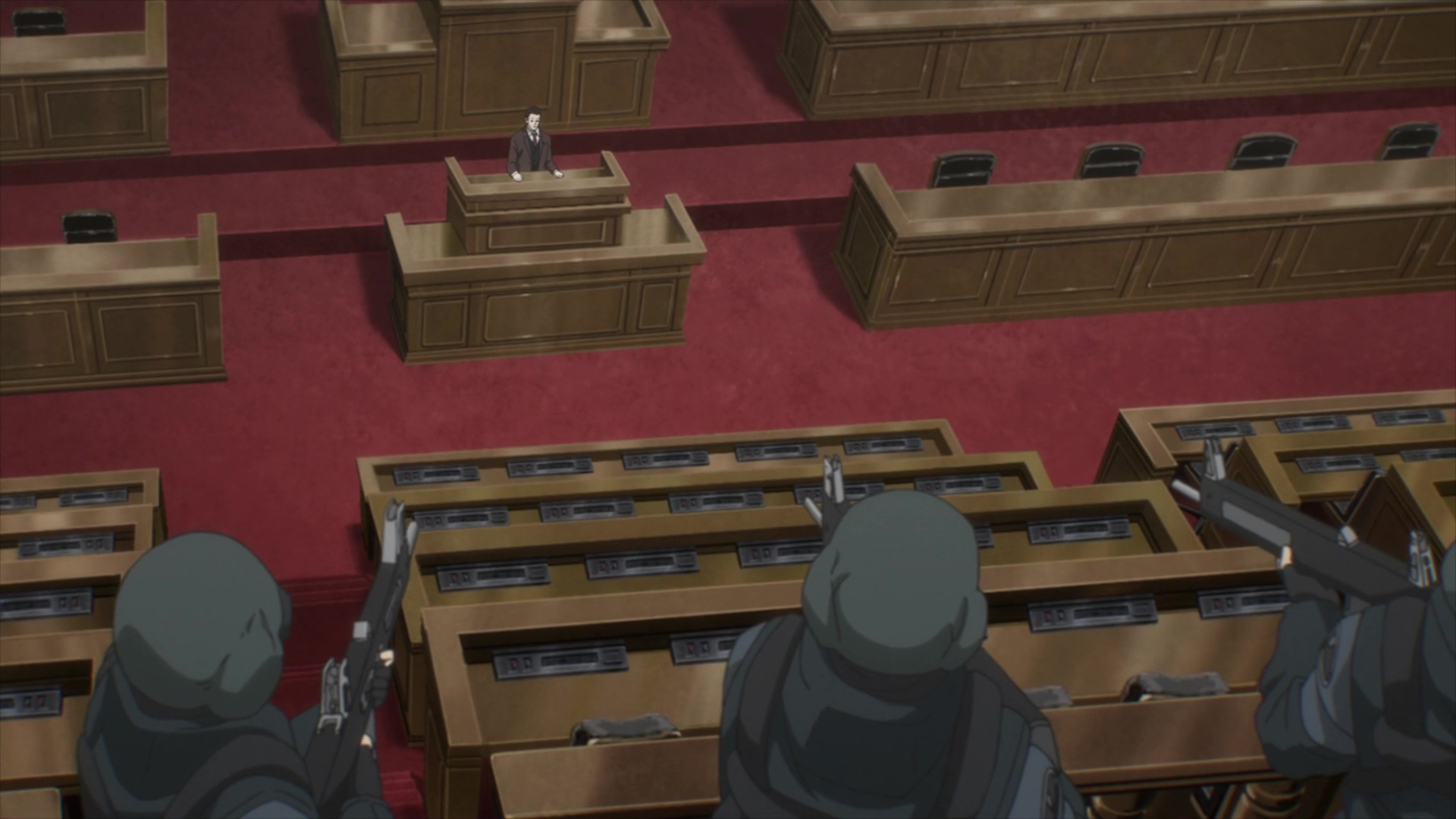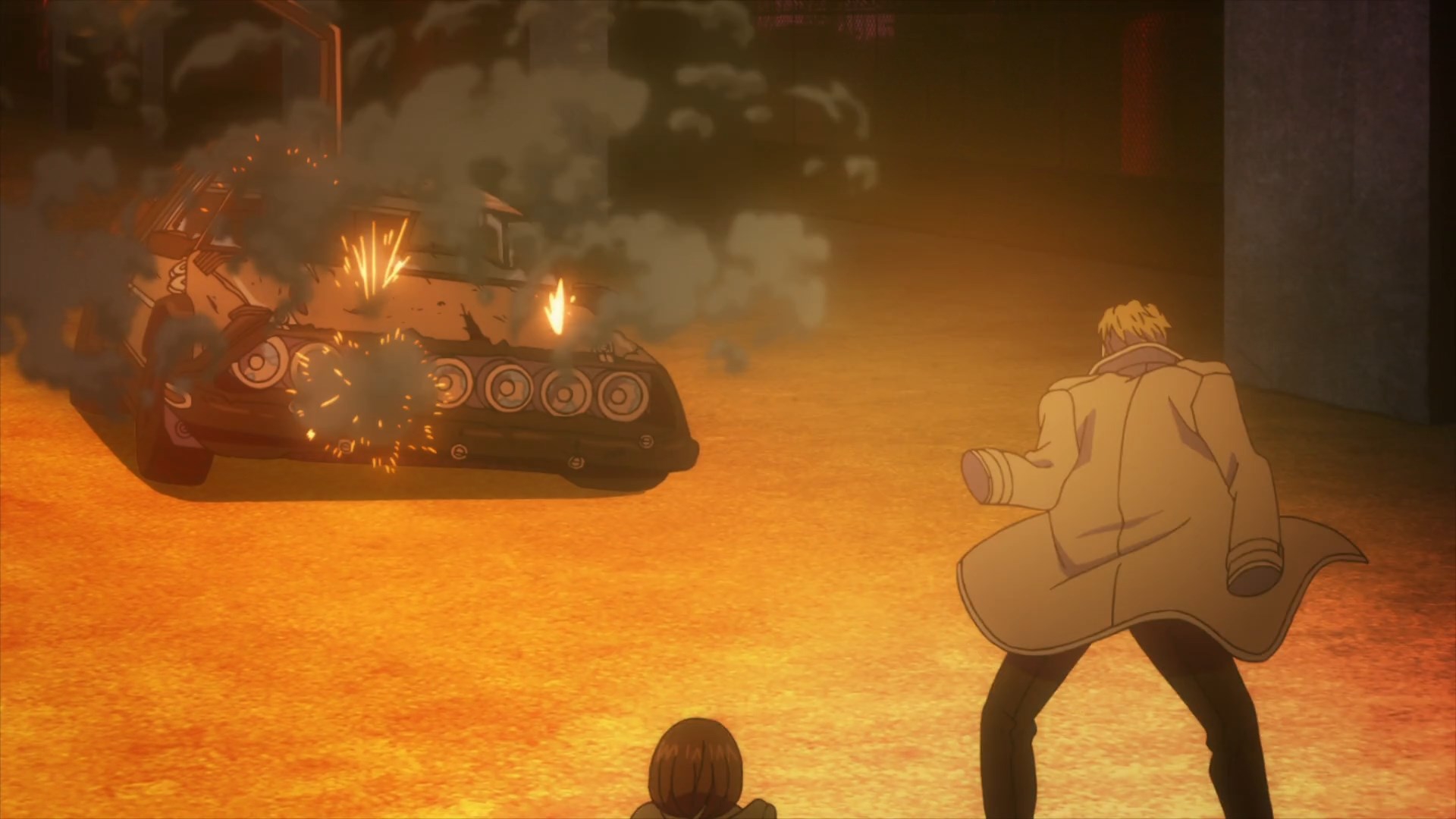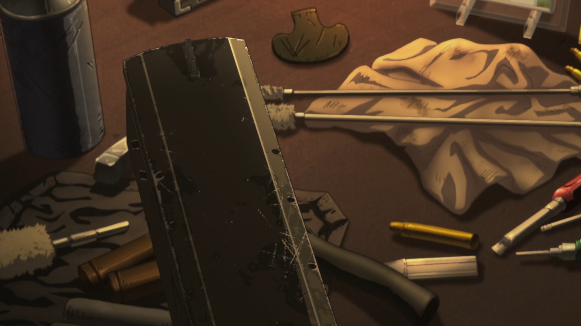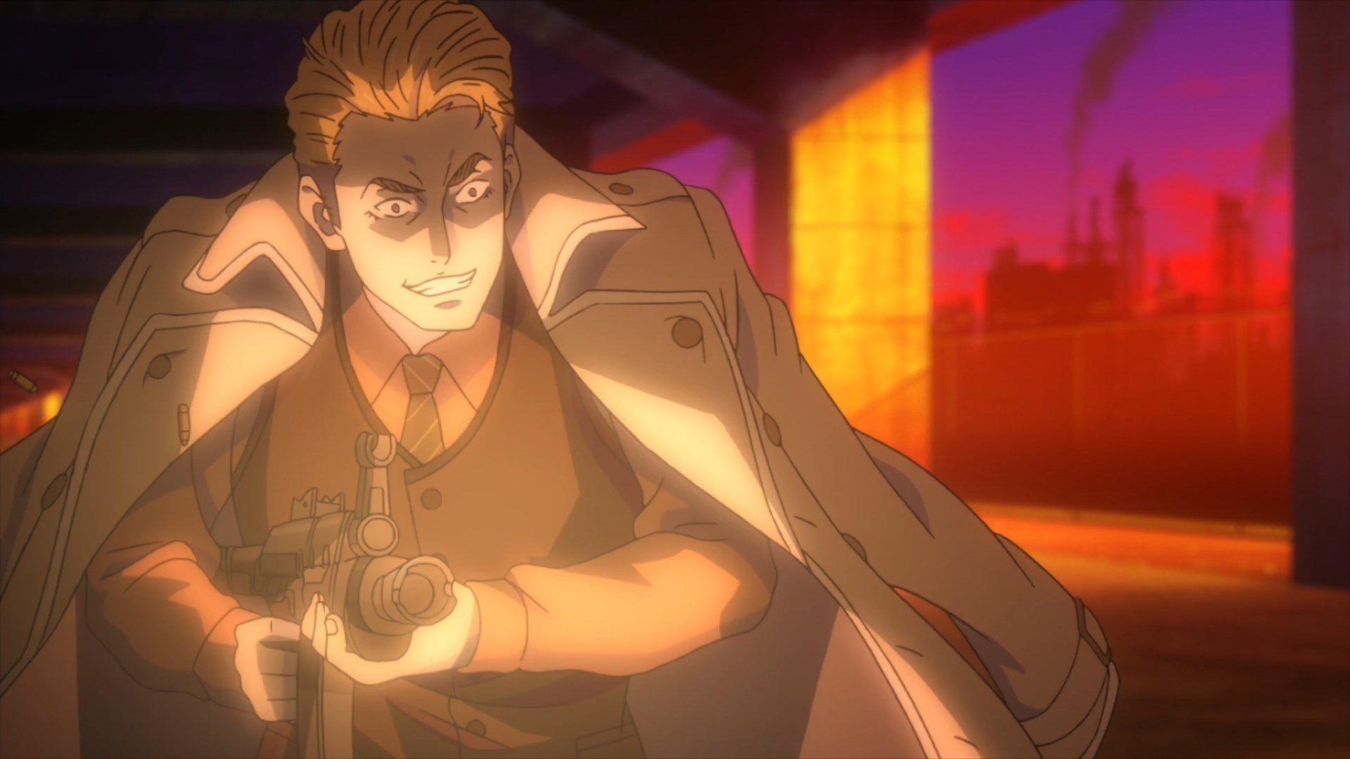 Вот американцы суки, скуколдили япох настолько, что когда в аниме появляется огнестрел, экшен с ним превращается в сплошную фантазию и ничего кроме улыбки не вызывает за очень редким исключением. Стул блядь! Зато теперь голливудские клише про то, что можно от автоматной очереди спрятаться за машиной не так будут раздражать.