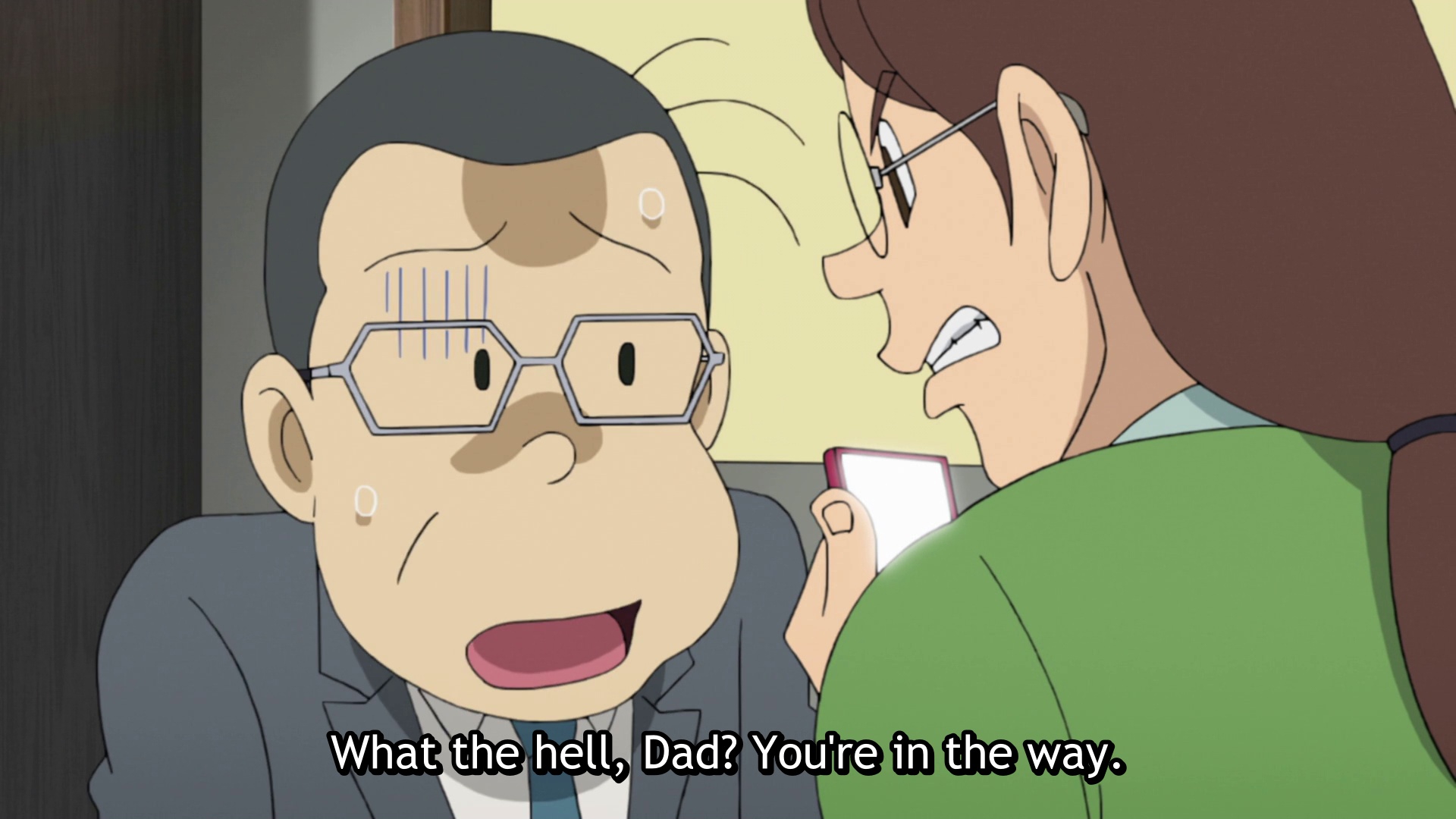 Вариация этого же сюжета с мамкой, заставляющей есть свои невкусные однотипные бенто, которые она одинаково готовит с детства, и вкусные бенто от сладкой писечки с работы, в старом сериале была посмешнее