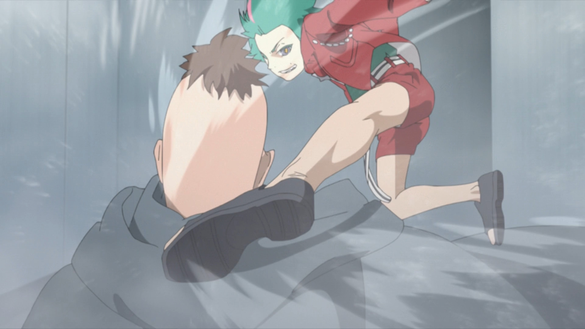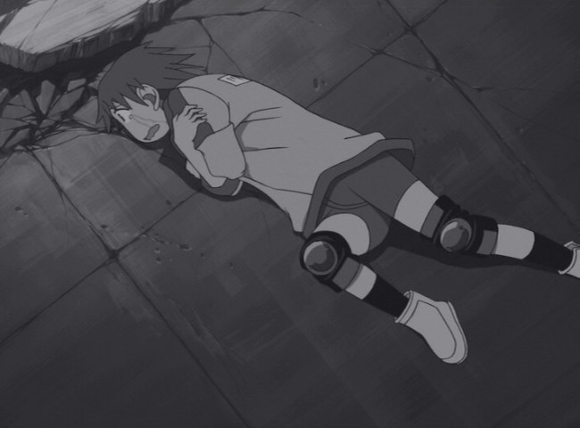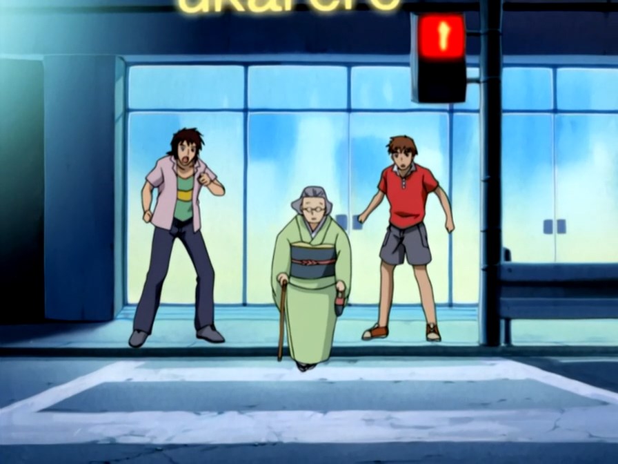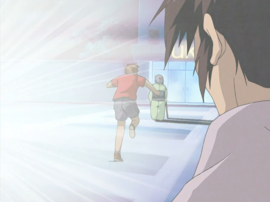 Чет никак не могу вспомнить в каком аниме был похожий момент, где мальчик становится старым, и вроде даже он в бейсболке был Старый Спригган что ли? Или нет