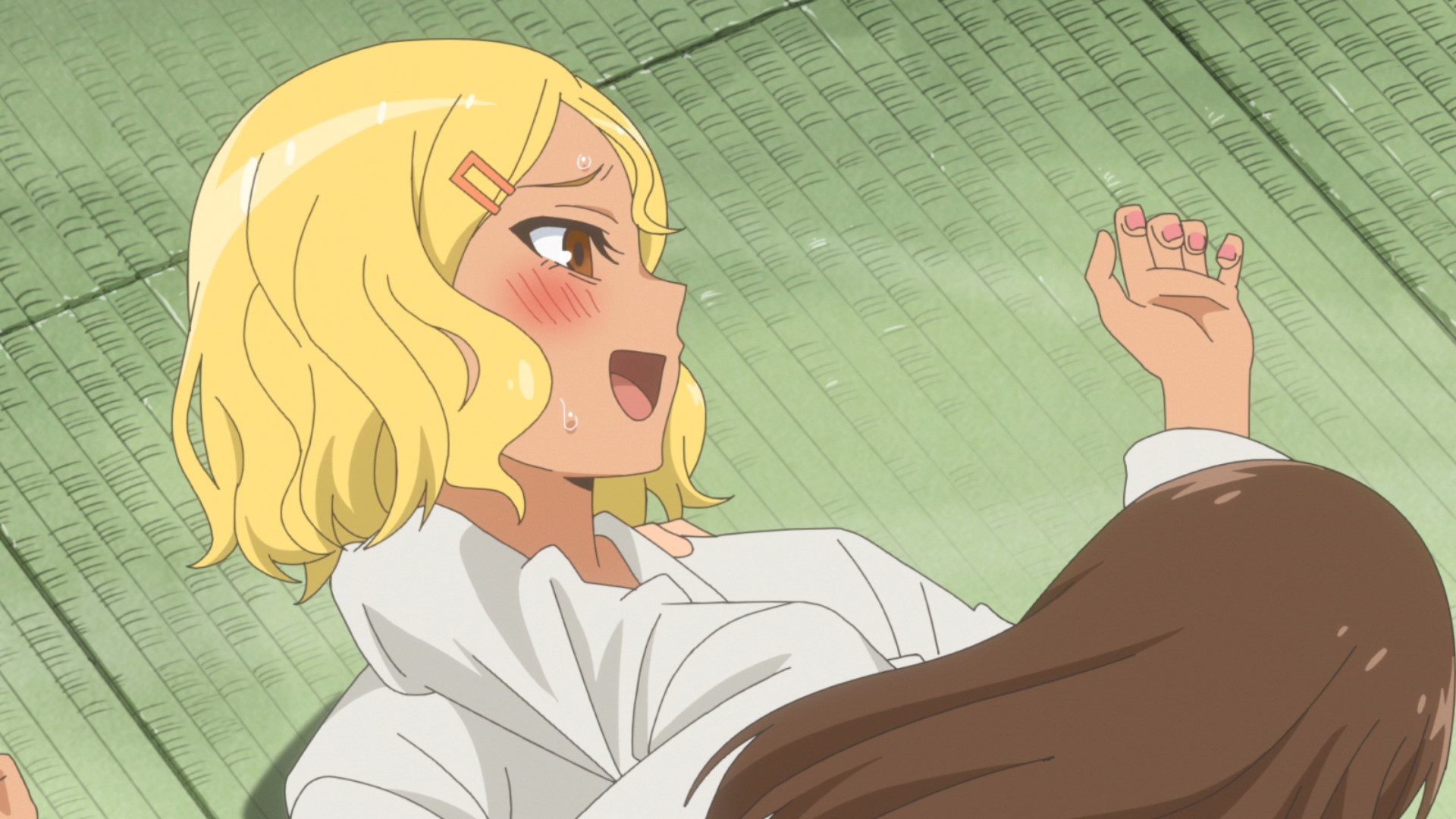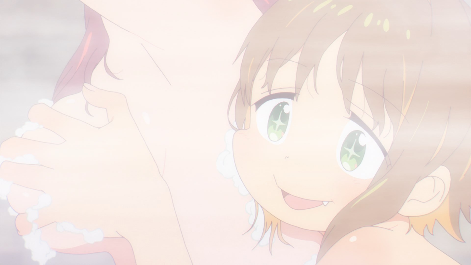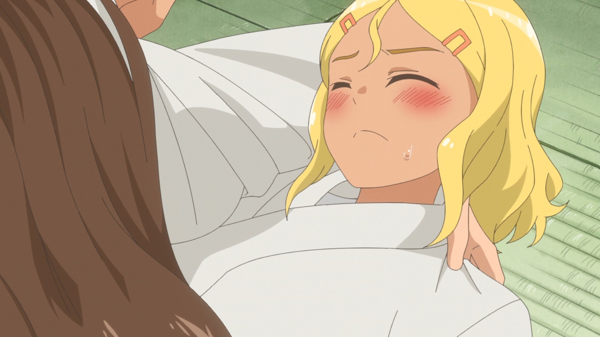 Шамико не первый раз провоцирует Момо на оголение, но та ни в какую. Юри-непрошибаемая, даже под водопад полезла в одежде. Но вообще, так дела не делаются, такой момент для фансервиса упущен.