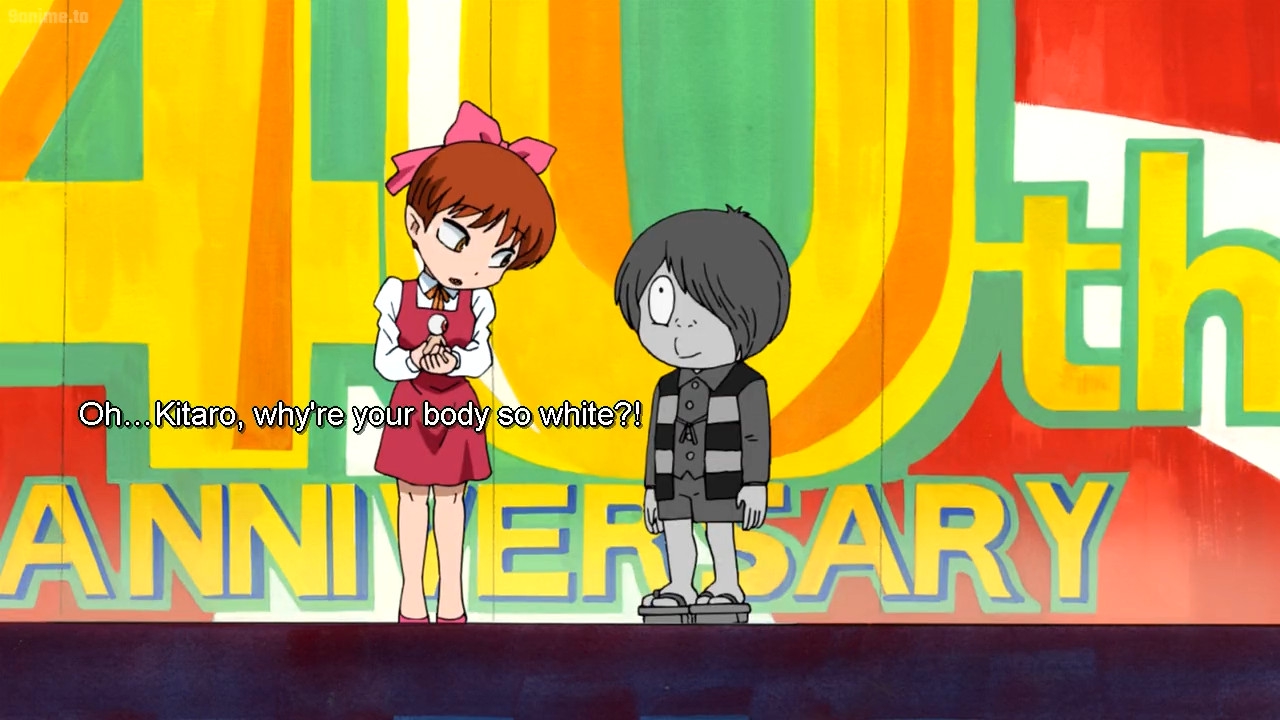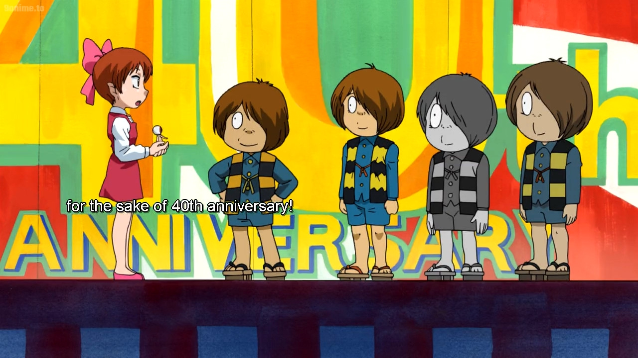 Какое прикольное начало. Фильм в честь сорокалетия франшизы и перед началом показа его представляют зрителям все старые версии Китаро, которые тоже пришли отпраздновать юбилей
