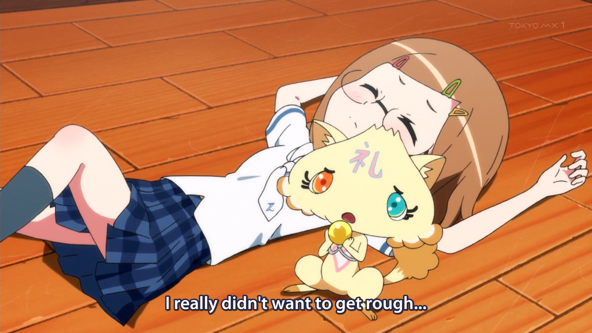 Тайтл наверное задумывался в 2011ом - тут даже не просто влияние, а некий симбиоз харткач прекьюра (я правда других и не смотрел, но все эти цветы, сердца, дизайн главных героинь и прочее) и Мадоки, от которой заимствованы серьезные такие элементы сюжета и общей концепции. Но история и месседж тут все же самостоятельные, впрочем раскрываться они начали только в последних полутора эпизодах, но уже можно видеть идеи манифеста "Предупреждение человечеству". В целом весьма неплохо, если забыть о паршивом качестве самого рипа, особенно сильно сказывавшемся на битвах и фрагментах типа пик3. Хотя последних было не много - вообще это наверное единственное разочарование - от тайтла Такаши Мураками ожидаешь как бы побольше Такаши Мураками...
