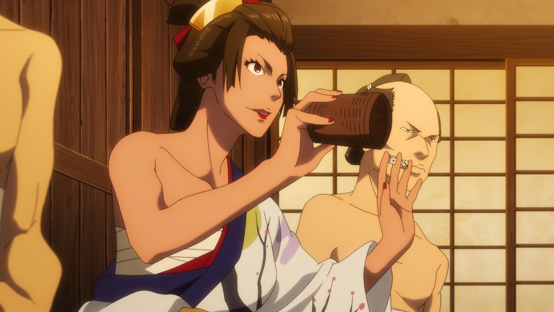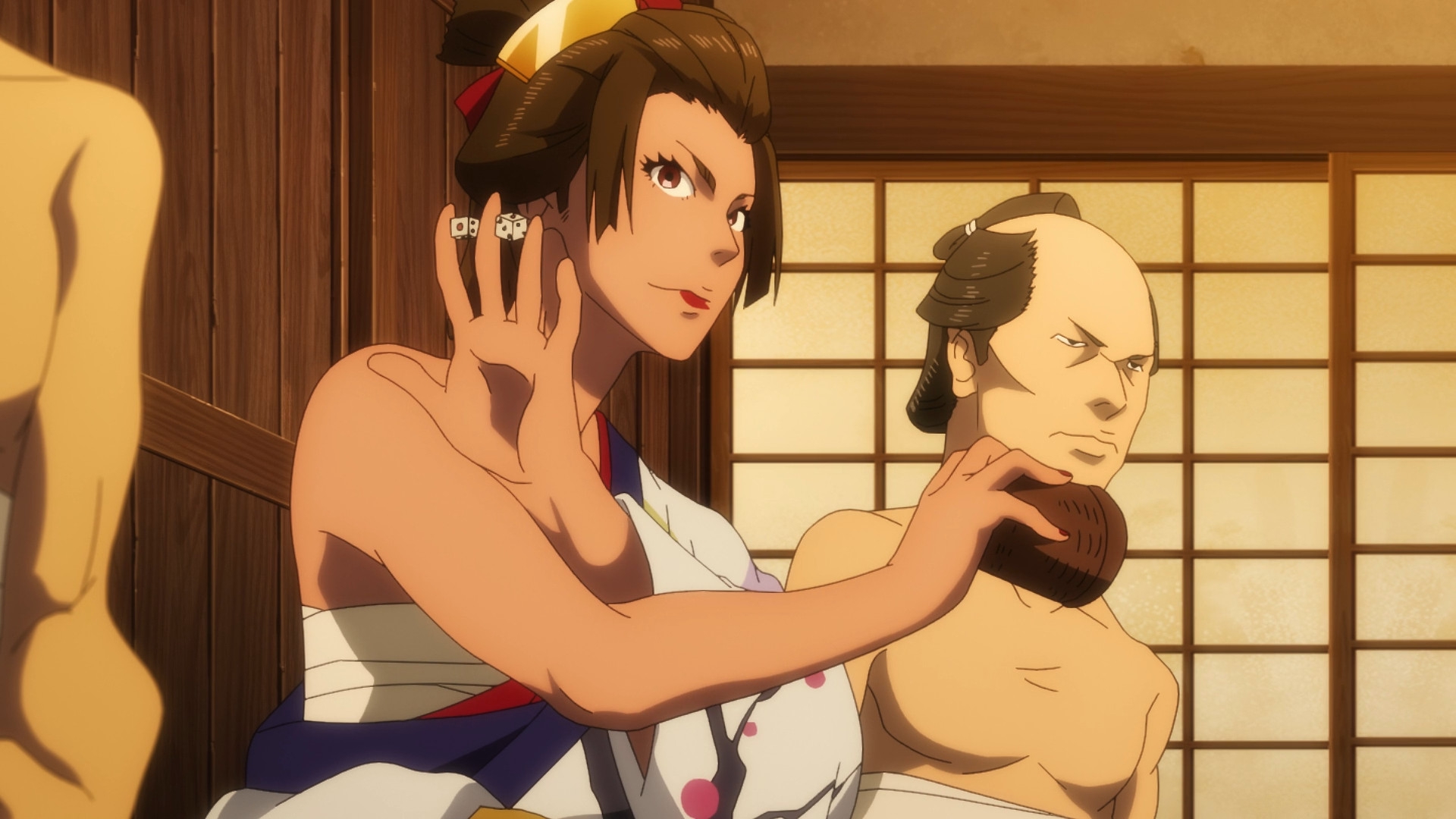 Чет вспомнился какой-то тайтл с моментом с тянкой-диллершей в игре в кости, но не вспоминается какой Может быть Mugen no Juunin, полистал скрины, но не нашел такого момента