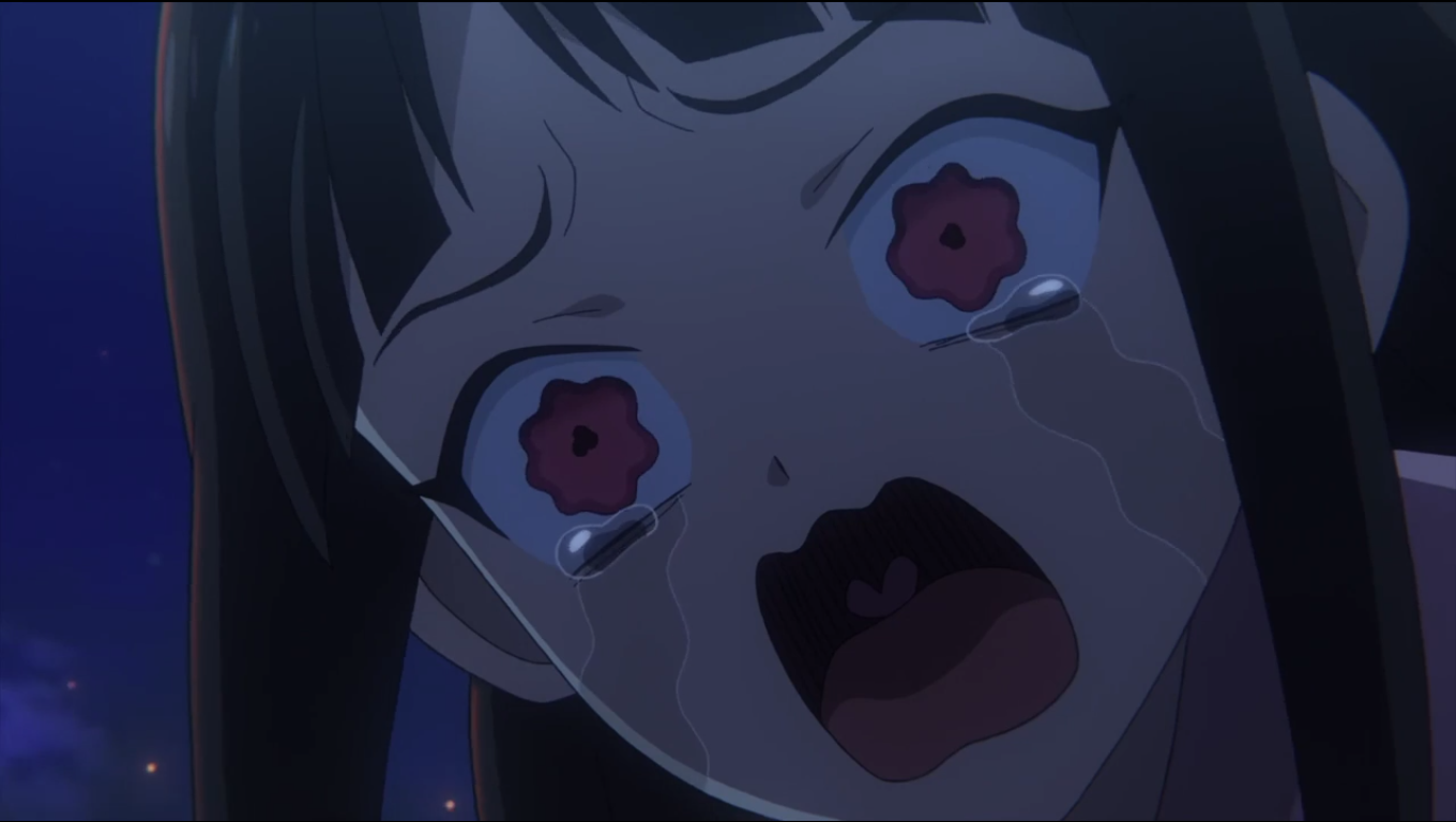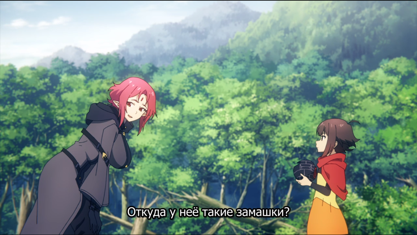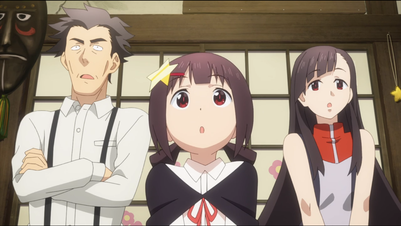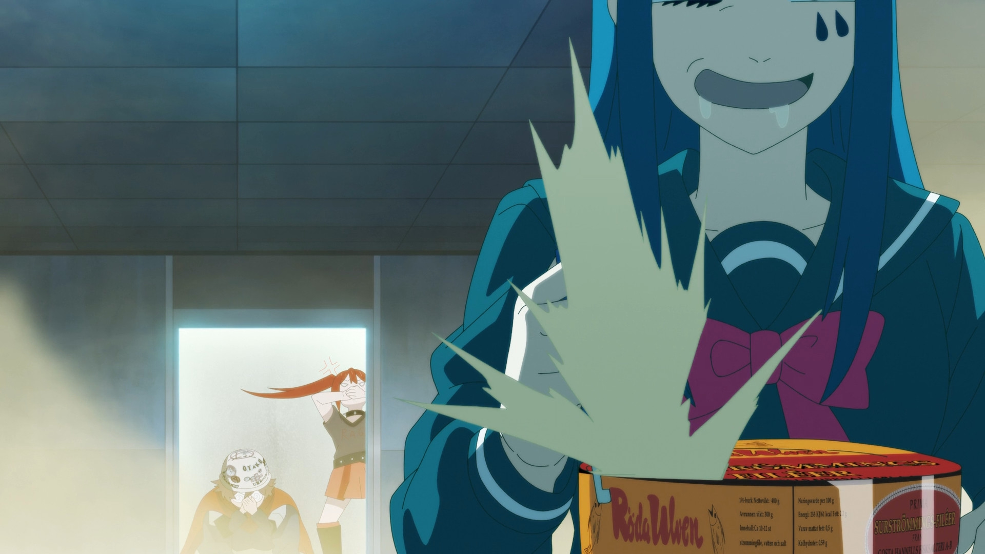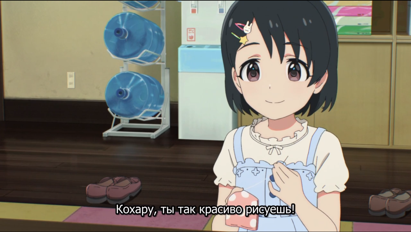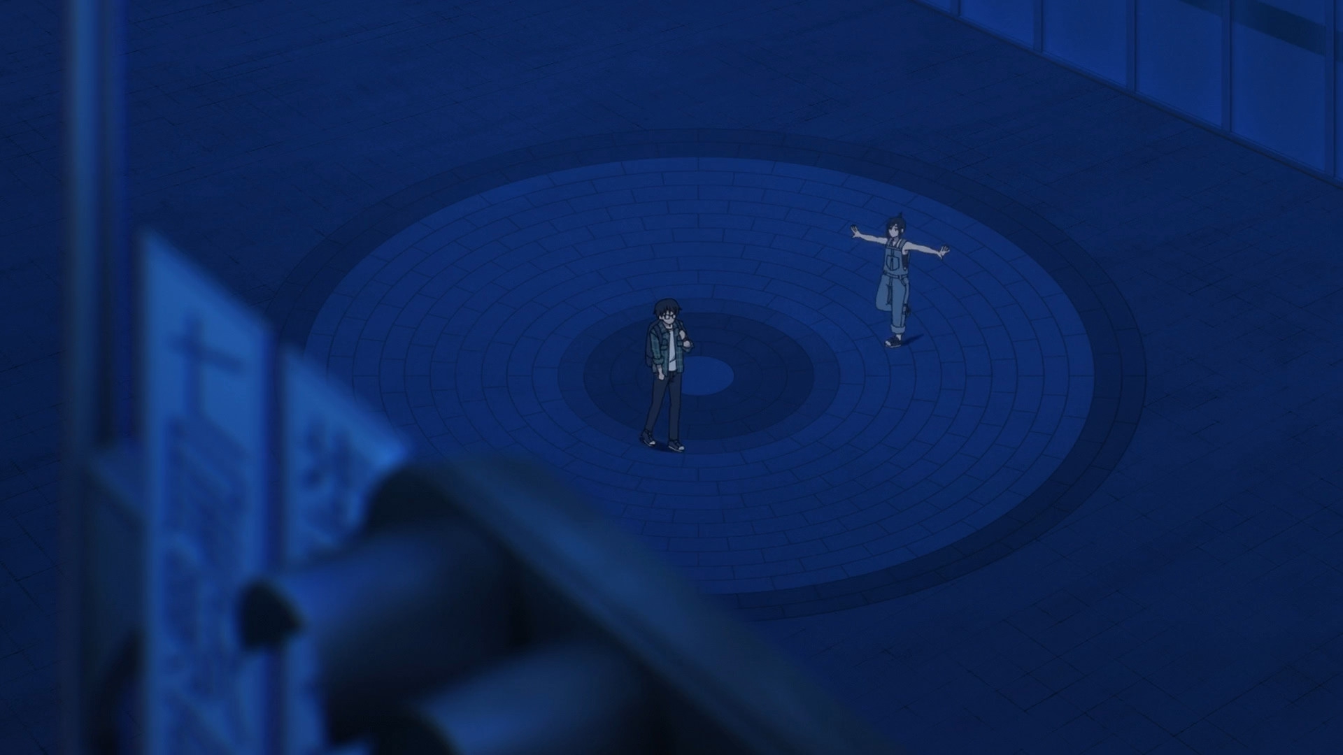 Нет, все же залупа какая-то. Только усилилось ощущение любительского характера всего этого, и чувство постороннего - ну словно ты в чужой тебе компании оказался - все что-то шутят, мемсами и отсылками перекидываются и хихикают, а ты не то, чтобы не понимаешь отсылок и культурный контекст, но просто веселым все происходящее не кажется. В общем опенинг и эндинг видимо останутся лучшим, что тайтлу есть предложить - тут, кстати, поработал Тайки Конно, выходец из Шафта, с его очень характерным художественным стилем, лучше всего известным по второму эпизоду Онимоногатари с длинными полотнами истории Шинобу. Дроп