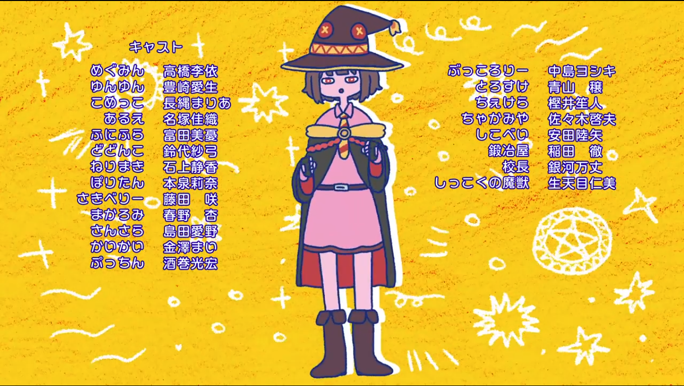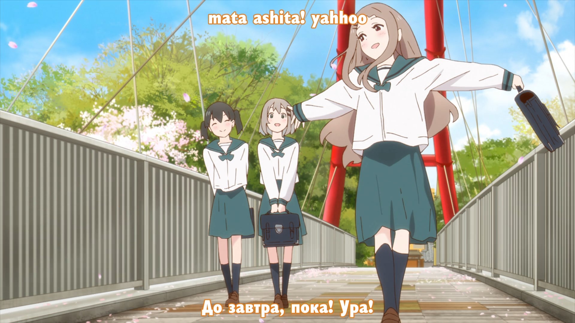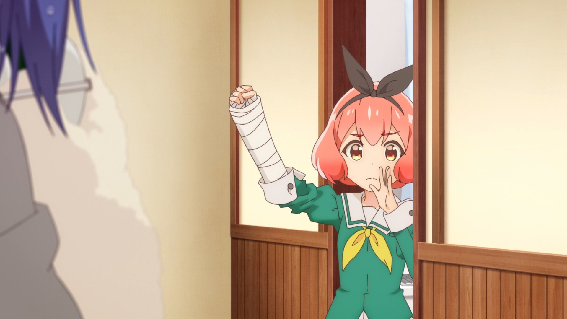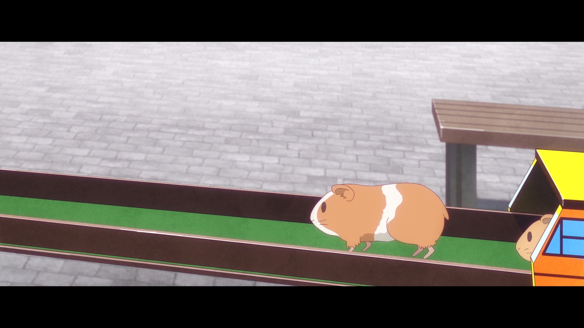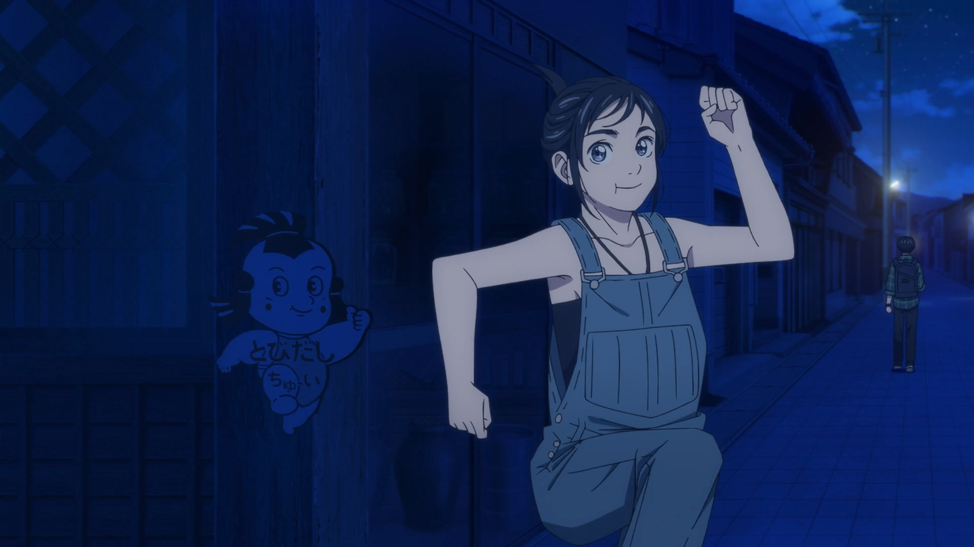 Нет, все же залупа какая-то. Только усилилось ощущение любительского характера всего этого, и чувство постороннего - ну словно ты в чужой тебе компании оказался - все что-то шутят, мемсами и отсылками перекидываются и хихикают, а ты не то, чтобы не понимаешь отсылок и культурный контекст, но просто веселым все происходящее не кажется. В общем опенинг и эндинг видимо останутся лучшим, что тайтлу есть предложить - тут, кстати, поработал Тайки Конно, выходец из Шафта, с его очень характерным художественным стилем, лучше всего известным по второму эпизоду Онимоногатари с длинными полотнами истории Шинобу. Дроп