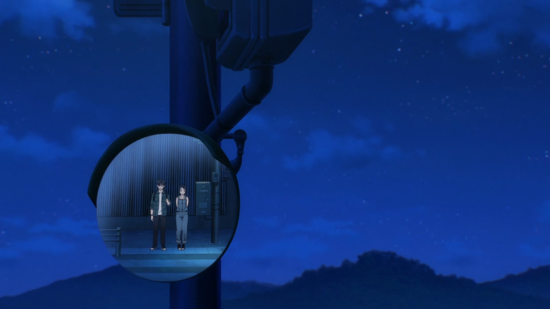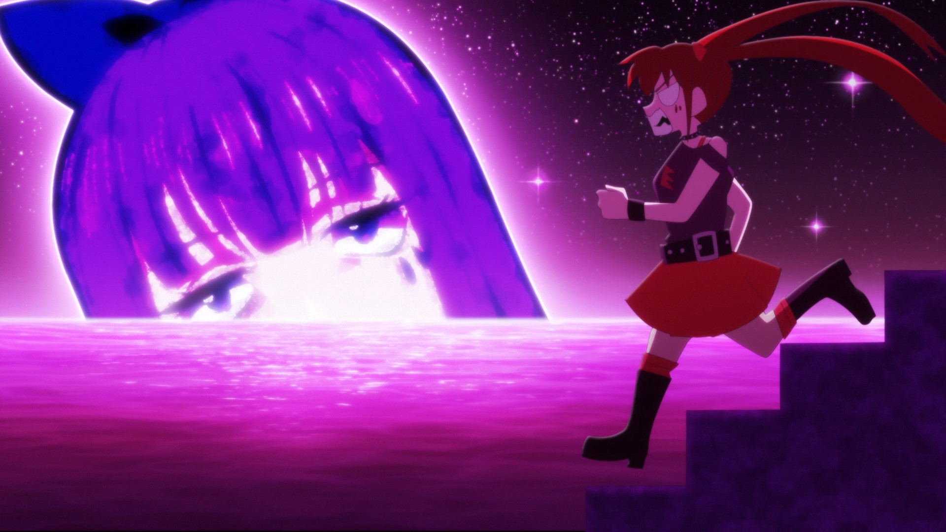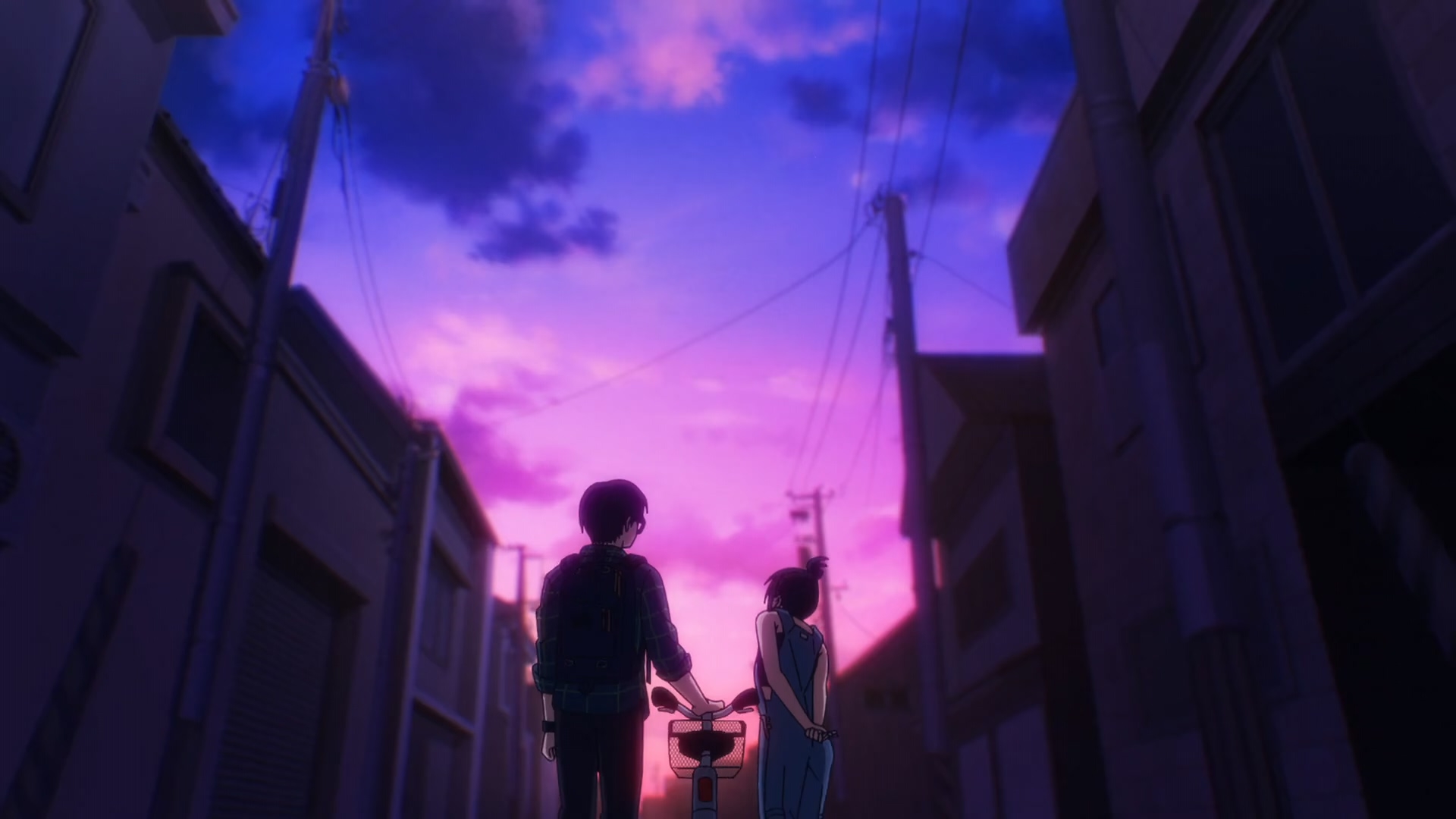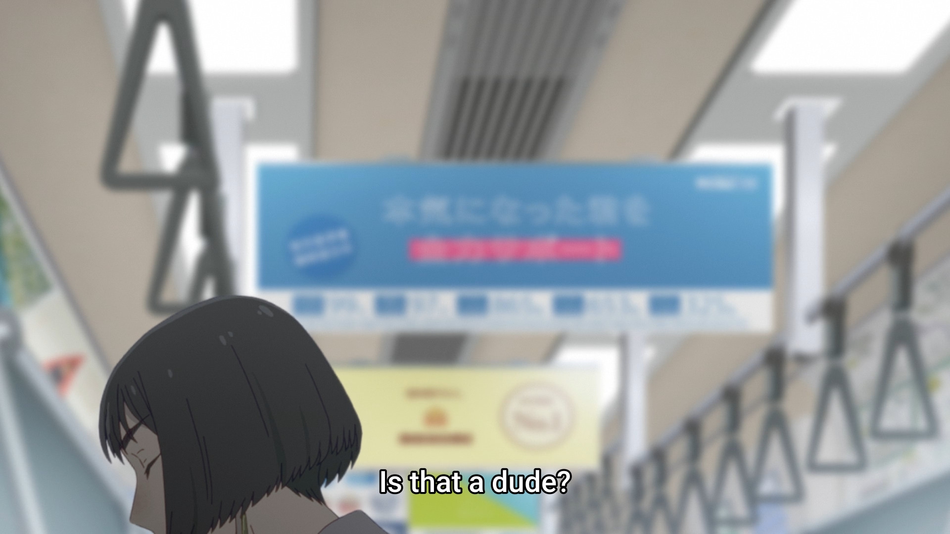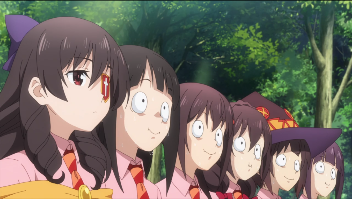 Нет, все же залупа какая-то. Только усилилось ощущение любительского характера всего этого, и чувство постороннего - ну словно ты в чужой тебе компании оказался - все что-то шутят, мемсами и отсылками перекидываются и хихикают, а ты не то, чтобы не понимаешь отсылок и культурный контекст, но просто веселым все происходящее не кажется. В общем опенинг и эндинг видимо останутся лучшим, что тайтлу есть предложить - тут, кстати, поработал Тайки Конно, выходец из Шафта, с его очень характерным художественным стилем, лучше всего известным по второму эпизоду Онимоногатари с длинными полотнами истории Шинобу. Дроп