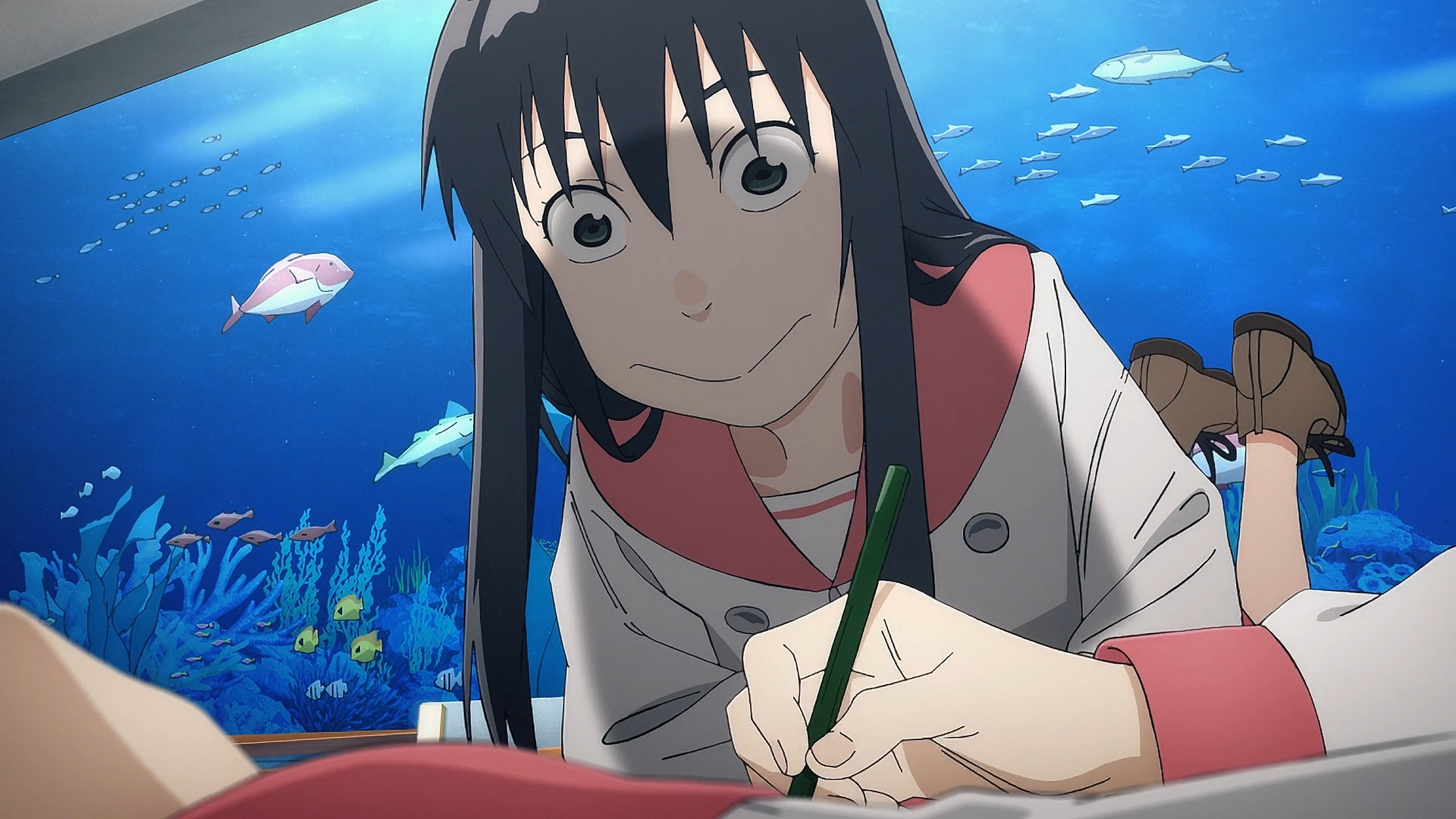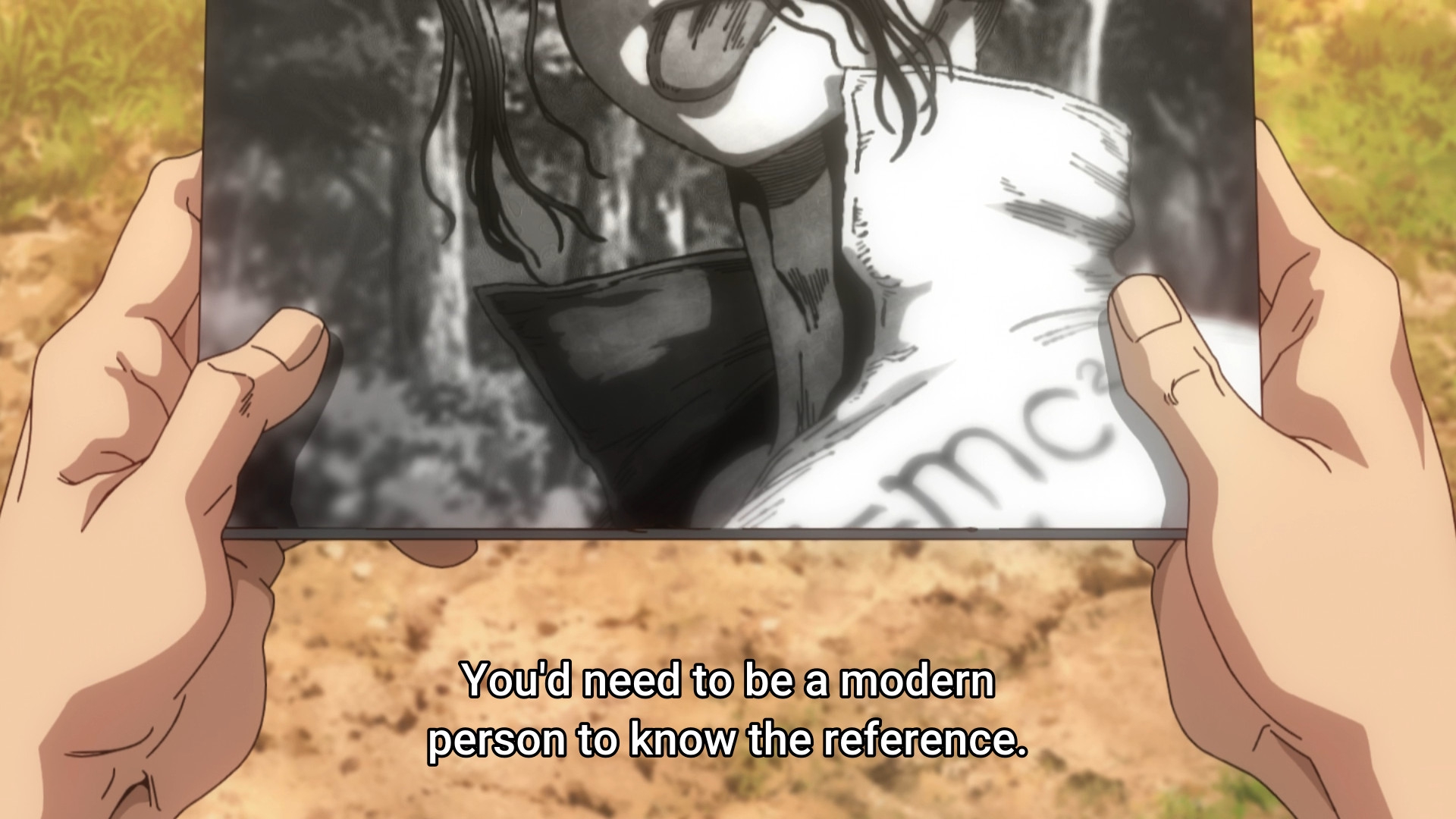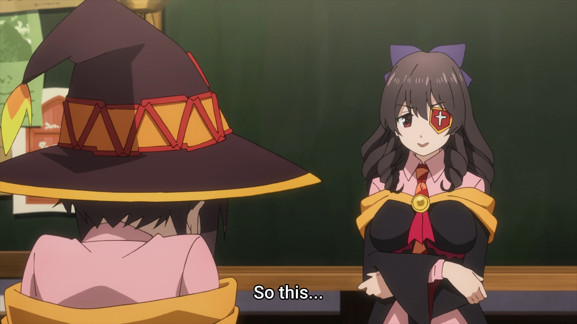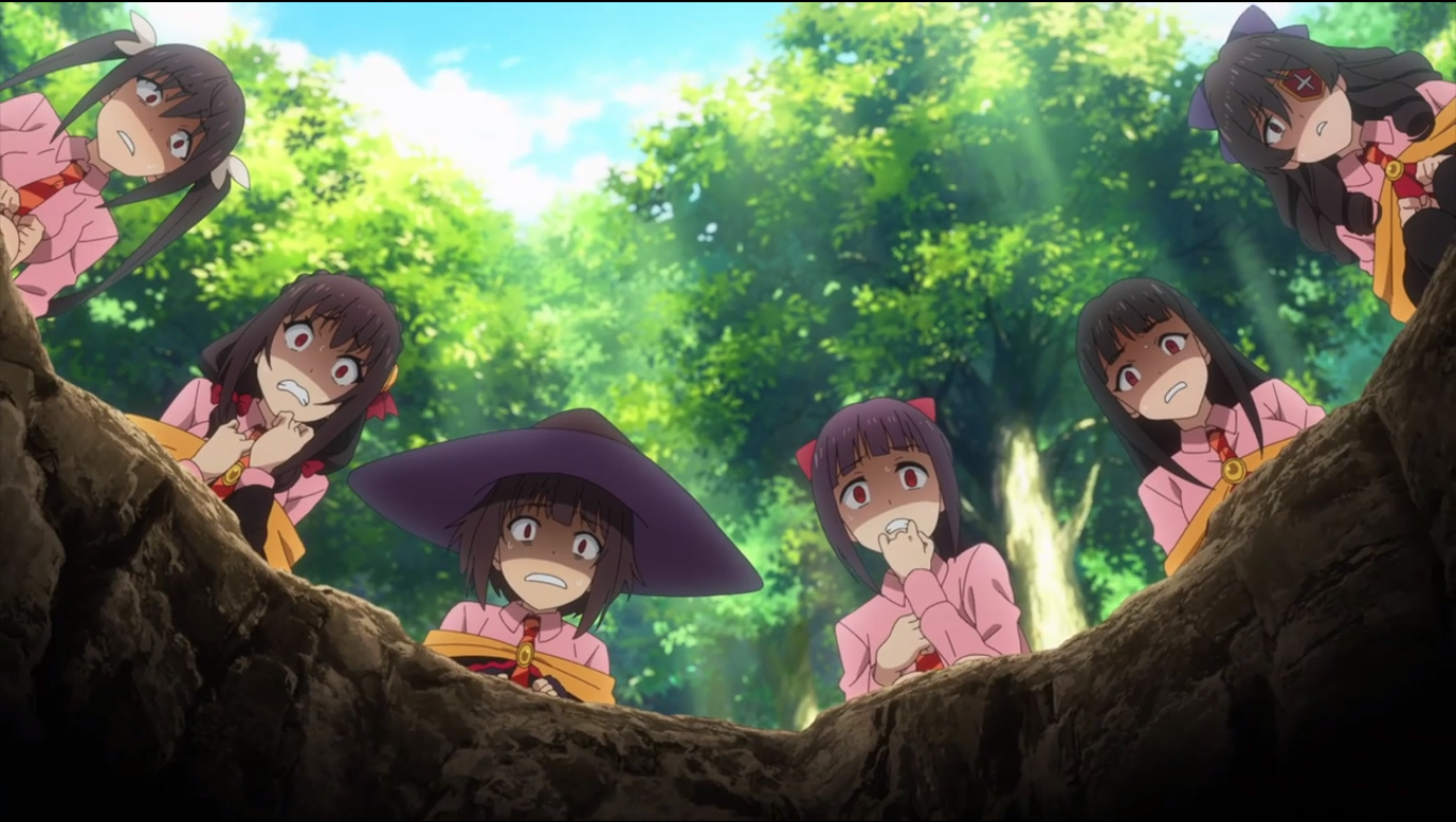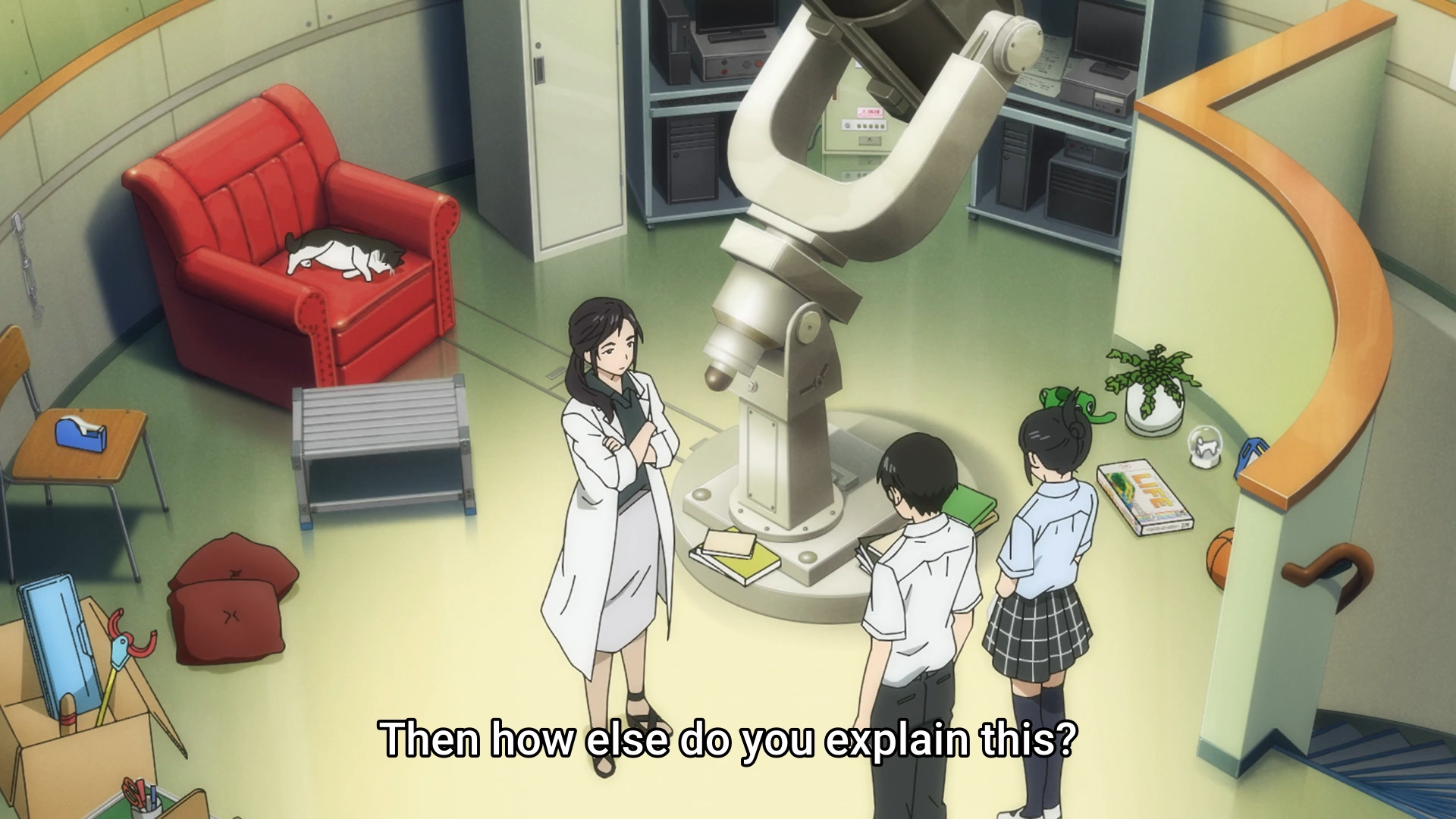 Нет, все же залупа какая-то. Только усилилось ощущение любительского характера всего этого, и чувство постороннего - ну словно ты в чужой тебе компании оказался - все что-то шутят, мемсами и отсылками перекидываются и хихикают, а ты не то, чтобы не понимаешь отсылок и культурный контекст, но просто веселым все происходящее не кажется. В общем опенинг и эндинг видимо останутся лучшим, что тайтлу есть предложить - тут, кстати, поработал Тайки Конно, выходец из Шафта, с его очень характерным художественным стилем, лучше всего известным по второму эпизоду Онимоногатари с длинными полотнами истории Шинобу. Дроп