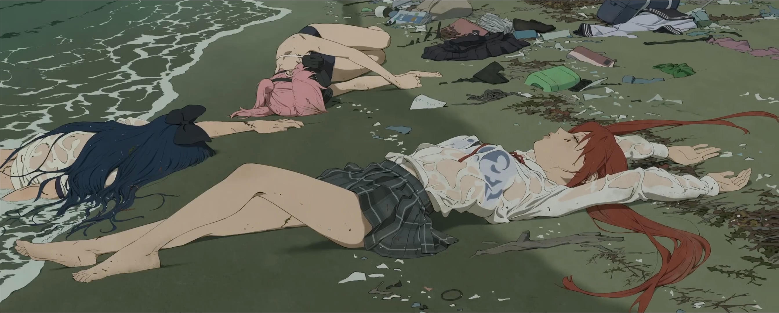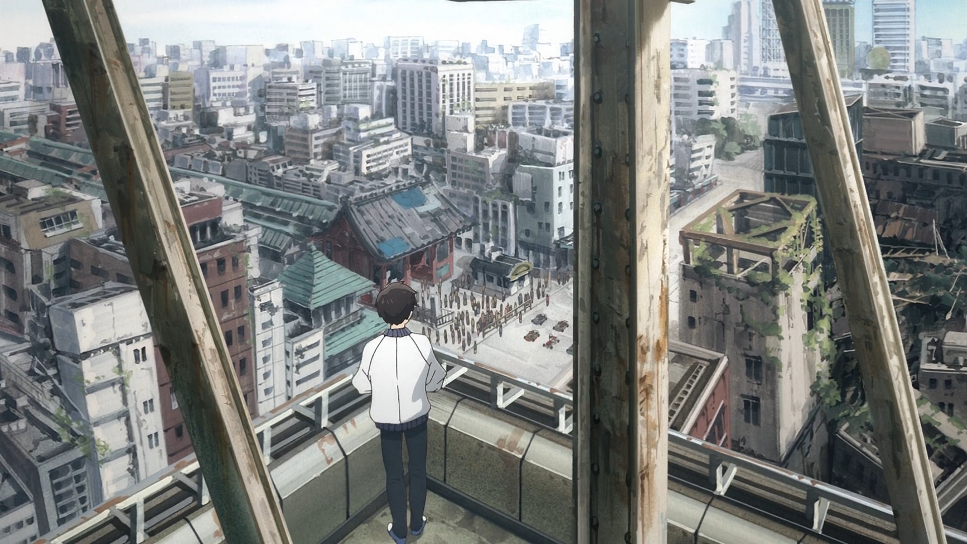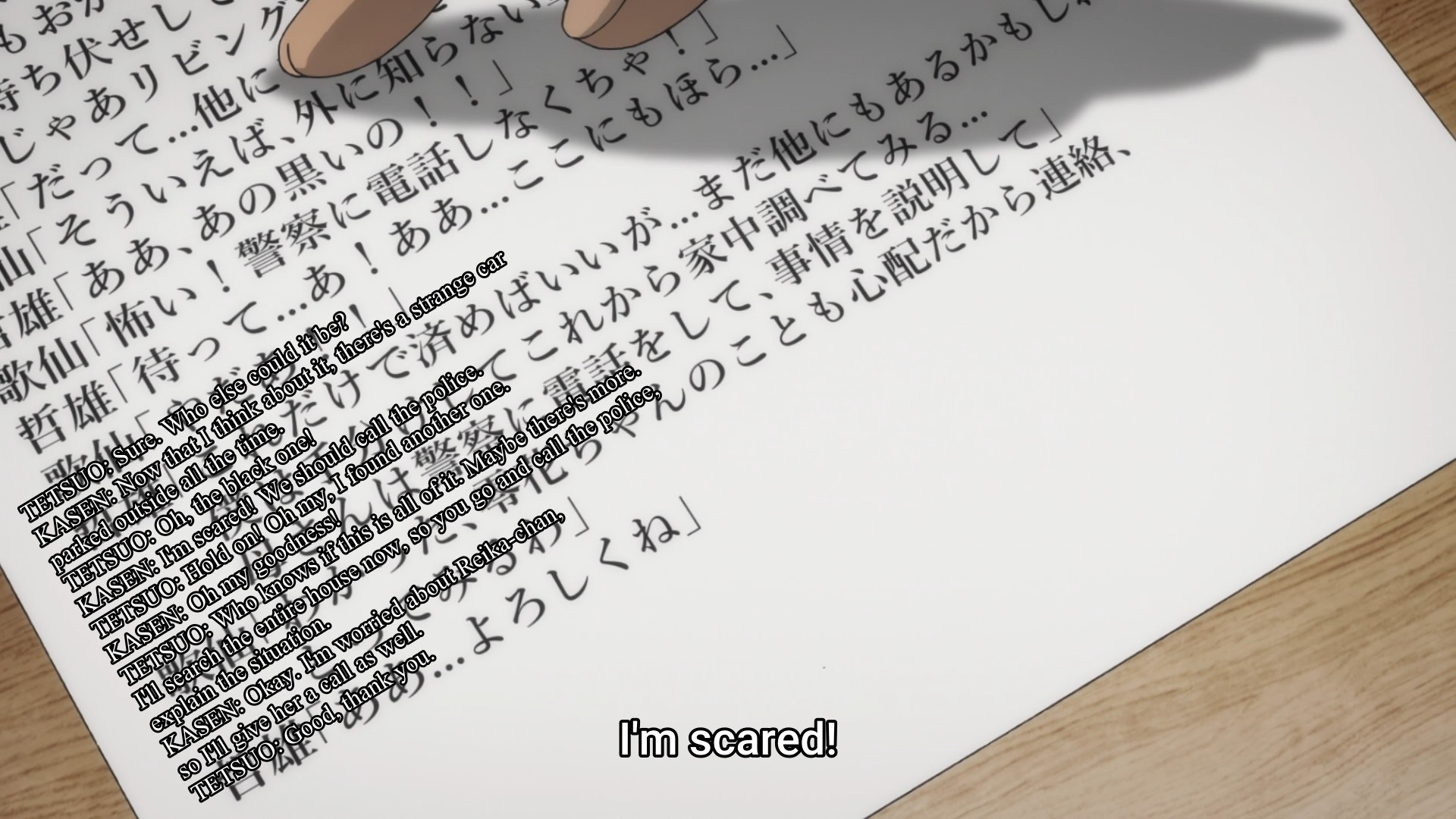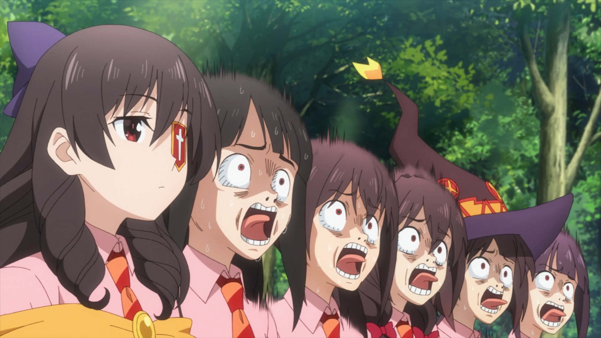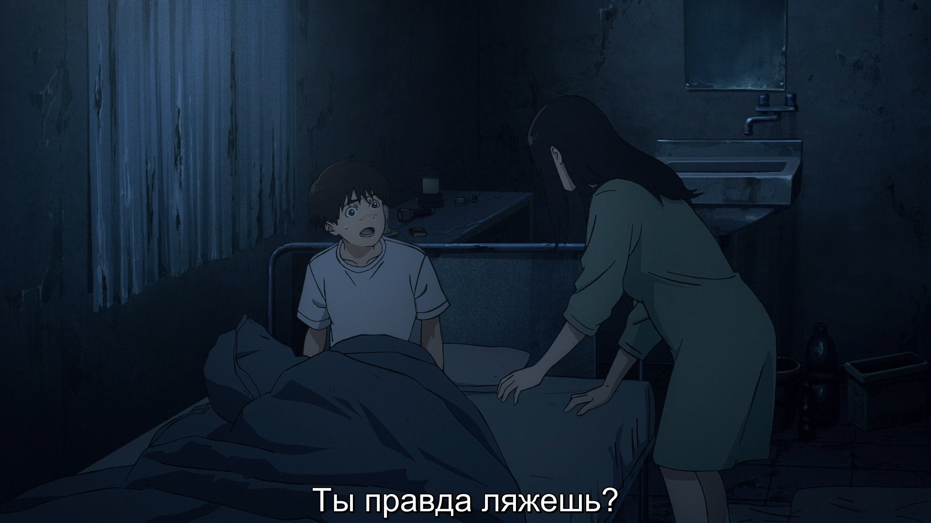 Нет, все же залупа какая-то. Только усилилось ощущение любительского характера всего этого, и чувство постороннего - ну словно ты в чужой тебе компании оказался - все что-то шутят, мемсами и отсылками перекидываются и хихикают, а ты не то, чтобы не понимаешь отсылок и культурный контекст, но просто веселым все происходящее не кажется. В общем опенинг и эндинг видимо останутся лучшим, что тайтлу есть предложить - тут, кстати, поработал Тайки Конно, выходец из Шафта, с его очень характерным художественным стилем, лучше всего известным по второму эпизоду Онимоногатари с длинными полотнами истории Шинобу. Дроп