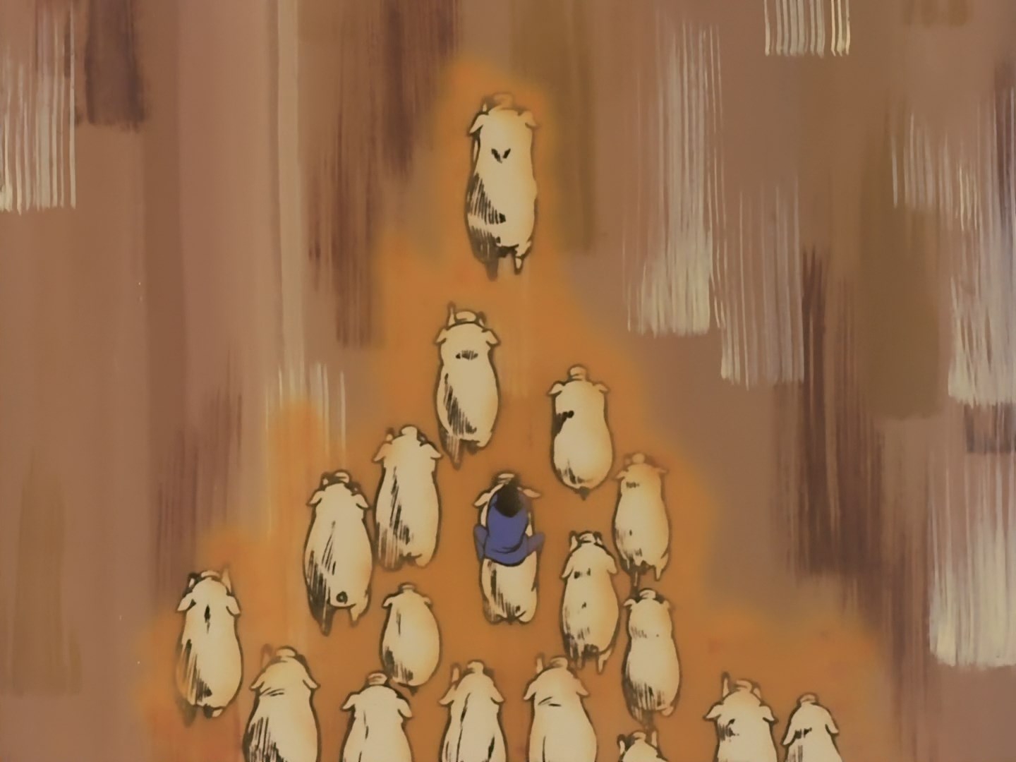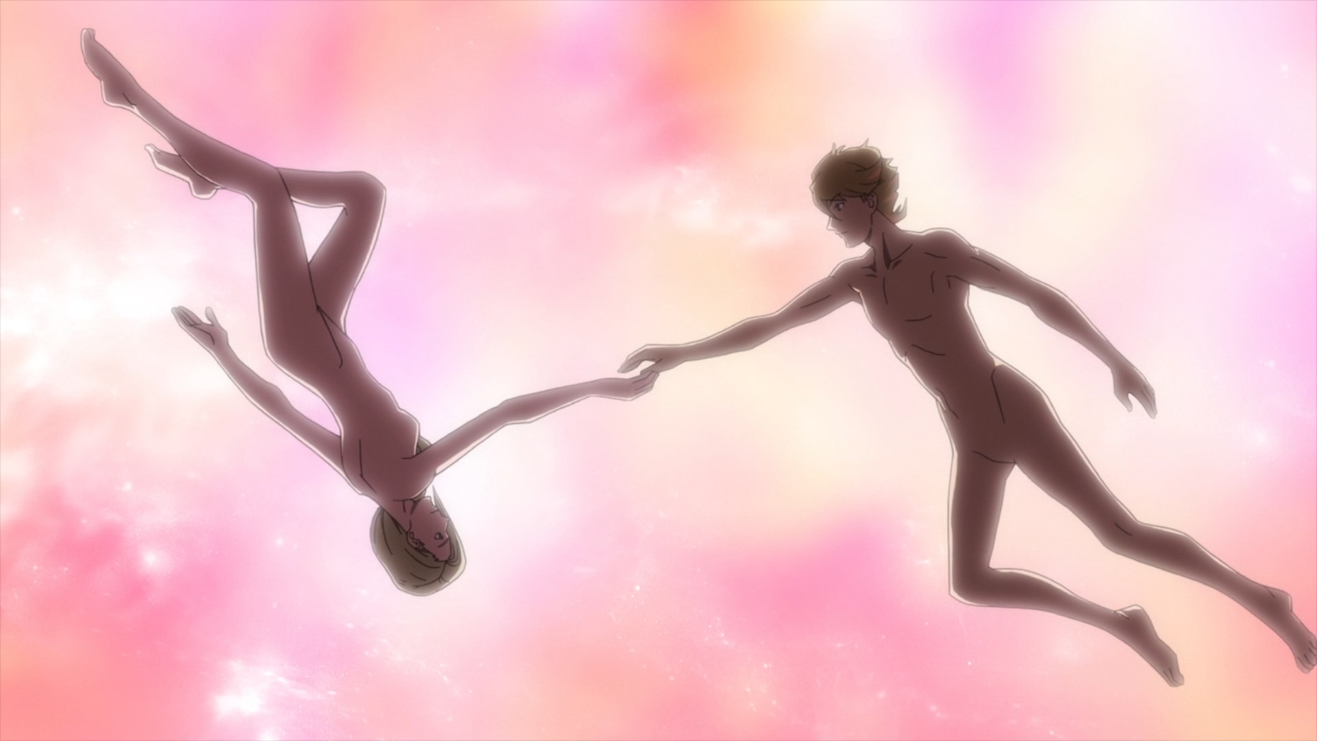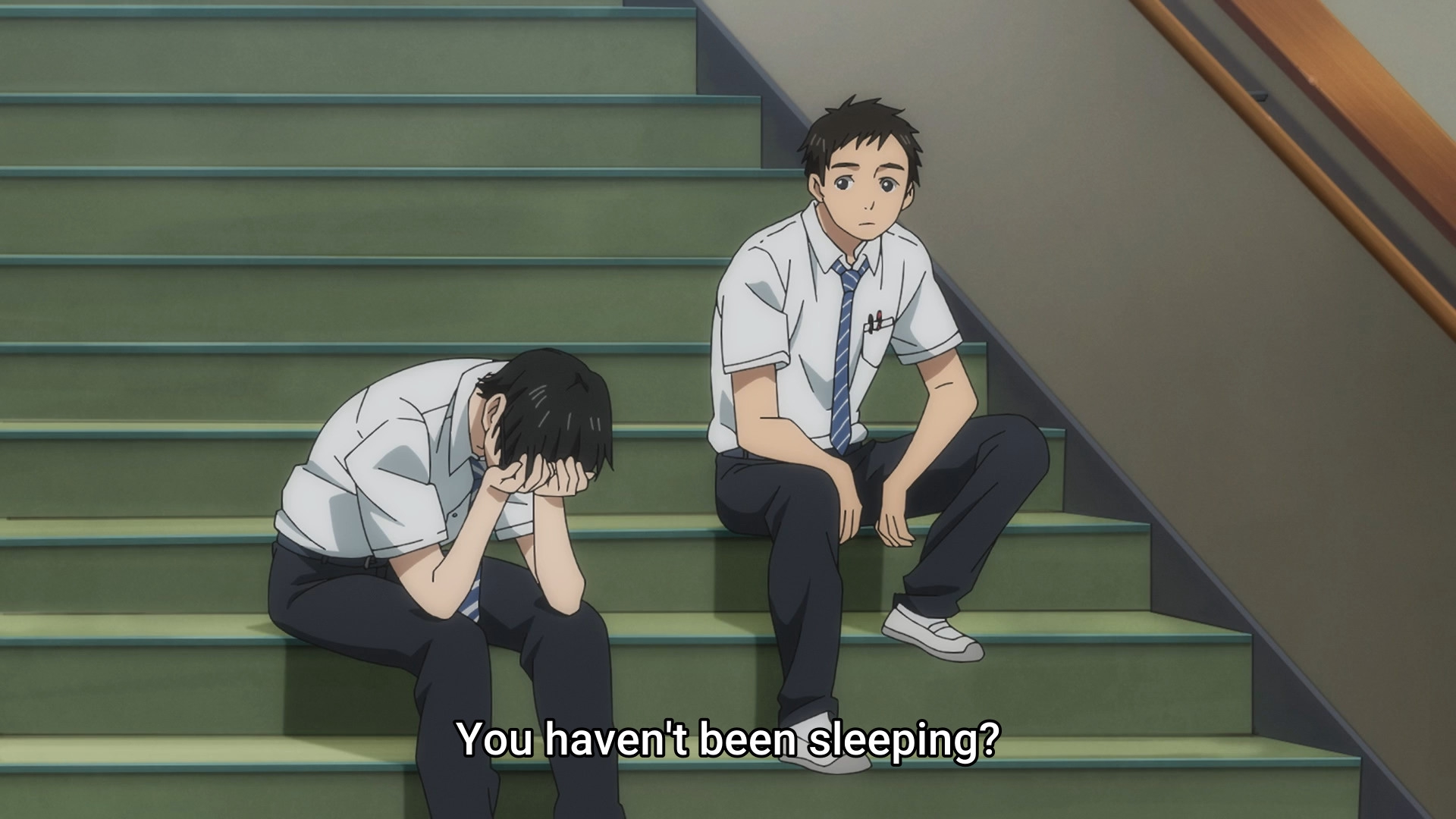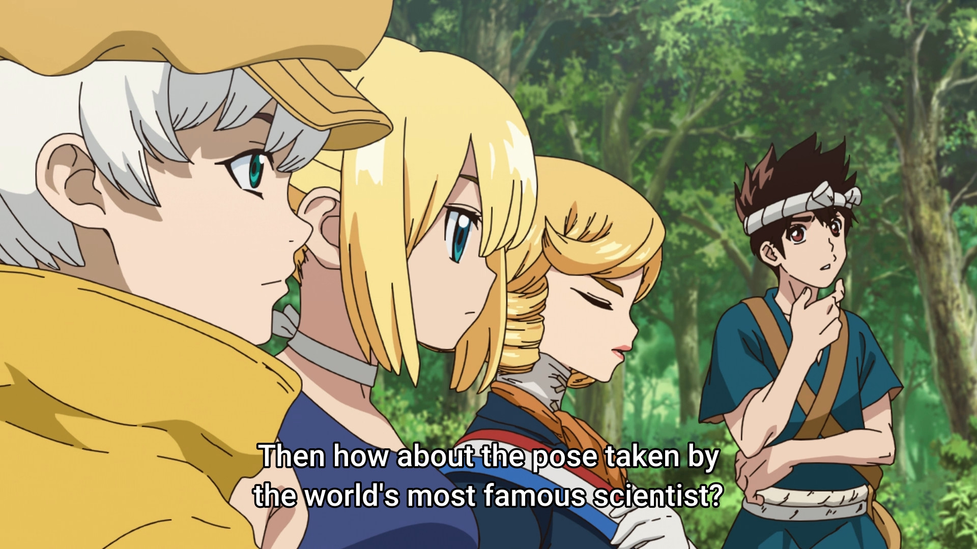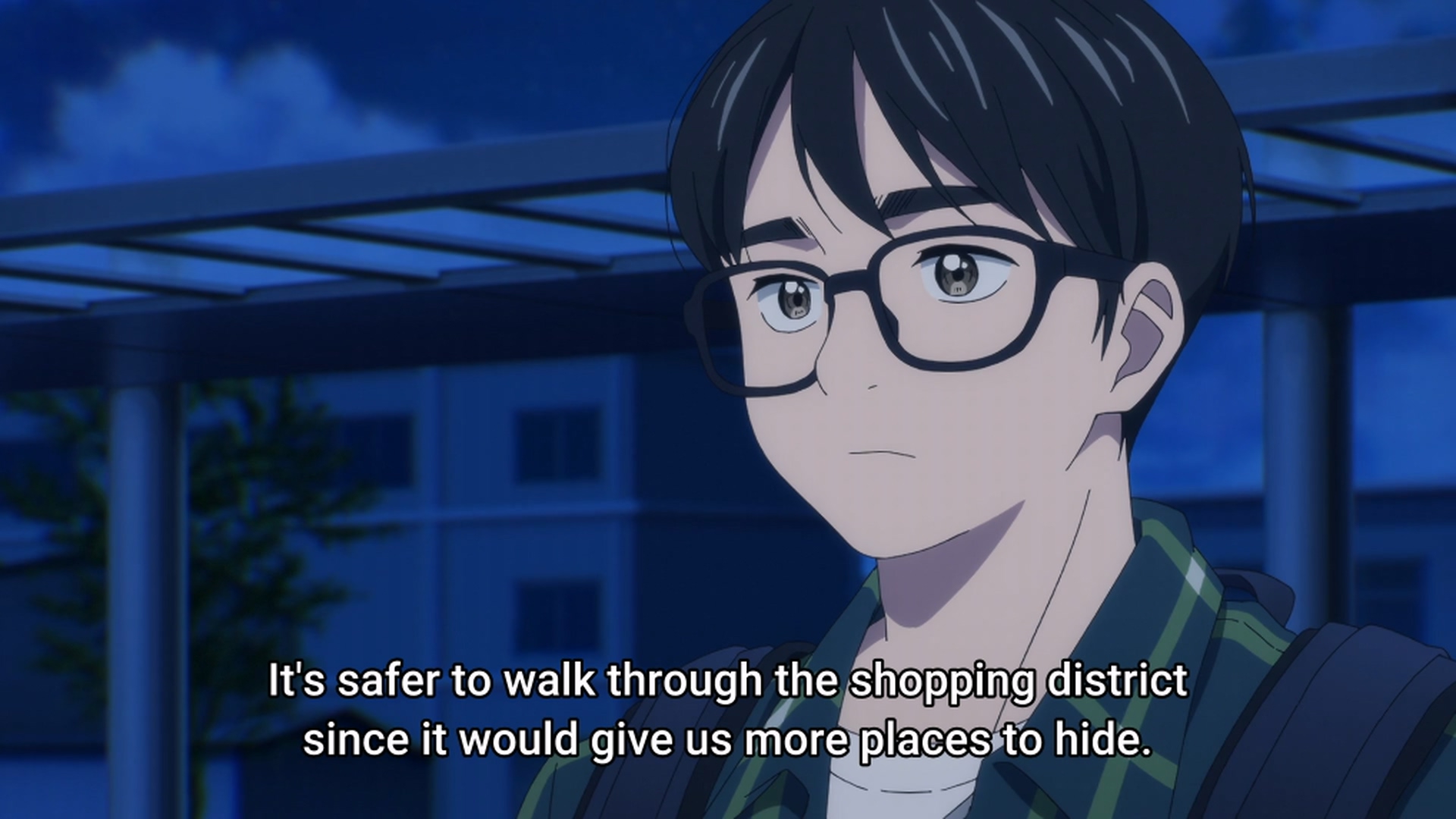Нет, все же залупа какая-то. Только усилилось ощущение любительского характера всего этого, и чувство постороннего - ну словно ты в чужой тебе компании оказался - все что-то шутят, мемсами и отсылками перекидываются и хихикают, а ты не то, чтобы не понимаешь отсылок и культурный контекст, но просто веселым все происходящее не кажется. В общем опенинг и эндинг видимо останутся лучшим, что тайтлу есть предложить - тут, кстати, поработал Тайки Конно, выходец из Шафта, с его очень характерным художественным стилем, лучше всего известным по второму эпизоду Онимоногатари с длинными полотнами истории Шинобу. Дроп