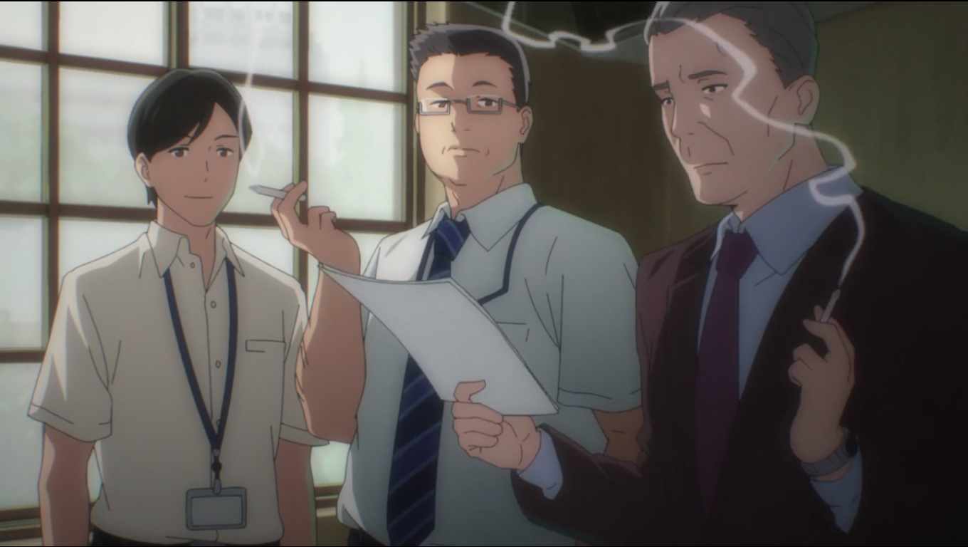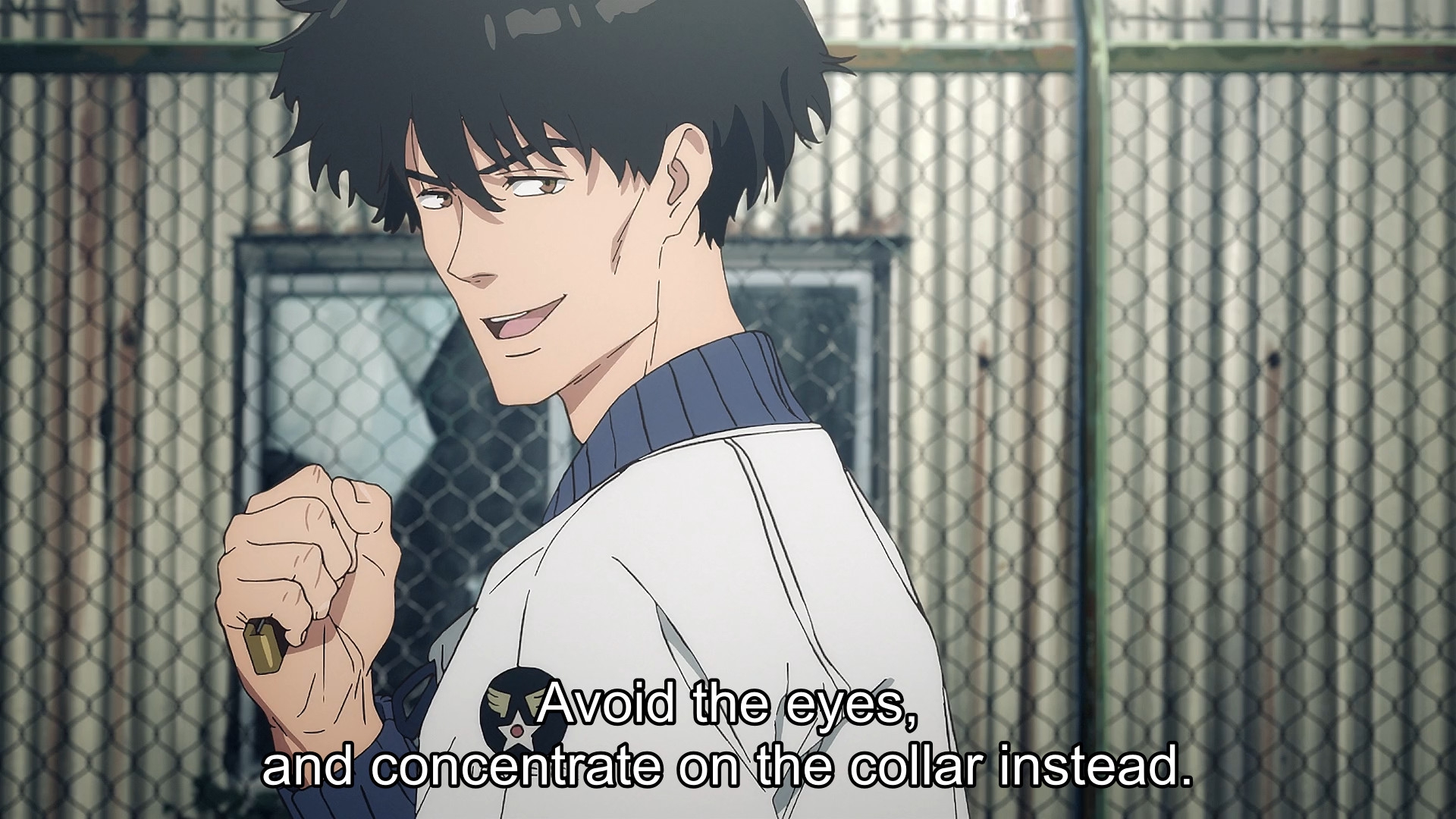 На удивление для аниме максимально приятный чувак. Не истерит, не тупит, профессионал. Я уж боялся, что сюда типа ояша для галочки добавили, но он норм смотрится.