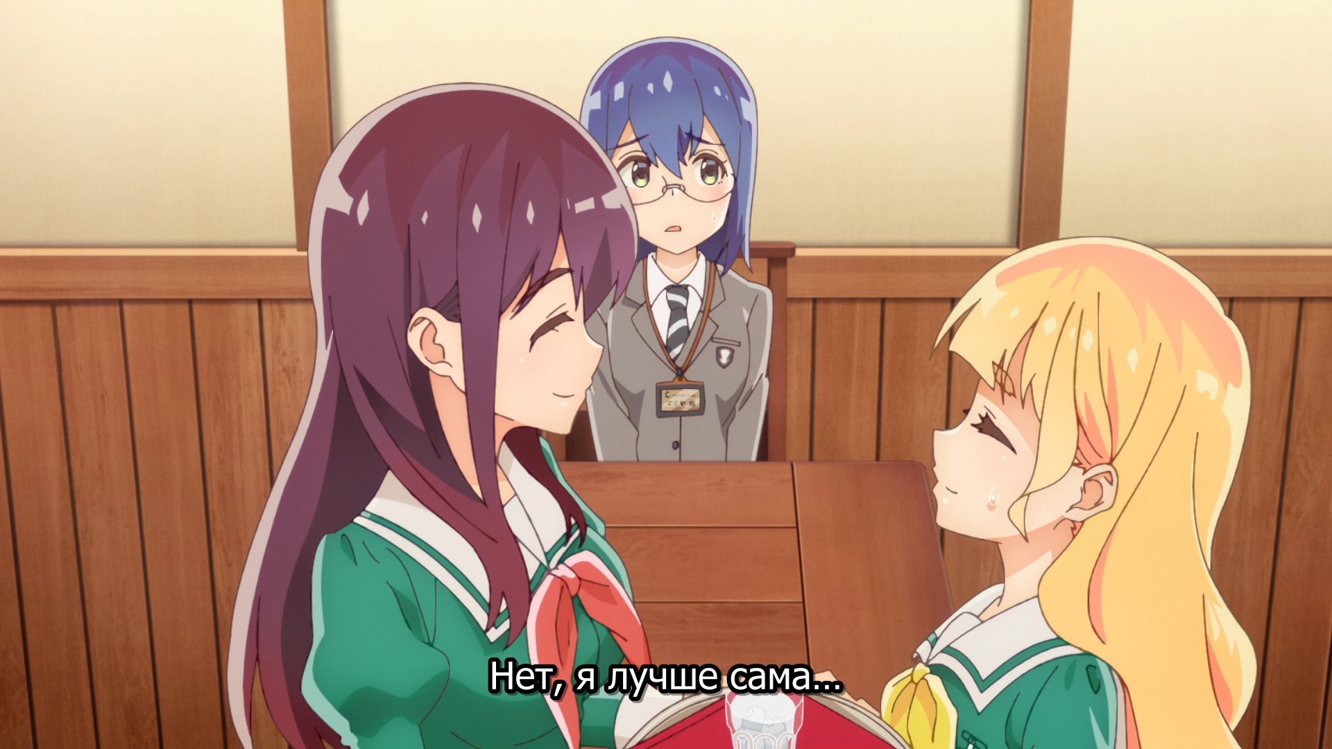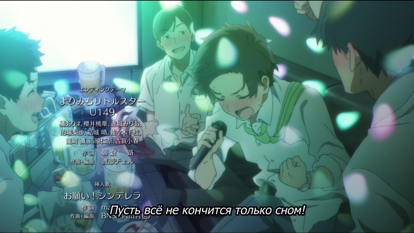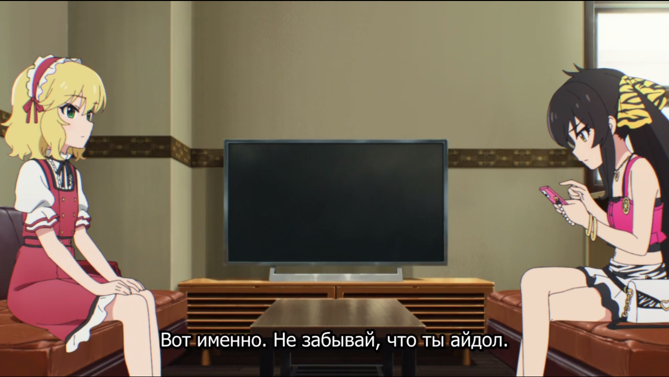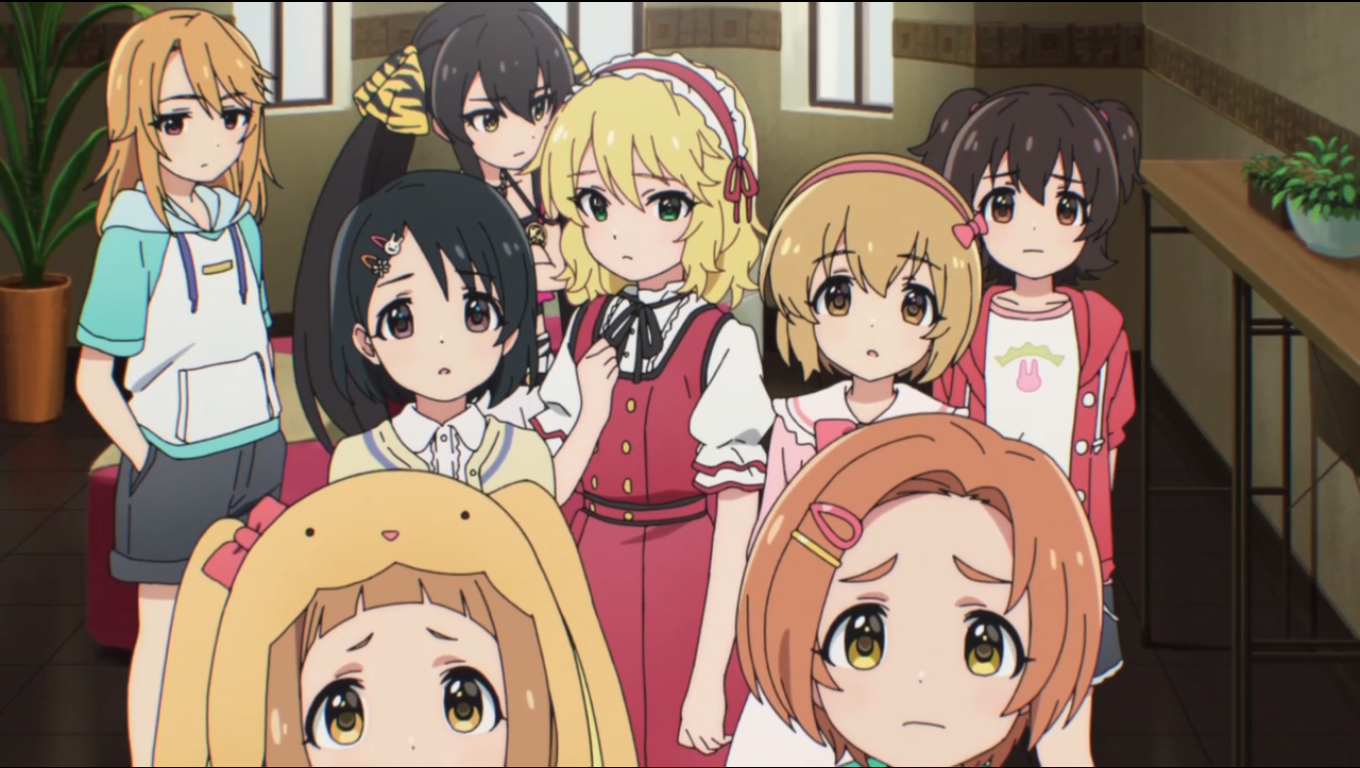 Первая половина аниме шла отлично. Хорошо представили персонажей, их знакомство, первые тренировки, как им было тяжело научиться танцевать, и прочее - все шло в таком размеренном темпе, и я ожидал, что будет серии 24. Нормально раскроют героев, их путь к айдолству, тяготы, первые фаны... Но потом объявили, что серий всего 12 (и плюс куча переносов было), и вот как раз со второй половины все пиздец ускорилось Тут же им анонсировали дебют, тренировки почти и не показывали, пара слайсиковых серий, которые были даже неплохими, но блин не в таком урезанном хронометраже же