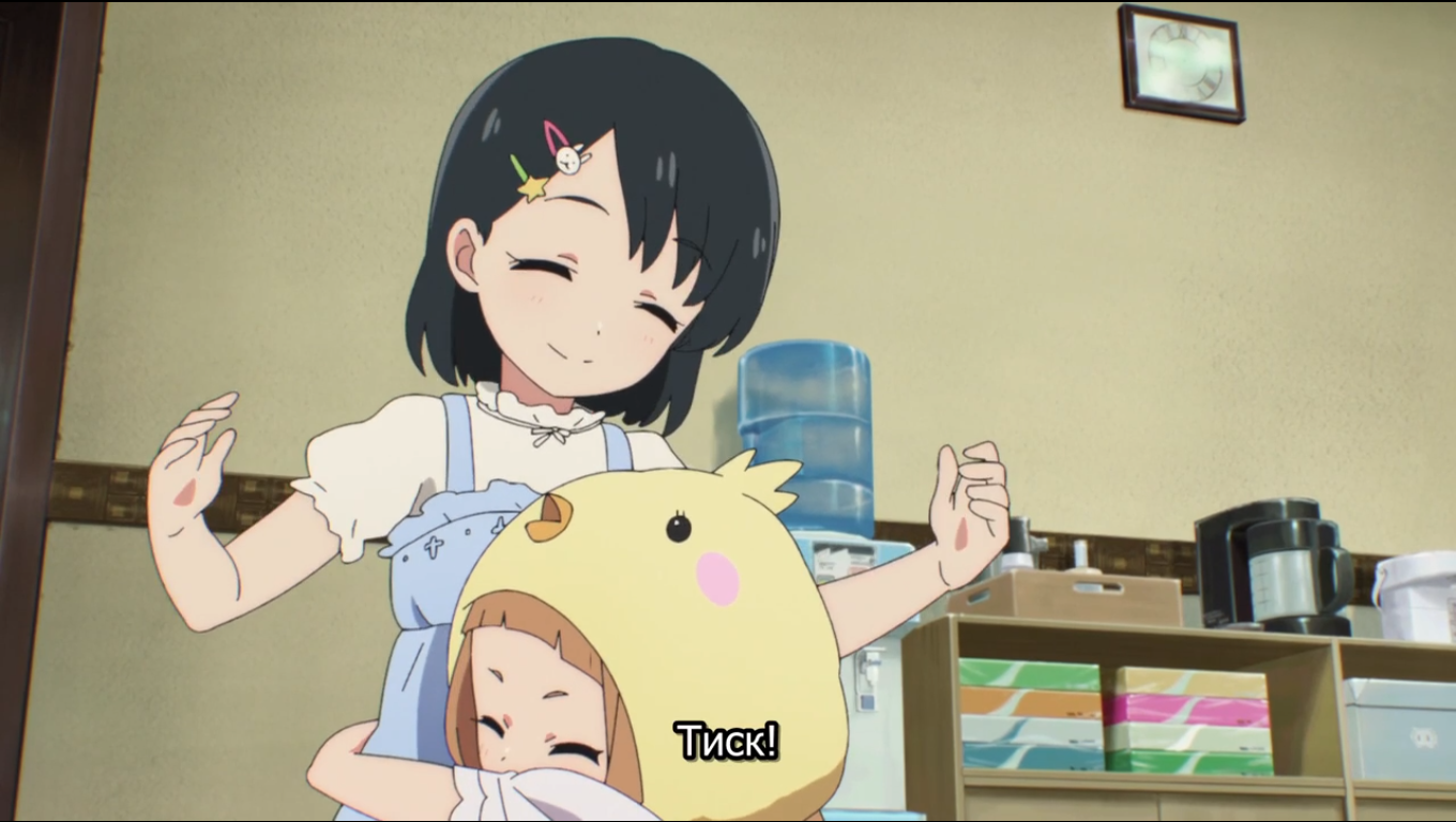 В детский сад устроился парень. Второй эпизод с фокусом на самую мелкую в кигуруми(и почему она, собственно, всегда в кигуруми). Чуть попроще первого - нет, без реальных просадок по качеству, просто первый совсем хорош был - чувствуется, что над ним сам главный режиссер расстарался.