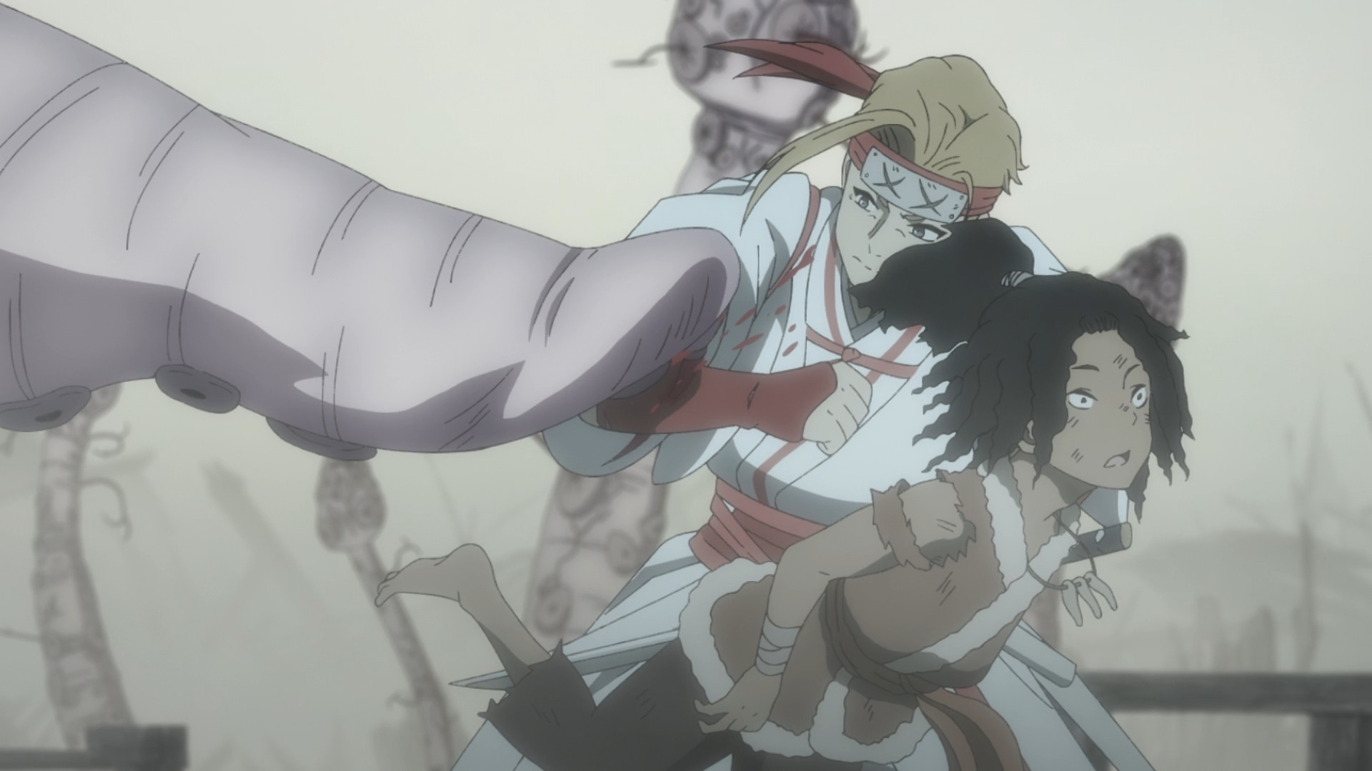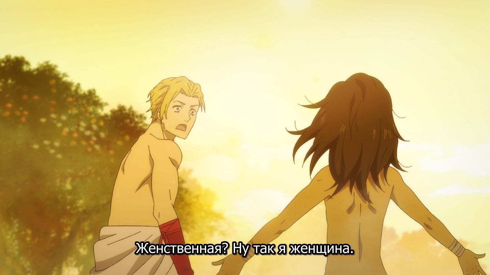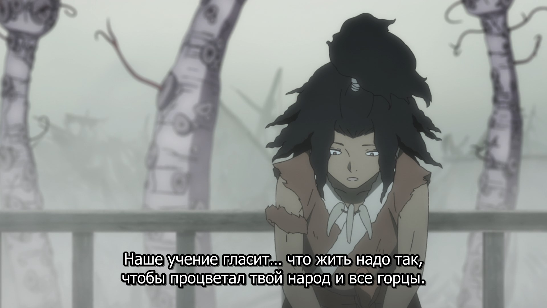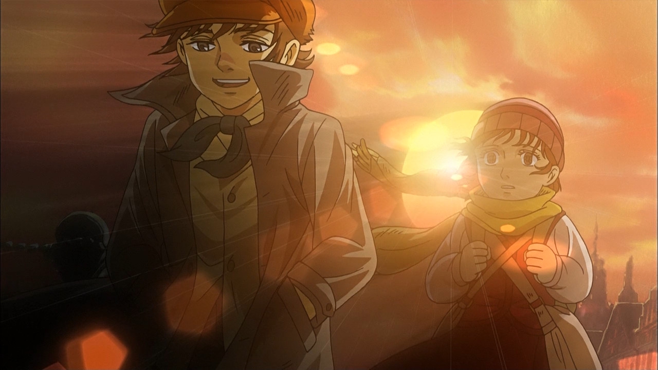 Конечно, как сборник кулсторь про различных интересных личностей - скрытый вин для всех, кто любит дорогу. Но как полноценное путешествие тайтл разваливается. Географические проебы, совмещенные с ненужными прыжками между сезонами настолько очевидны, что времени скалывается ощущение неправильного показа эпизодов. Само путешествия теряет смысл где-то после 13 эпизода, когда у Герды появляется палочка-выручалочка в виде ветерана боевых действий, обкаливающая для неё все самые тяжелые денежно-бытовые вопросы. После 13 эпизода и начинается уже совершено другой тайтл про фазерманс Раги и Герды, что тоже неплохо, если бы сама Снежная Королева и осколки зеркала продолжили присутствовать в тайтле. Уже дальше приходит понимание, что вся эта подготовка к финалу. Только нахуй такой подготовки не надо. Капитан оказался потомком легендарного Атланта, держащего небосвод, а его предназначение - помощь Снежной Королеве в битве с местным Мао, летающим на скате из лавы и разящим своих врагов лавовым трезубцам. За финальным противостоянием Юиши и Мао тайтл теряет себя. Раги после спасения мира опять думает только о своем мертвом отряде. Снежная Королева, принявшая смерть атланта, опять думает только о своей любви к нему. Даже встреча с дьяволом лицом к лицу никак не беспокоит Герду и Кая. Я знаю, что тайтл делали без помощи запада, но неужели японским детям так важно увидеть Юушу и Мао в тайтле про 19 век? Интересное совмещение стилей. Раги Дэдзаки рисует в седзе стиле с акцентом на ноги. Лица других положительных штрихует и ставит по центру кадра. Различных неприятных личностей всегда вытягивает в кадр акцентируя на лощенной морде и руках облетая их камерой. 22 серия в этом плане выдает максимум такой трансформации, показывая превращение атлета в вороватого клоуна. Даже плечи благодаря смене перспективы, чем в его годы честной работы. В 19 серии злодей настолько злой, что он начинает вытягивать кадр, а не он его. В 14 сери добрый дедок общается исключительно чиби-зарисовками.