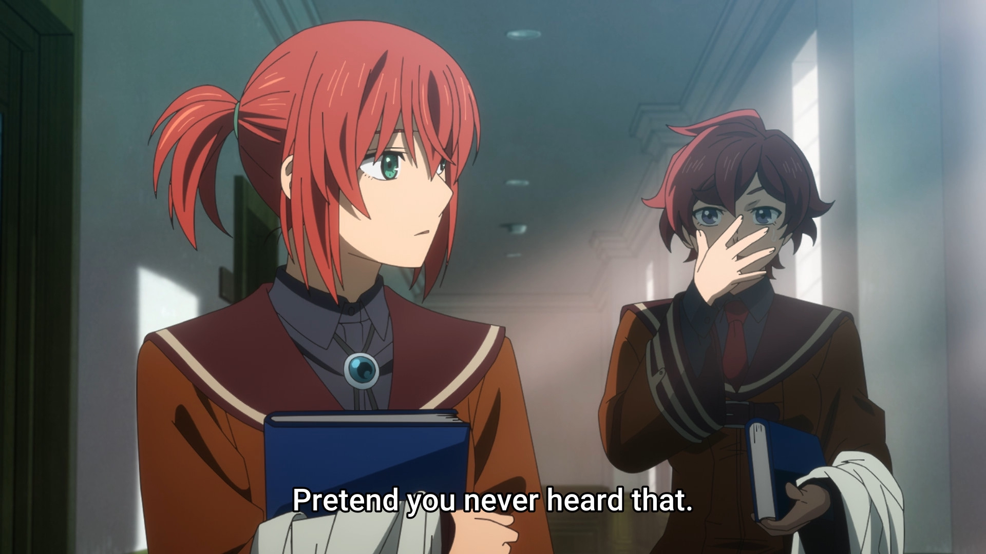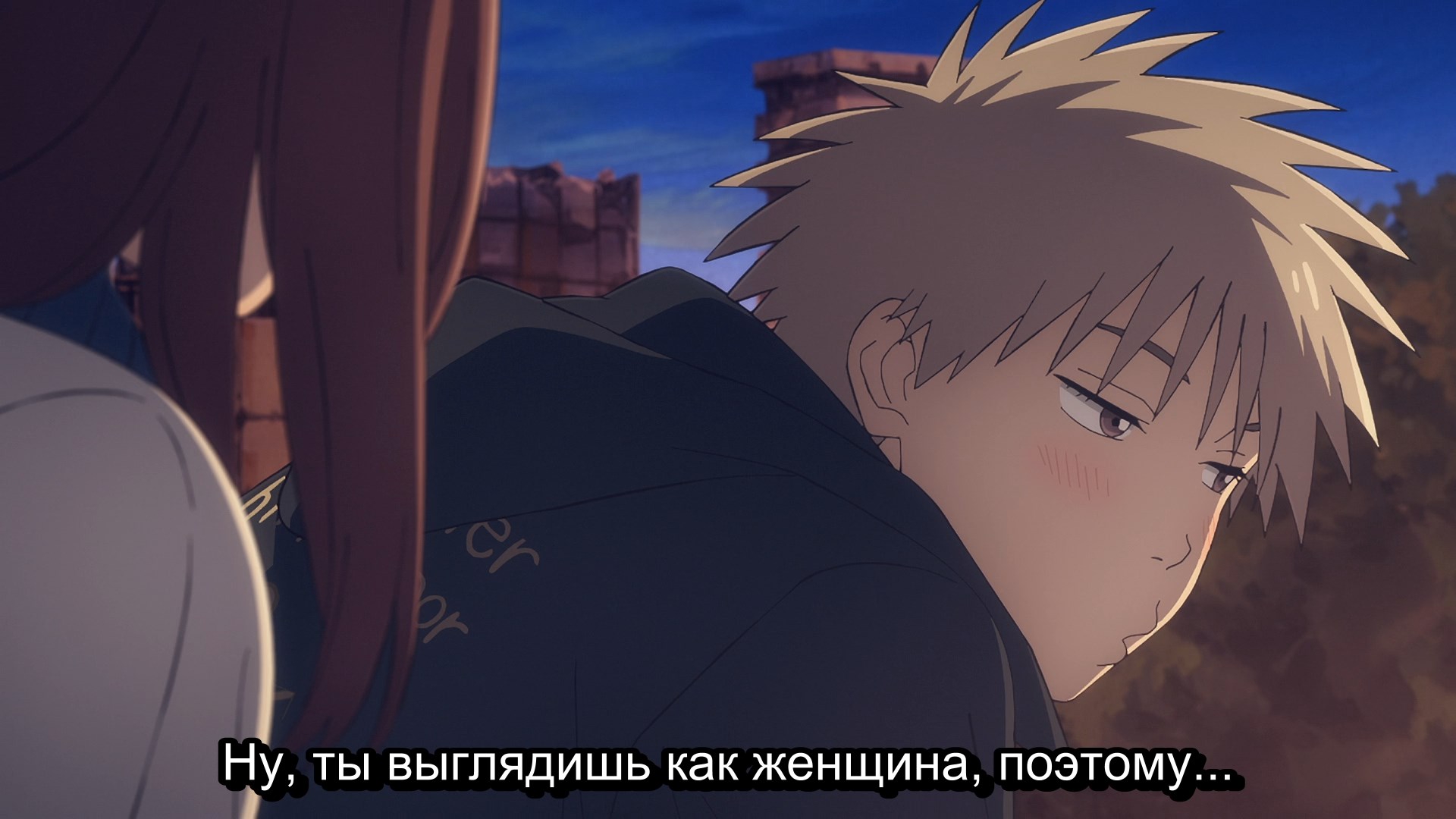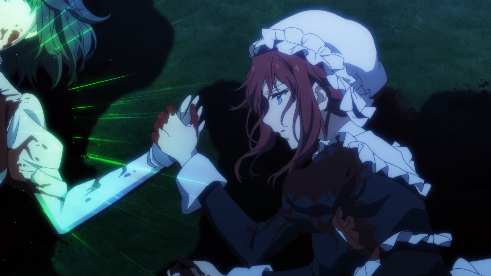 Ёбаный стыд, я уже и забыл, что это типа исекай. Ну чисто Гримгар 1 в 1. Ни предпосылок, ни последствий, ни влияния на сюжет. Просто в начале был кадр, и теперь эта фраза раскрывающая. Вот нахуя? Просто чтоб в списках жанра было модное говнецо? Я даже ругаться на такое не могу, ведь это у тайтла отняло меньше двух минут. Просто максимум нелепо выглядит.