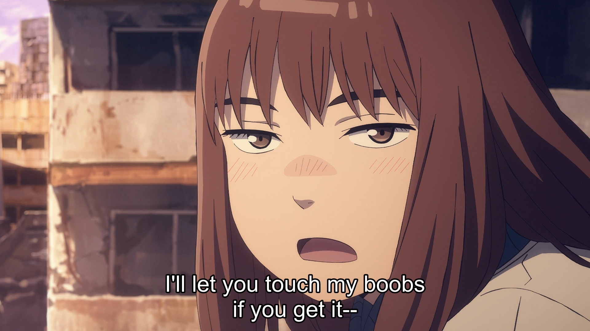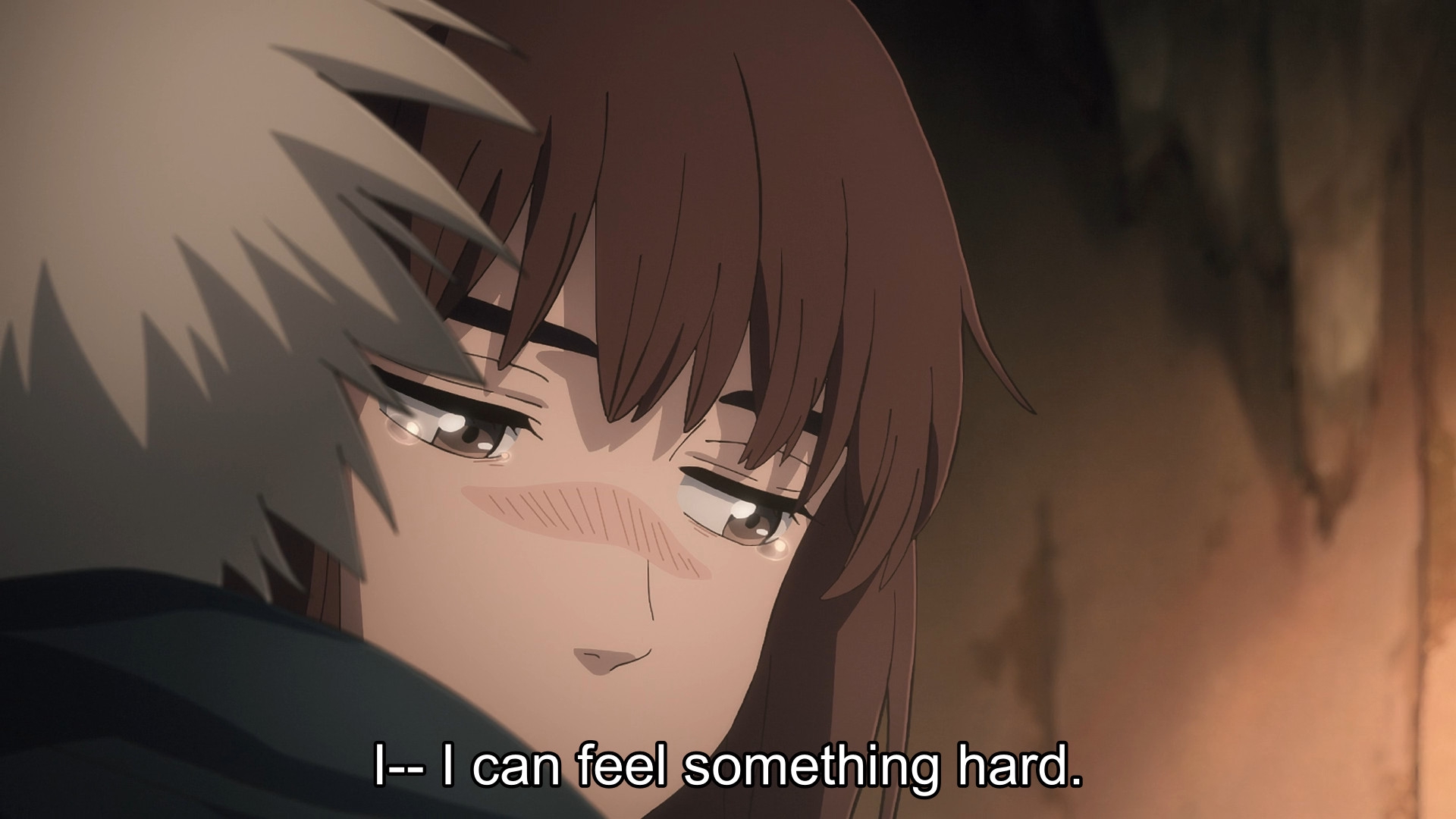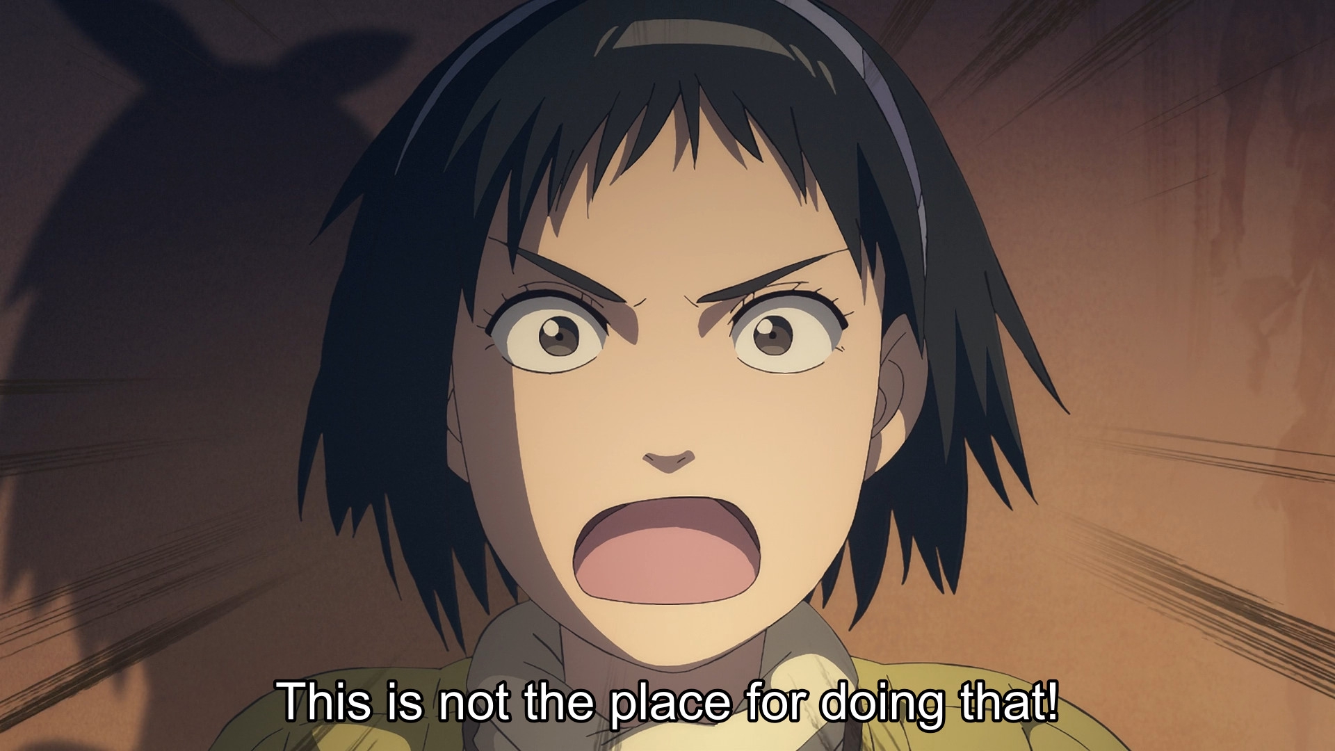 Ёбаный стыд, я уже и забыл, что это типа исекай. Ну чисто Гримгар 1 в 1. Ни предпосылок, ни последствий, ни влияния на сюжет. Просто в начале был кадр, и теперь эта фраза раскрывающая. Вот нахуя? Просто чтоб в списках жанра было модное говнецо? Я даже ругаться на такое не могу, ведь это у тайтла отняло меньше двух минут. Просто максимум нелепо выглядит.