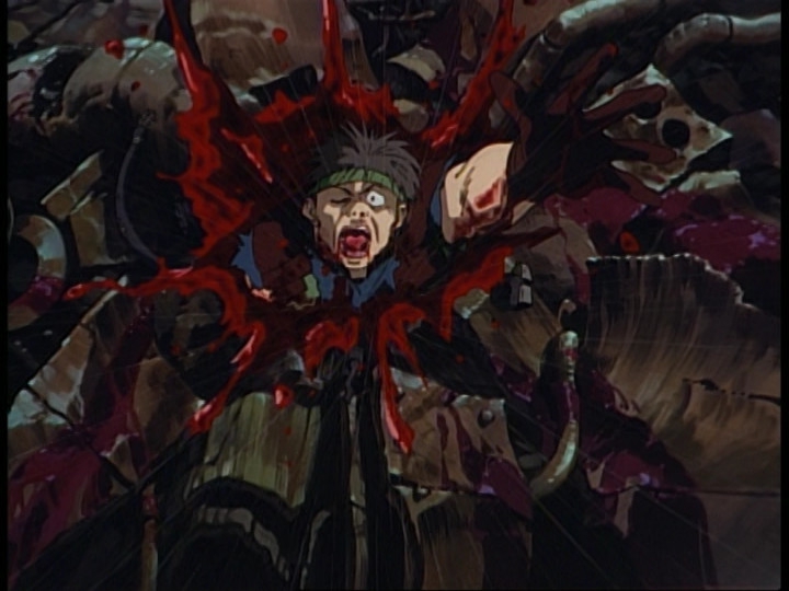 Интересный сеттинг постапока, но полная хуета по сюжету и персонажам. В обеих ОВАх главный герой Гайст обрекает человечество на гибель, в первой части выпуская на волю тысячи роботов-убийц, которые уничтожают человечество, во второй части убивая чела, который пытался спасти человечество и помешав его плану уничтожить всех этих роботов-убийц Какая у него мотивация? Да никакая, он психопат. Это просто так и говорится - он живет одной только войной и вот так вот он ищет себе оппонентов. И еще он невероятно силен, мост дэнжероус солжа. Охуеть какой интересный персонаж, да