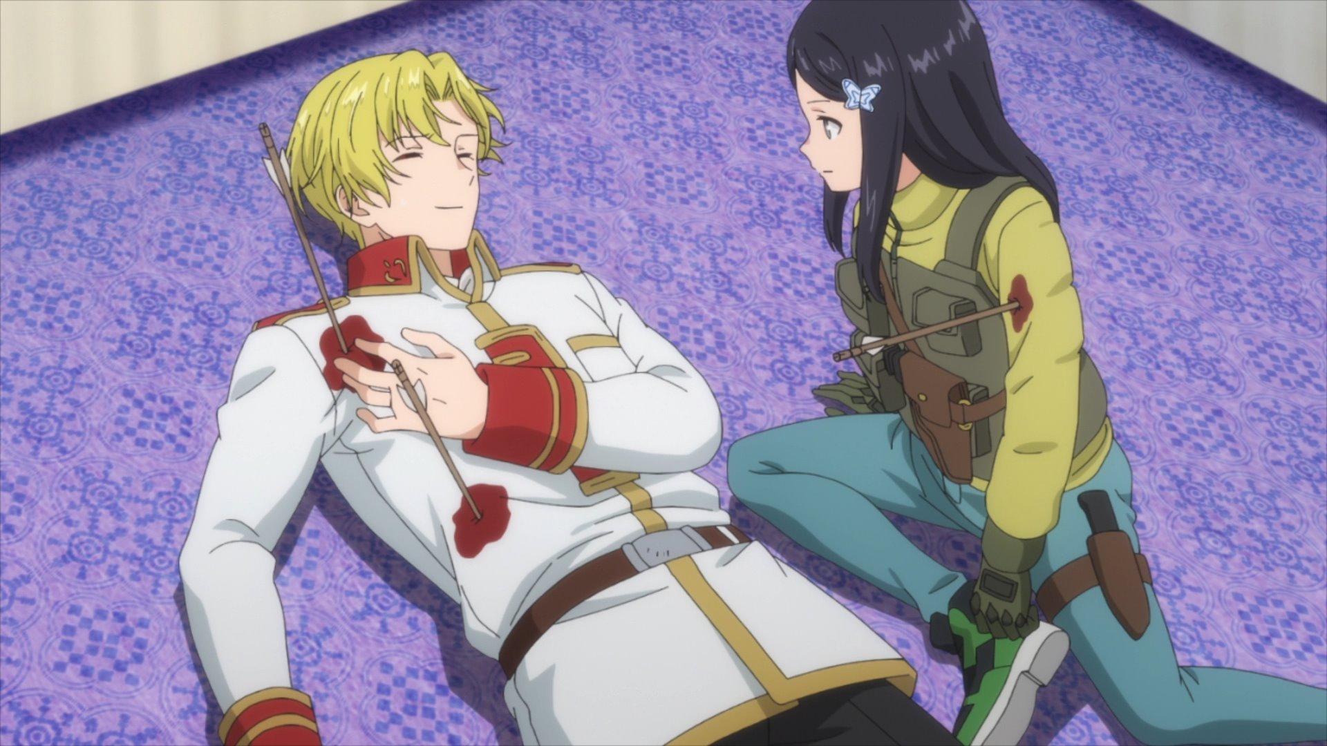 Лол, а чё она так на войну вырядилась? Ну чисто принцесса солдат на битву благословляет. Максимально вживается в роль. Хотя я и не против. Мицуха няха видная, а в таком наряде и вовсе красавица. А вот само повествование уже каким-то фарсом отдаёт. Как водится, в неплохой тайтл под конец надо щепоточку СЮЖЕТА завести, чтоб жизнь мёдом не казалась.