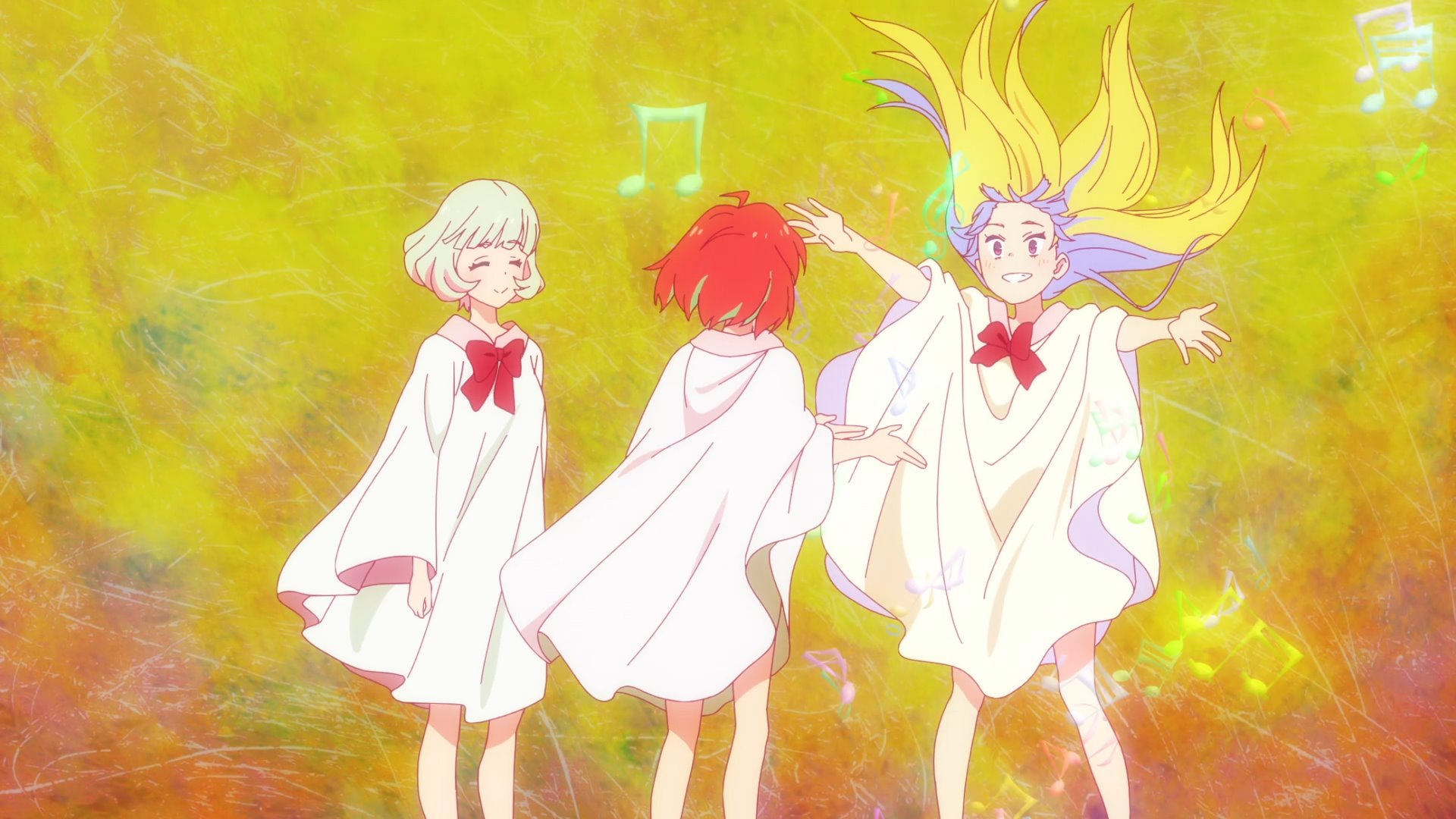 Хуя, это прям мюзикл. Они даже общаются тут иногда песнями. Поют классно, мне нравятся голоса. Ну а в остальном чё, няхи в туфельках есть, рожицы есть, цветовая палитра приятная. Такое мы смотрим.