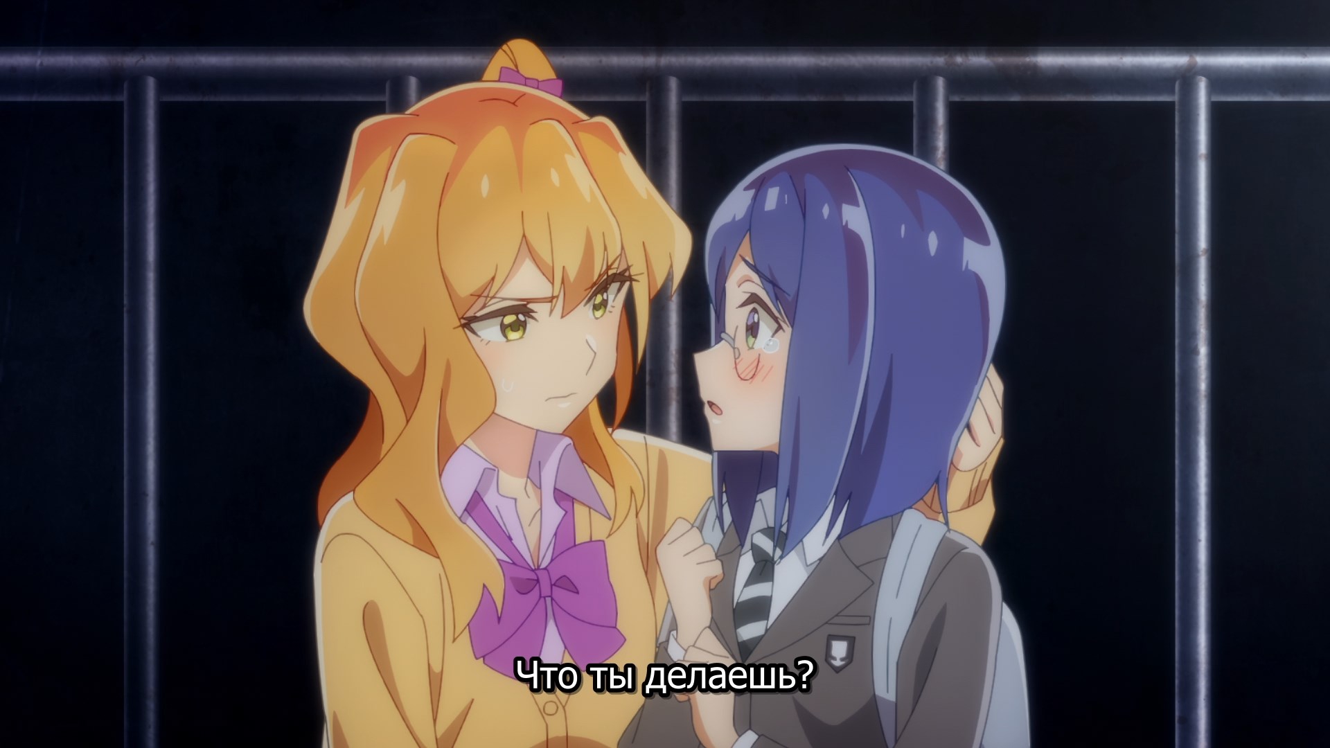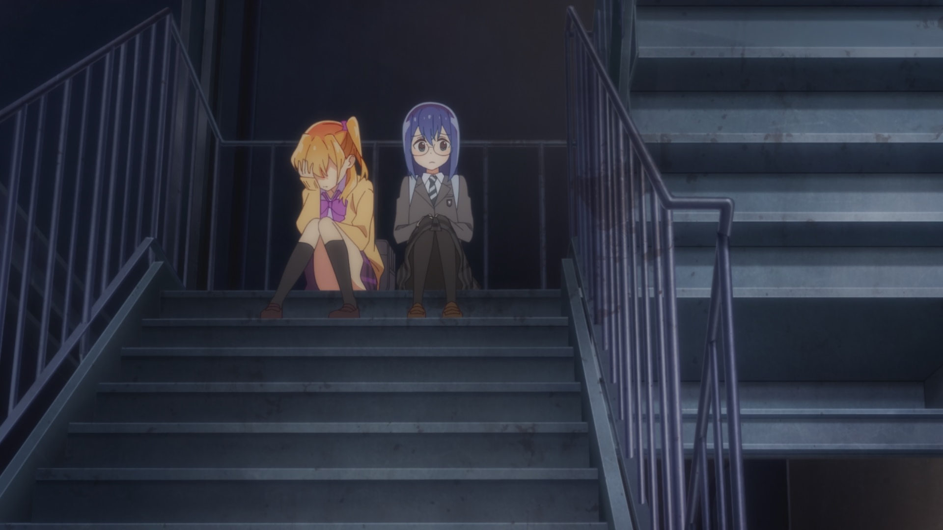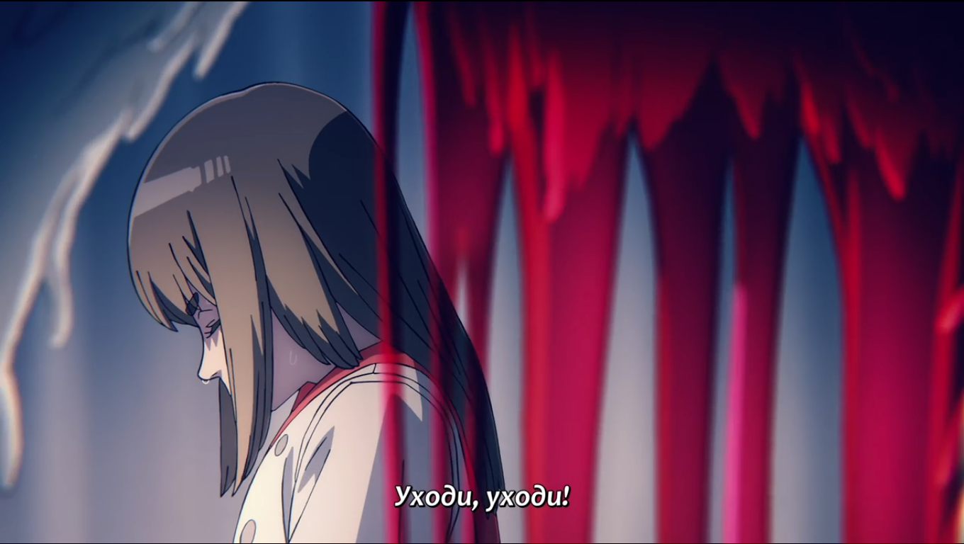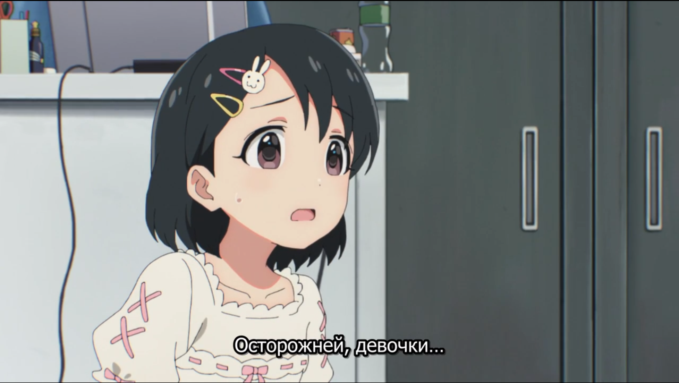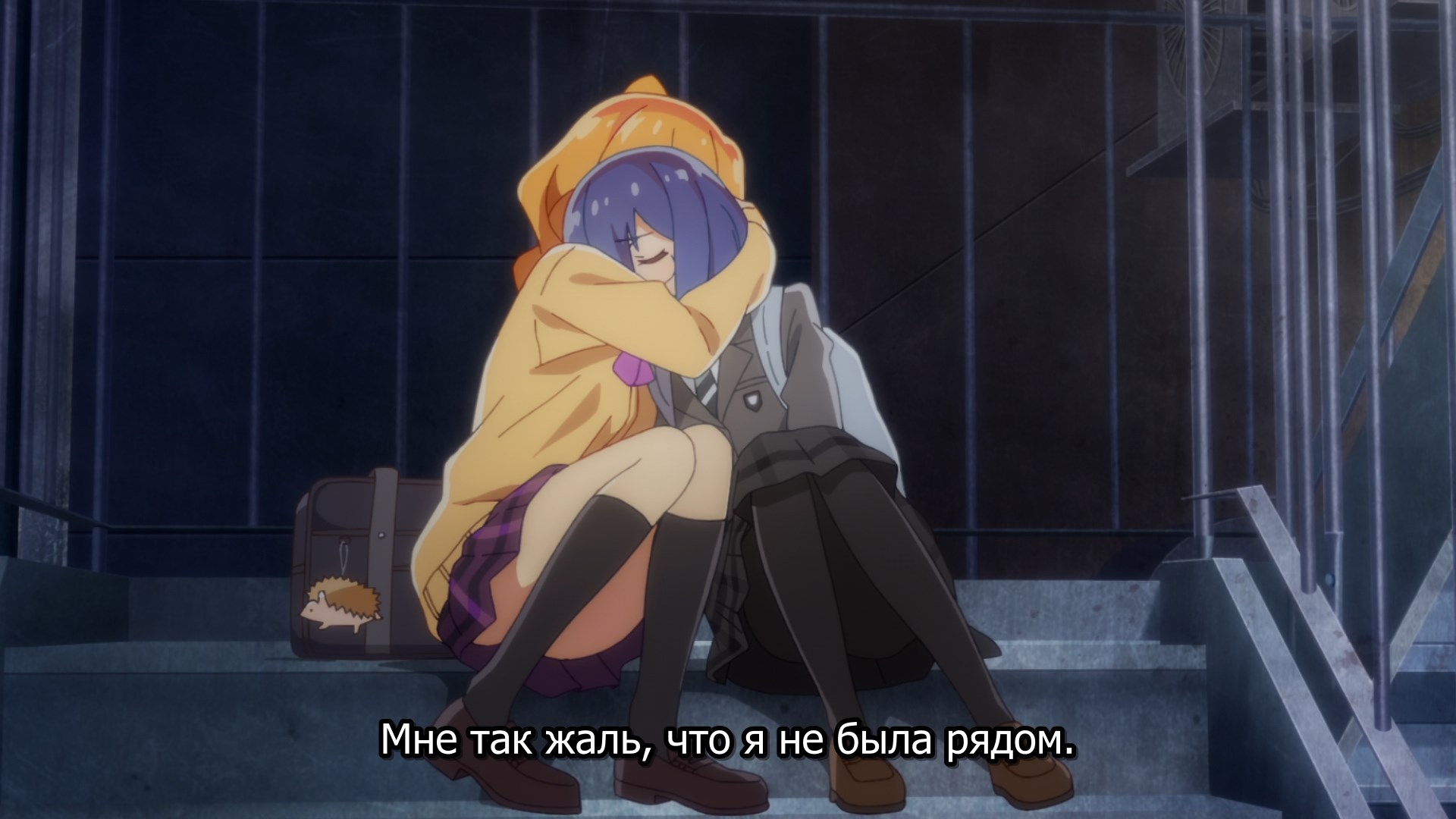 Пиздец, они сидели вдвоём на лестнице и говорили, и тут у этой пизды начинается приход, она видит свою любимую химечан и начинает плакать и с ней разговаривать. Я бы на месте гяру встал и ушёл бы, просто нахуй надо каких-то ебанашек успокаивать. Вот реально, это же до чего нужно было дойти, чтобы юри-тайтл исключительно бугурт и негатив вызывал. Но у этого мультика получилось.