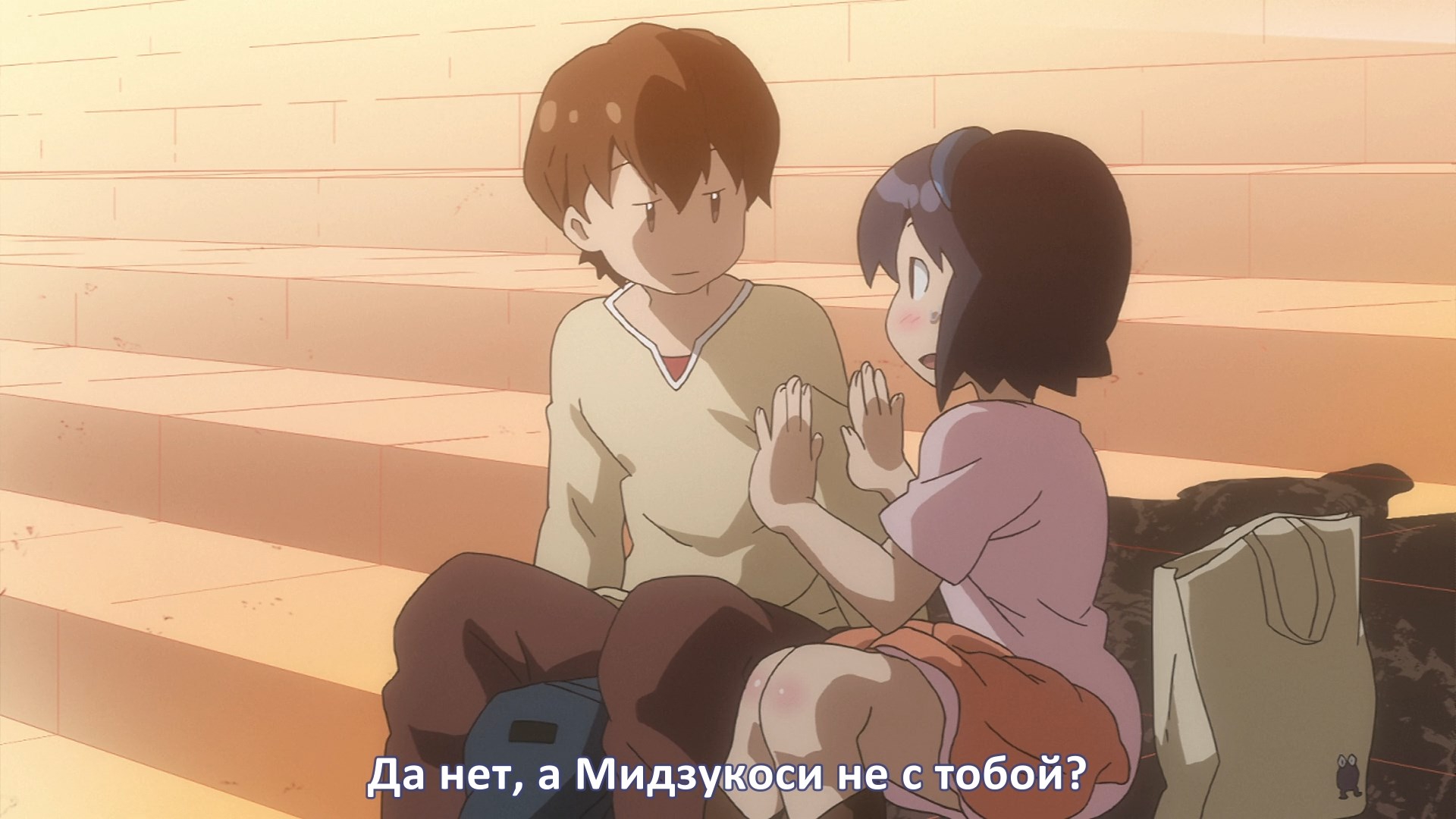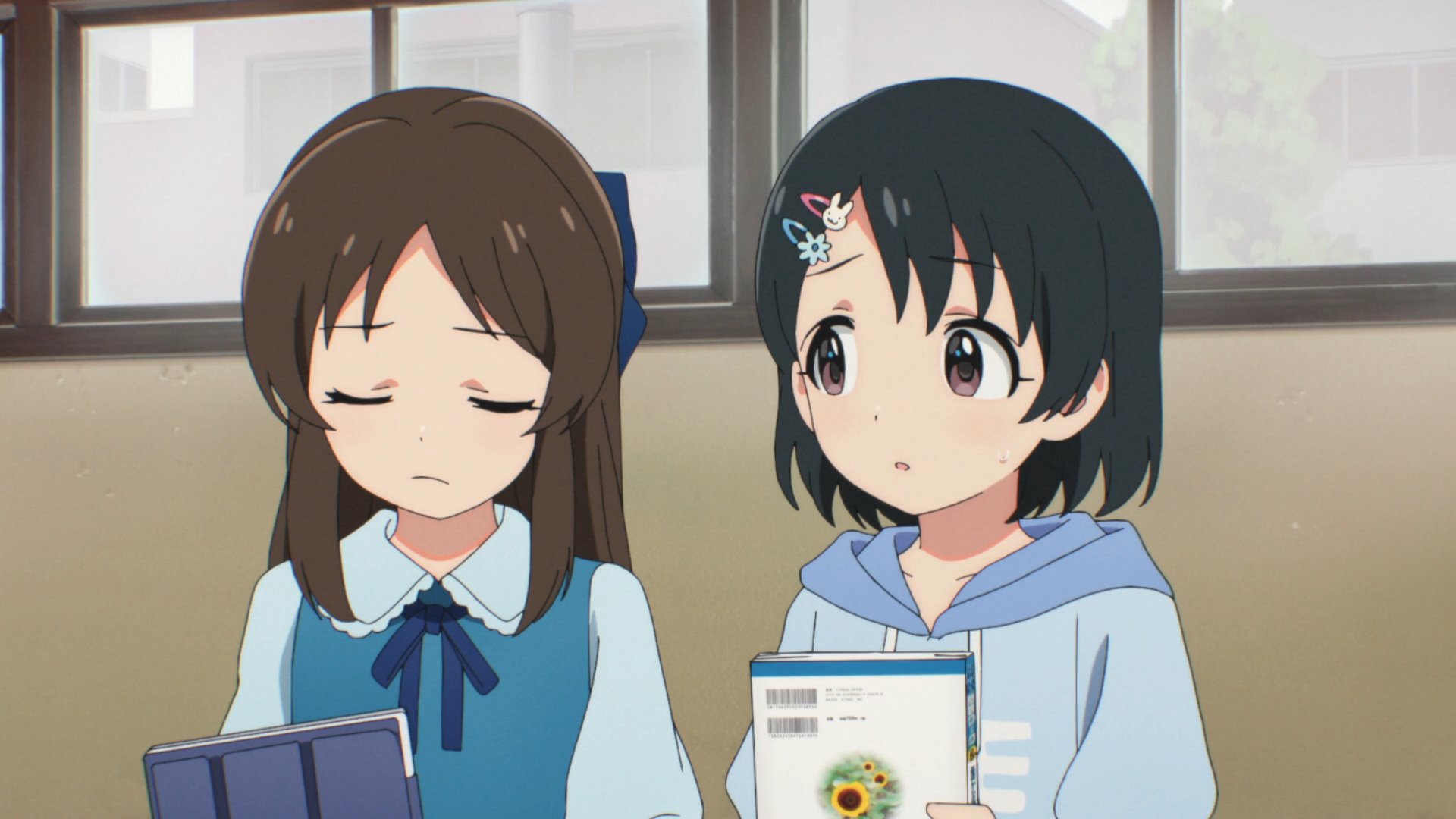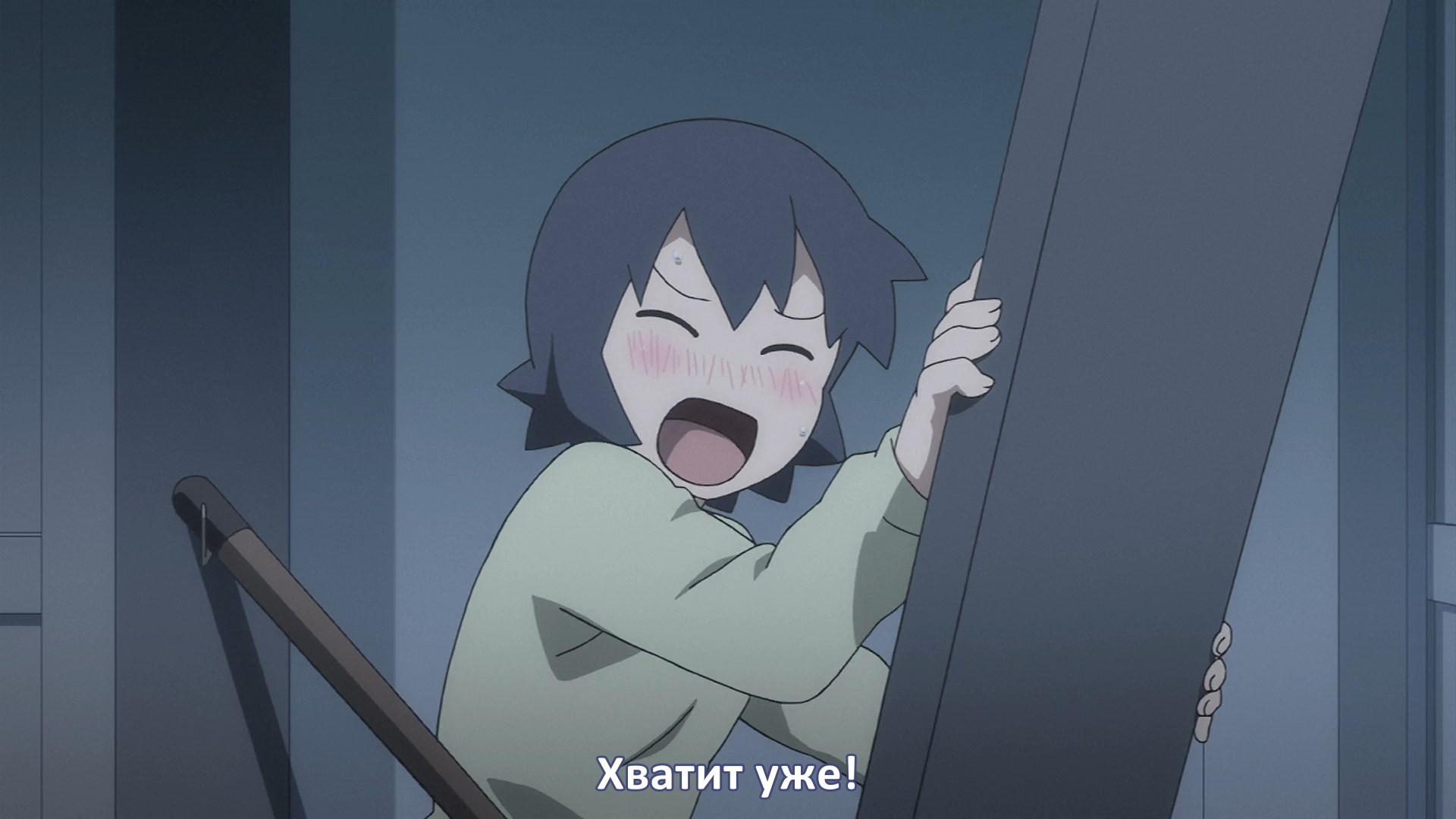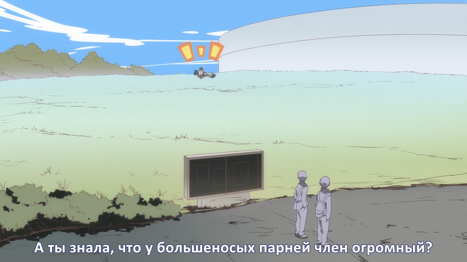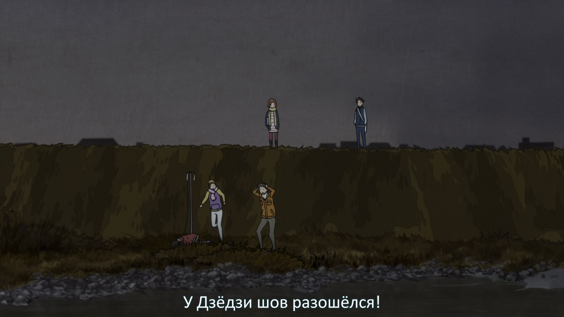 Пиздец, они сидели вдвоём на лестнице и говорили, и тут у этой пизды начинается приход, она видит свою любимую химечан и начинает плакать и с ней разговаривать. Я бы на месте гяру встал и ушёл бы, просто нахуй надо каких-то ебанашек успокаивать. Вот реально, это же до чего нужно было дойти, чтобы юри-тайтл исключительно бугурт и негатив вызывал. Но у этого мультика получилось.