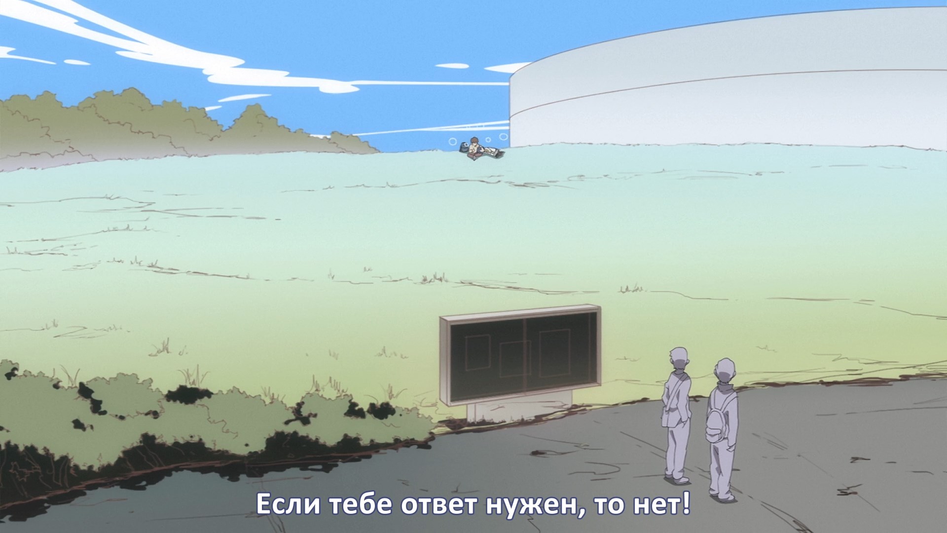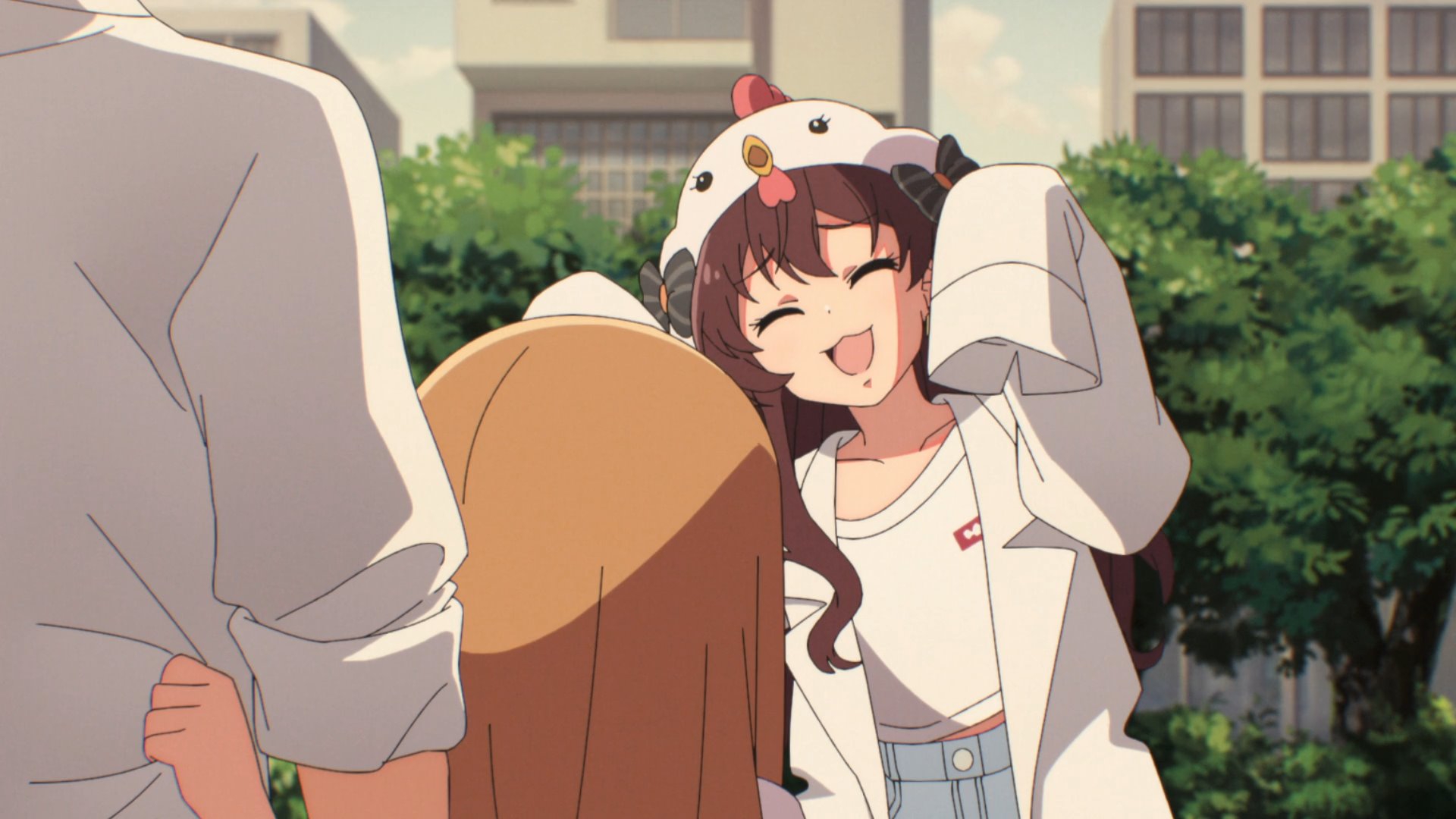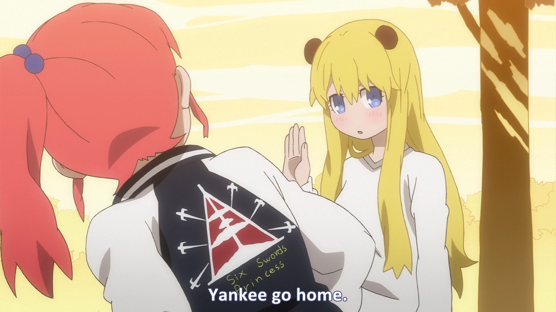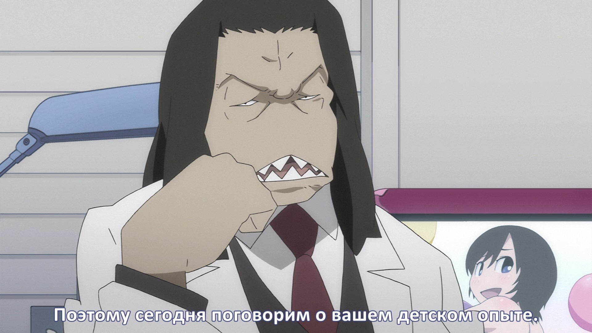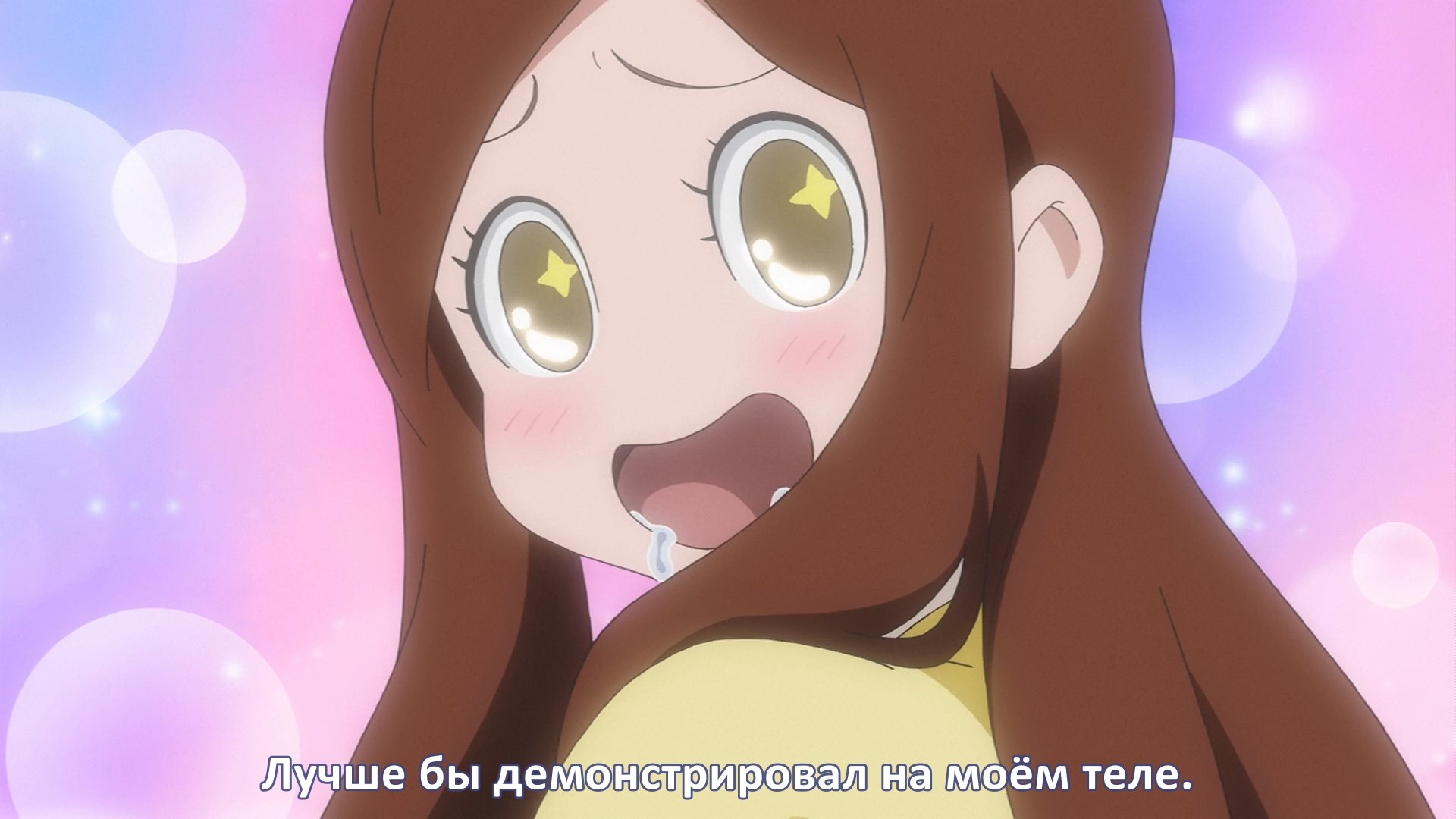 Пиздец, они сидели вдвоём на лестнице и говорили, и тут у этой пизды начинается приход, она видит свою любимую химечан и начинает плакать и с ней разговаривать. Я бы на месте гяру встал и ушёл бы, просто нахуй надо каких-то ебанашек успокаивать. Вот реально, это же до чего нужно было дойти, чтобы юри-тайтл исключительно бугурт и негатив вызывал. Но у этого мультика получилось.