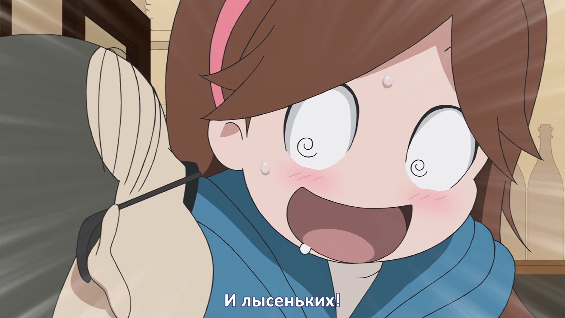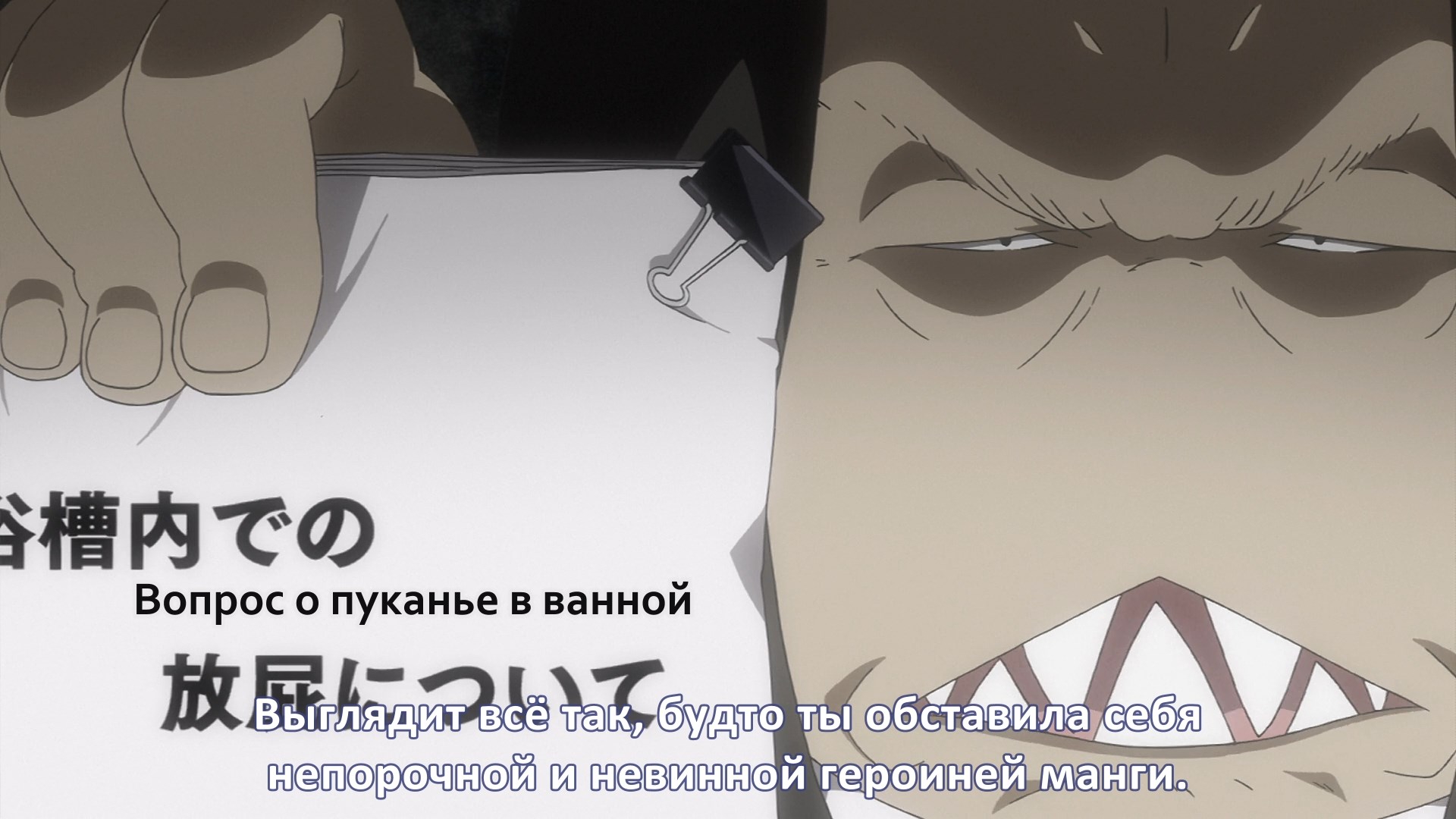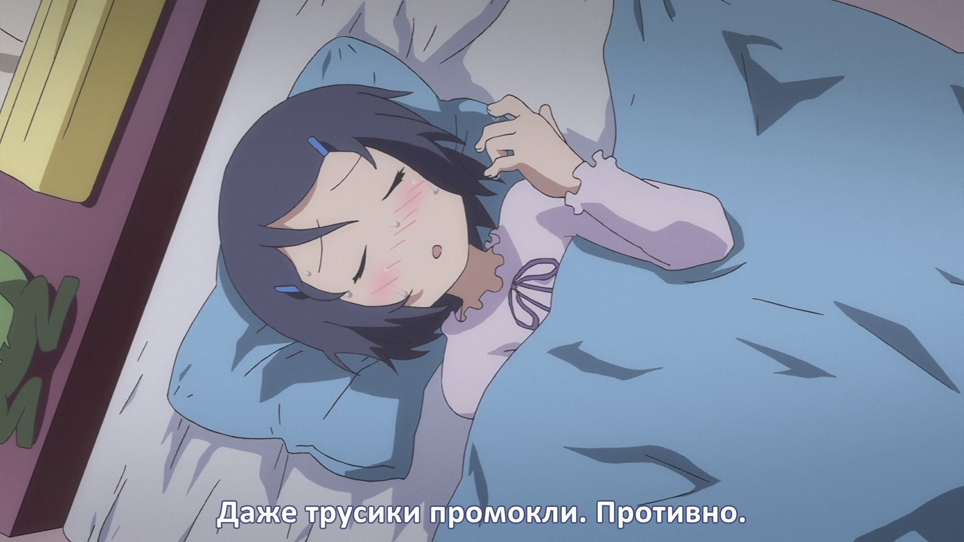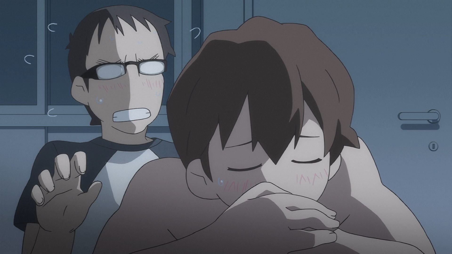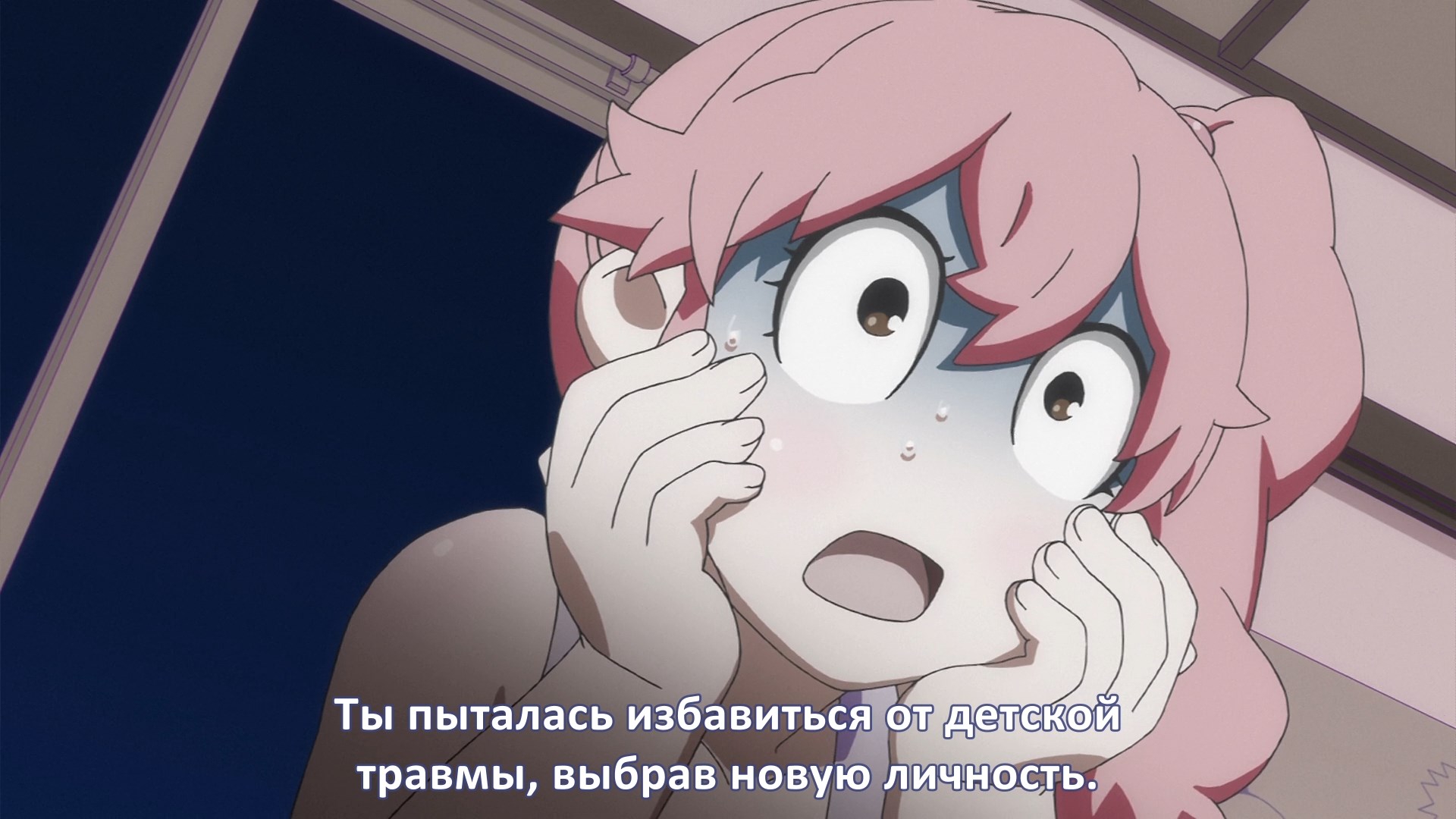Пиздец, они сидели вдвоём на лестнице и говорили, и тут у этой пизды начинается приход, она видит свою любимую химечан и начинает плакать и с ней разговаривать. Я бы на месте гяру встал и ушёл бы, просто нахуй надо каких-то ебанашек успокаивать. Вот реально, это же до чего нужно было дойти, чтобы юри-тайтл исключительно бугурт и негатив вызывал. Но у этого мультика получилось.