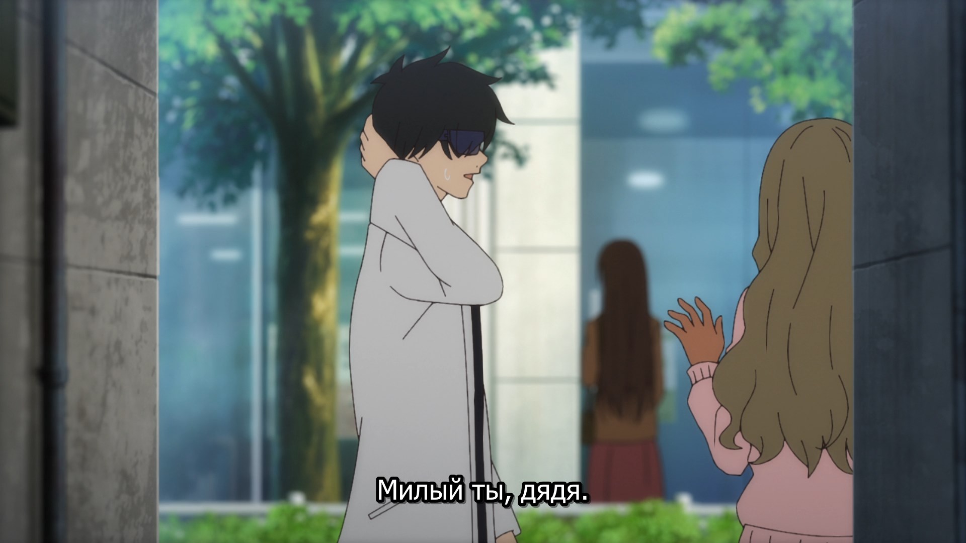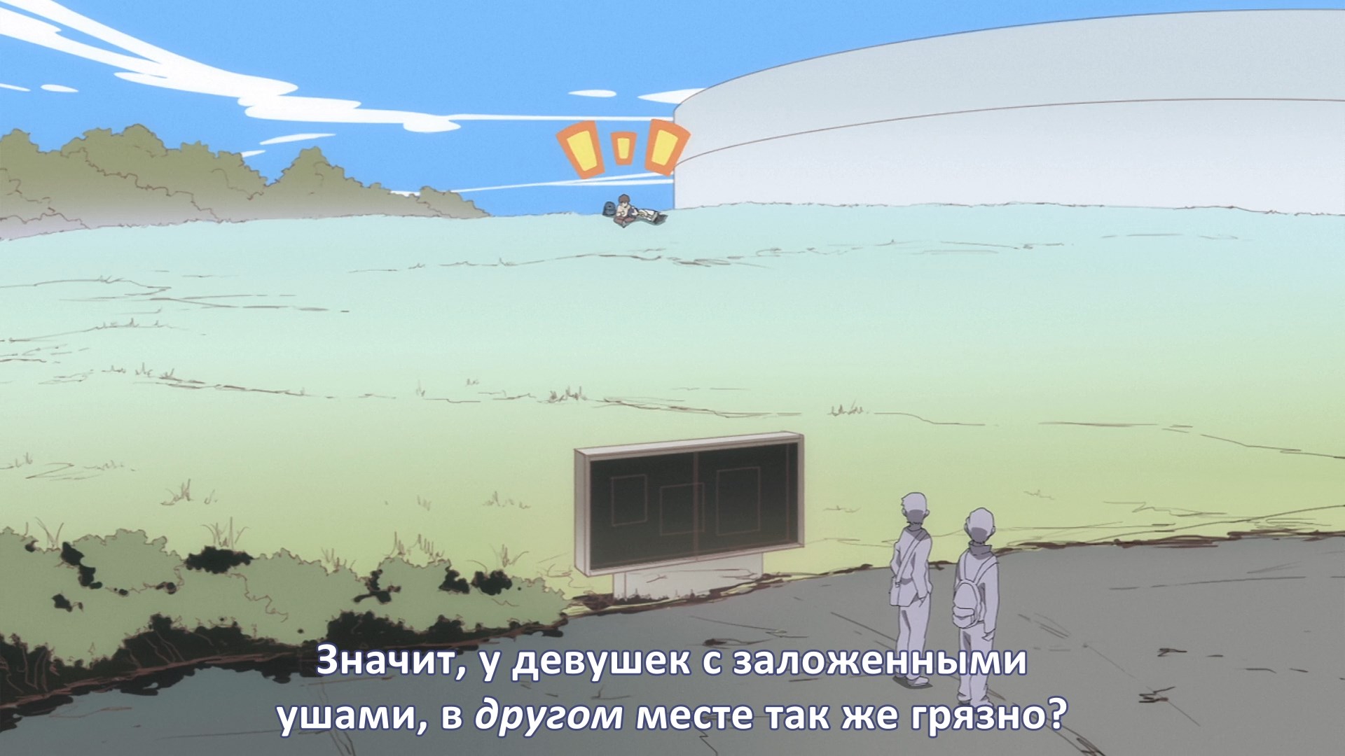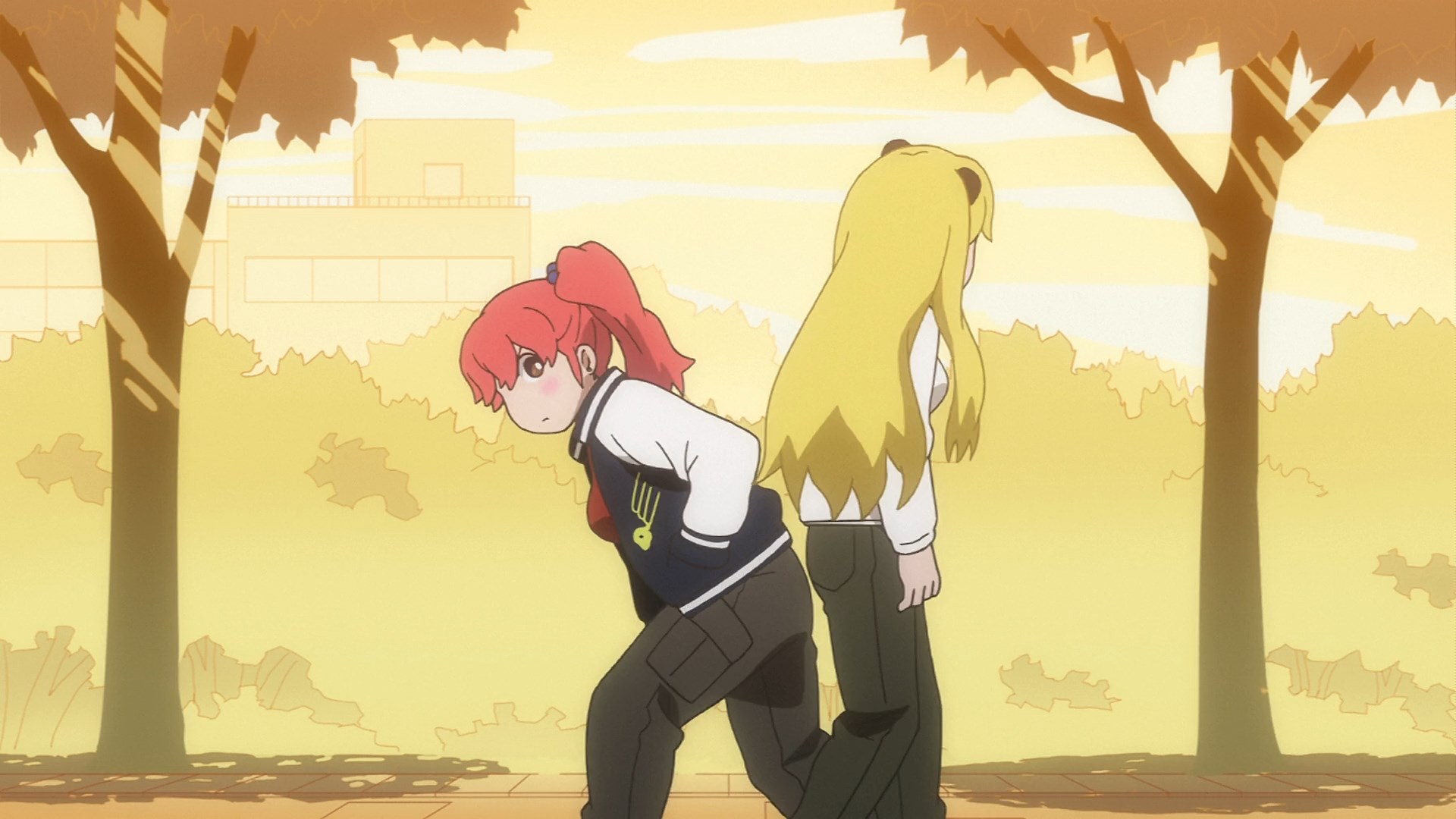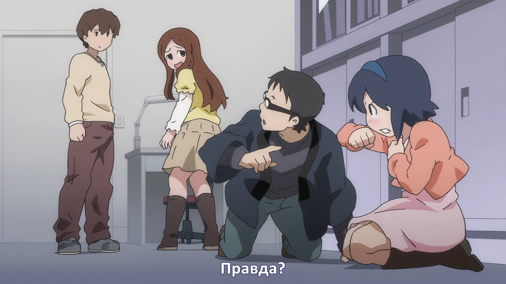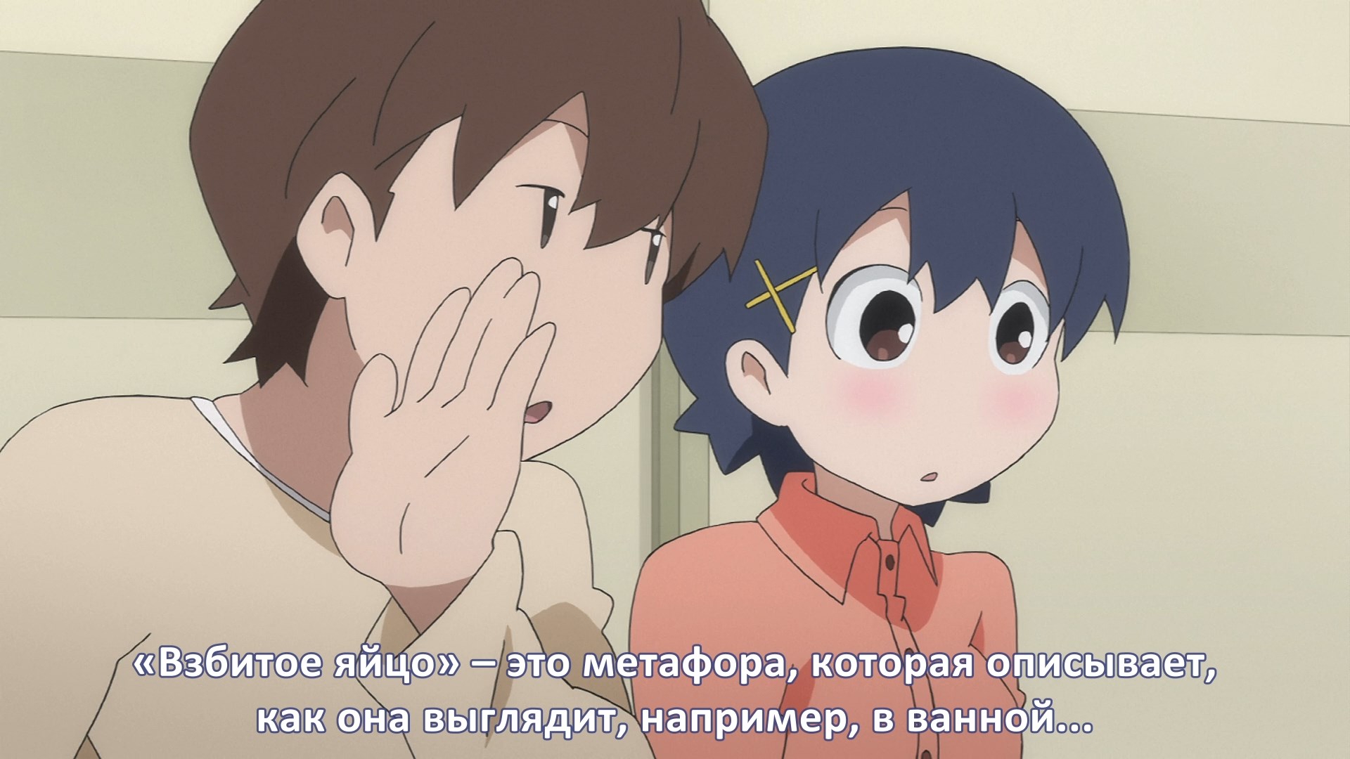 Пиздец, они сидели вдвоём на лестнице и говорили, и тут у этой пизды начинается приход, она видит свою любимую химечан и начинает плакать и с ней разговаривать. Я бы на месте гяру встал и ушёл бы, просто нахуй надо каких-то ебанашек успокаивать. Вот реально, это же до чего нужно было дойти, чтобы юри-тайтл исключительно бугурт и негатив вызывал. Но у этого мультика получилось.