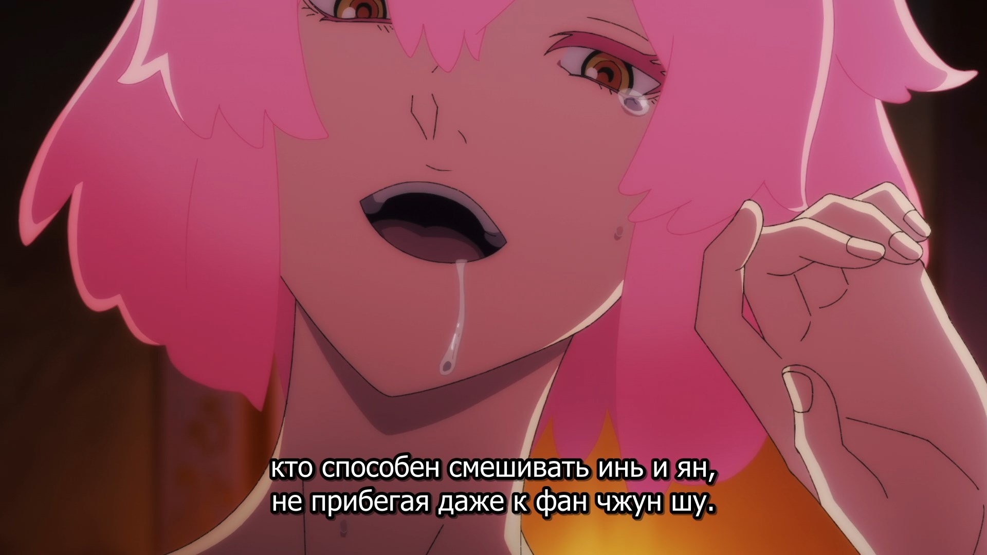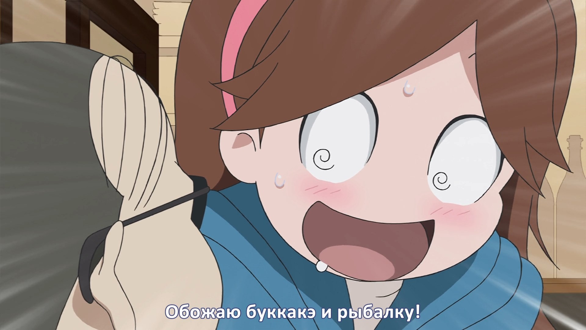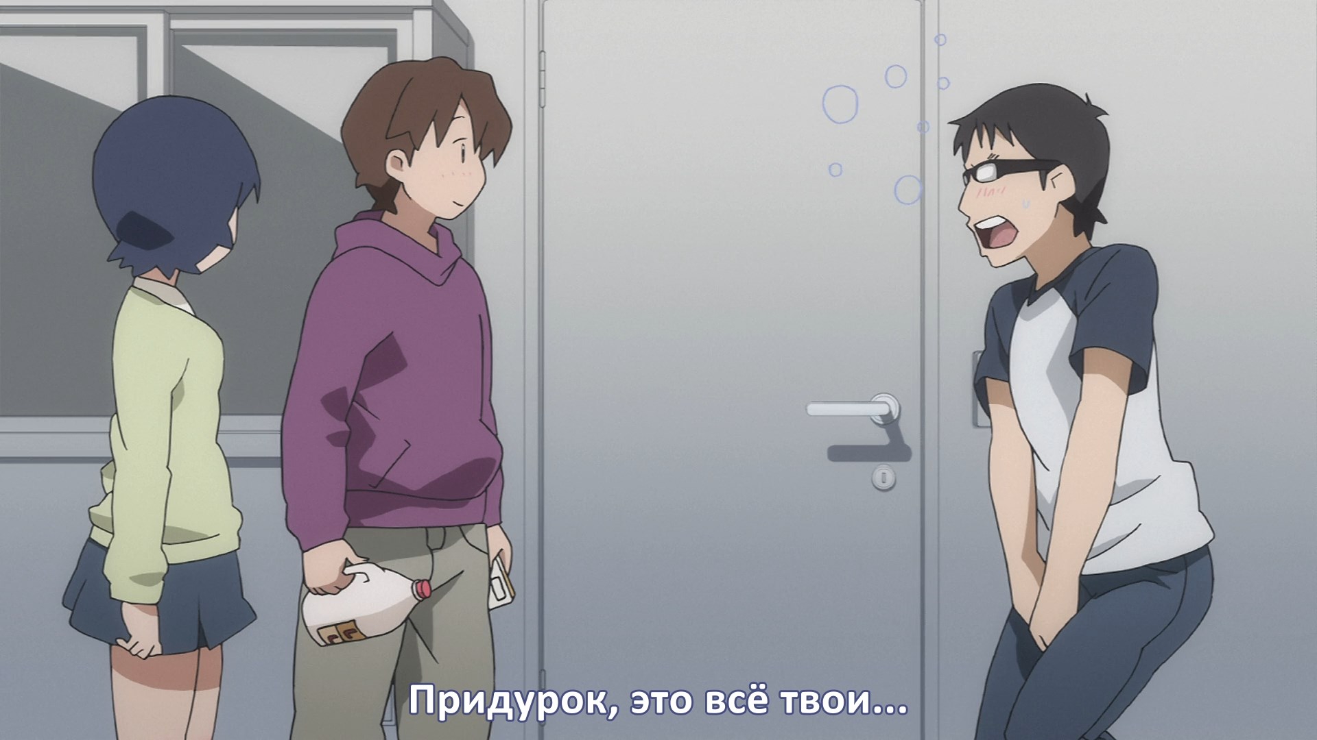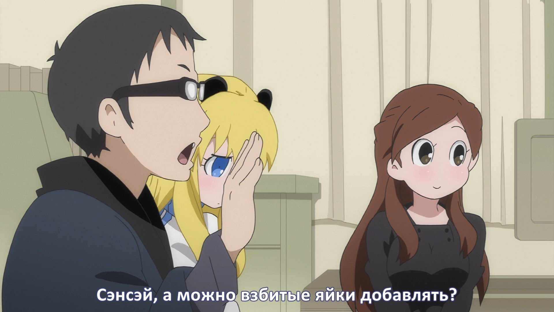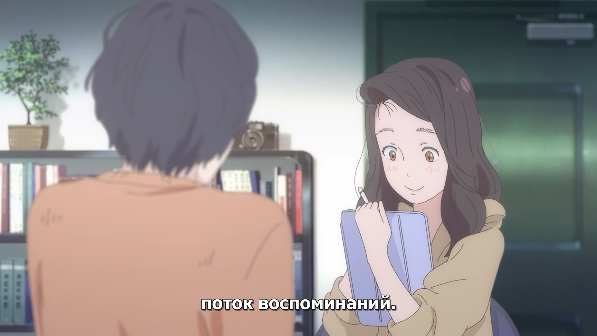 Пиздец, они сидели вдвоём на лестнице и говорили, и тут у этой пизды начинается приход, она видит свою любимую химечан и начинает плакать и с ней разговаривать. Я бы на месте гяру встал и ушёл бы, просто нахуй надо каких-то ебанашек успокаивать. Вот реально, это же до чего нужно было дойти, чтобы юри-тайтл исключительно бугурт и негатив вызывал. Но у этого мультика получилось.