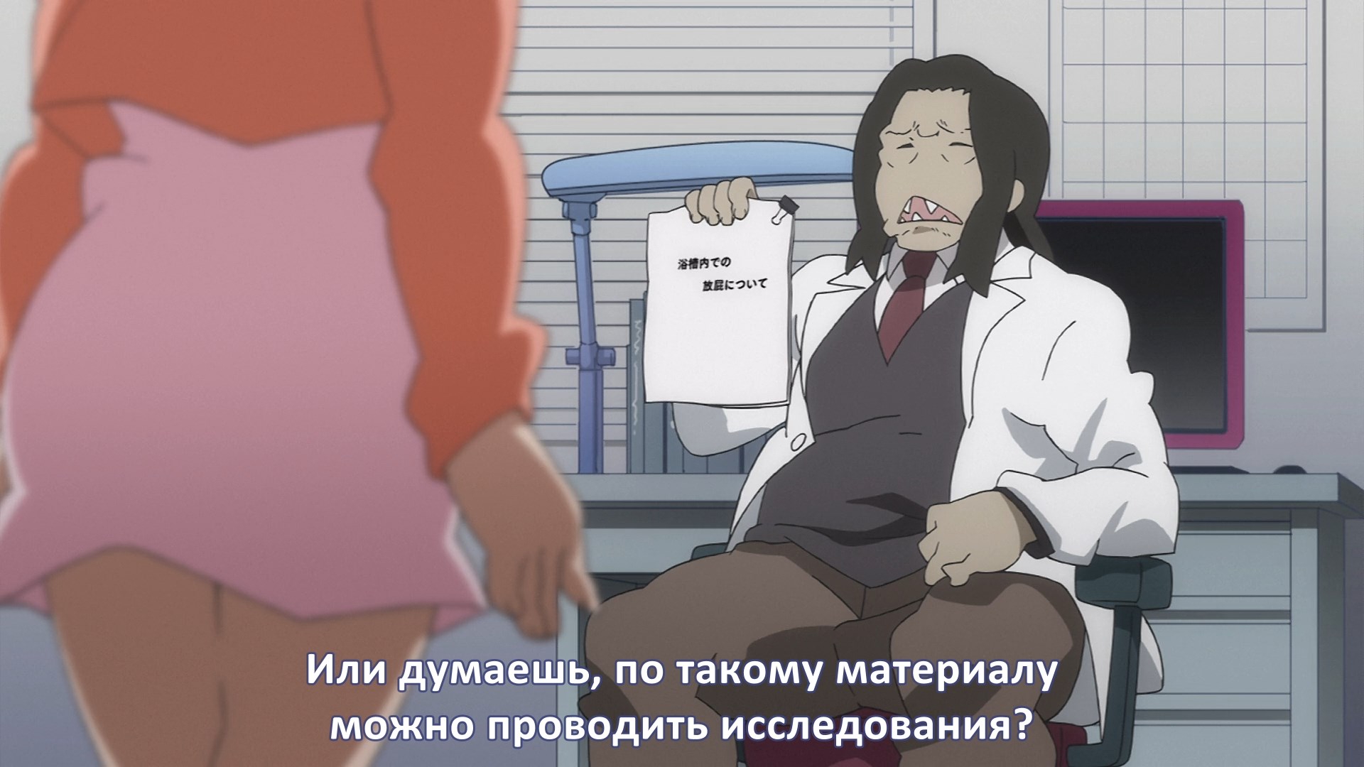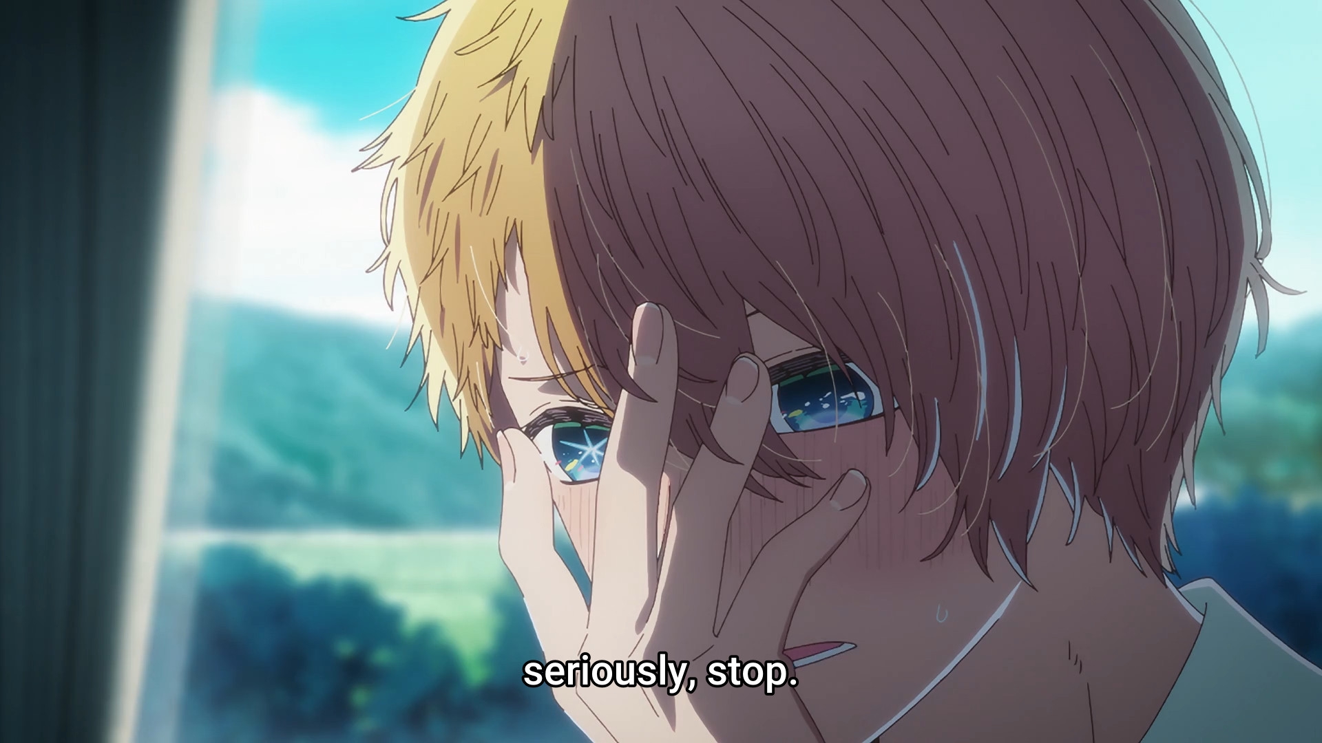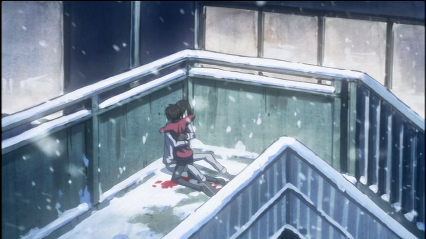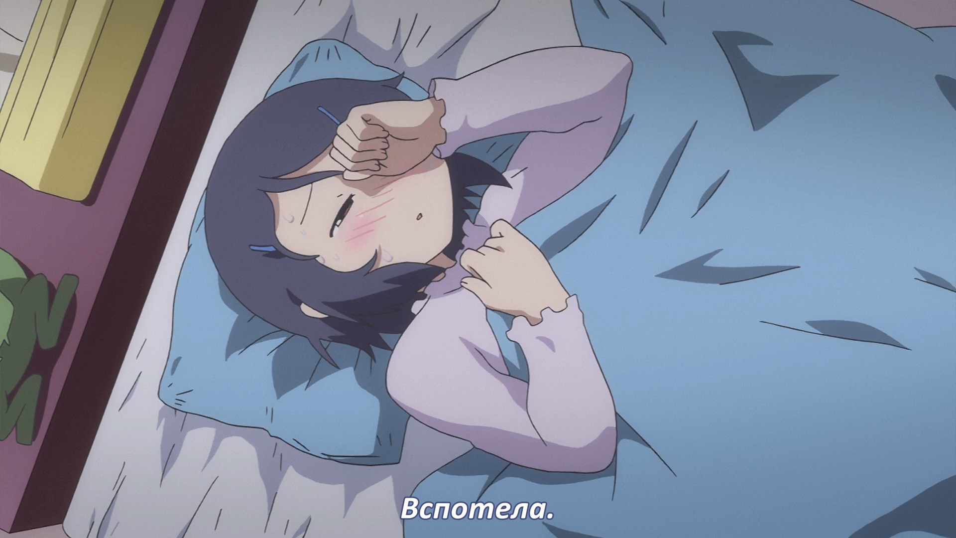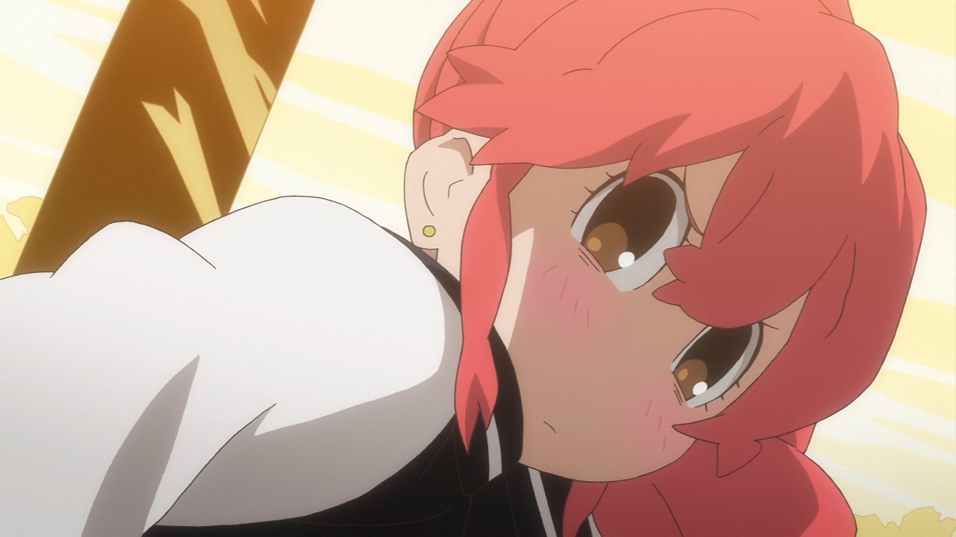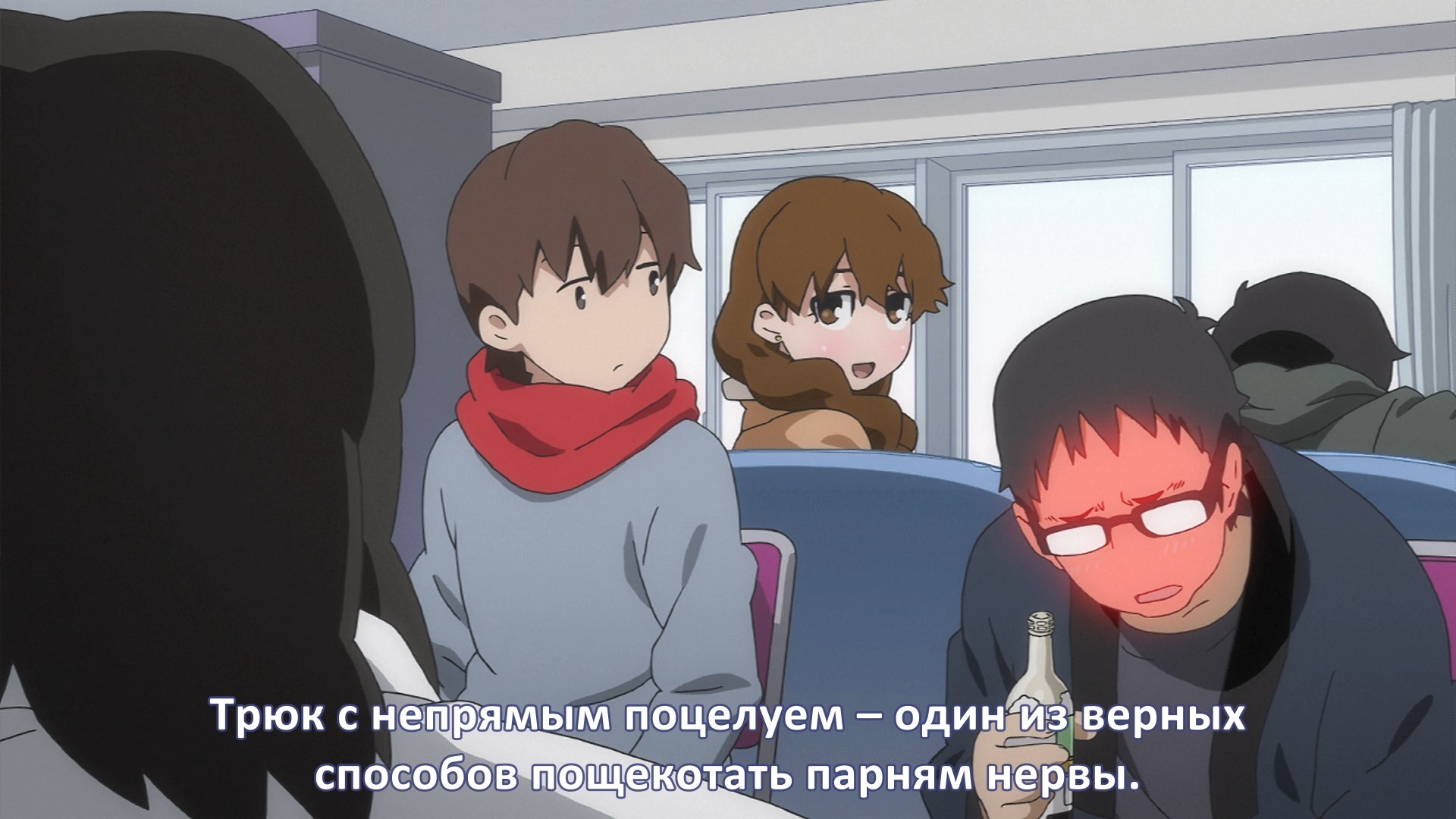 Пиздец, они сидели вдвоём на лестнице и говорили, и тут у этой пизды начинается приход, она видит свою любимую химечан и начинает плакать и с ней разговаривать. Я бы на месте гяру встал и ушёл бы, просто нахуй надо каких-то ебанашек успокаивать. Вот реально, это же до чего нужно было дойти, чтобы юри-тайтл исключительно бугурт и негатив вызывал. Но у этого мультика получилось.