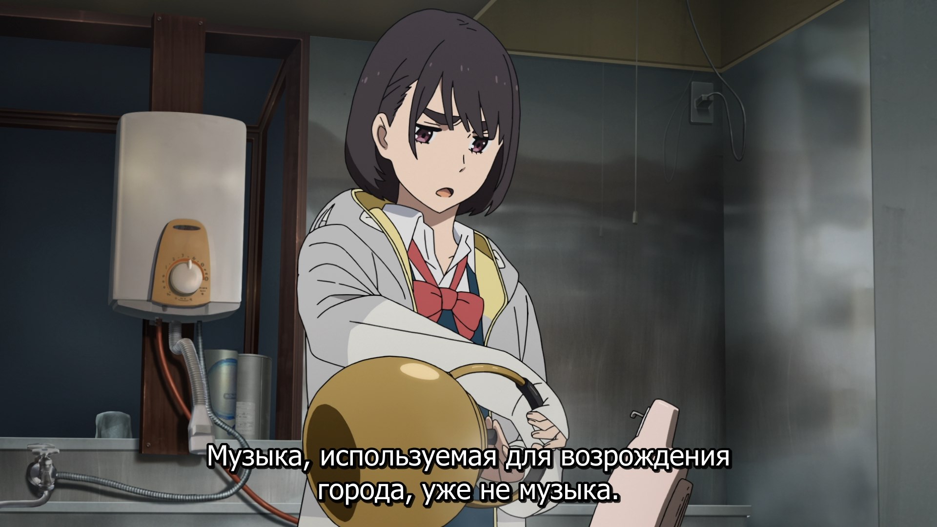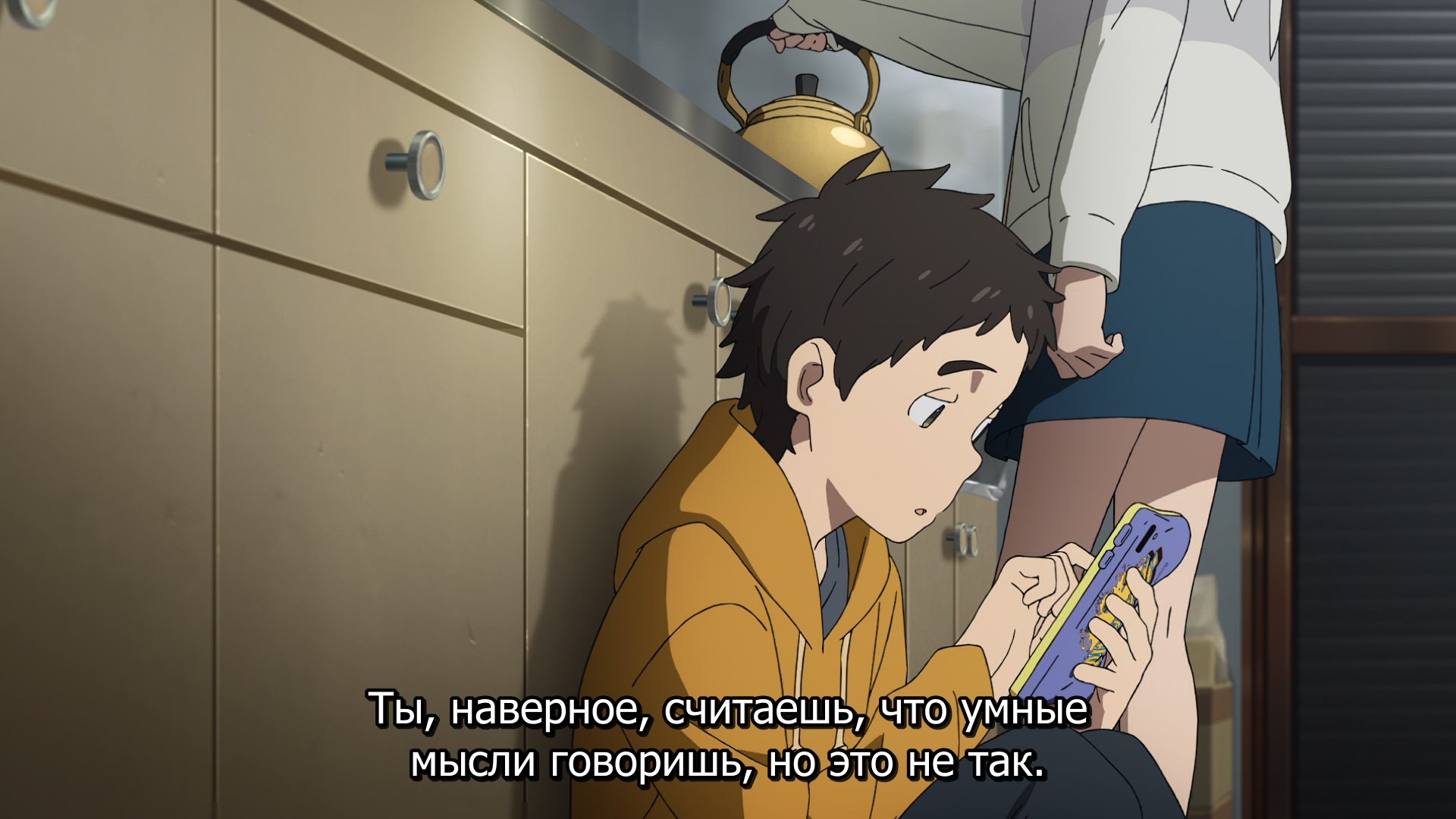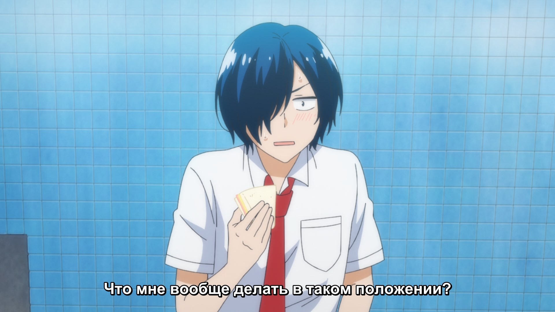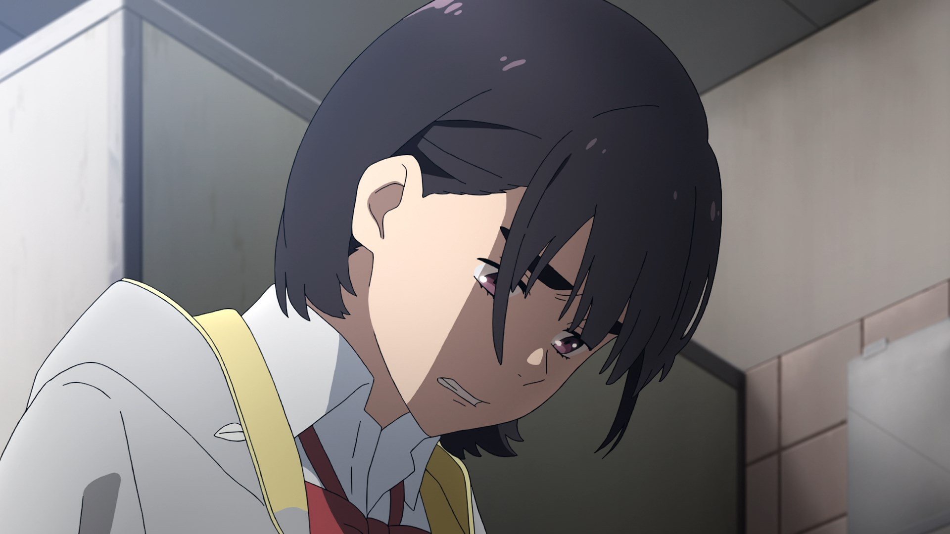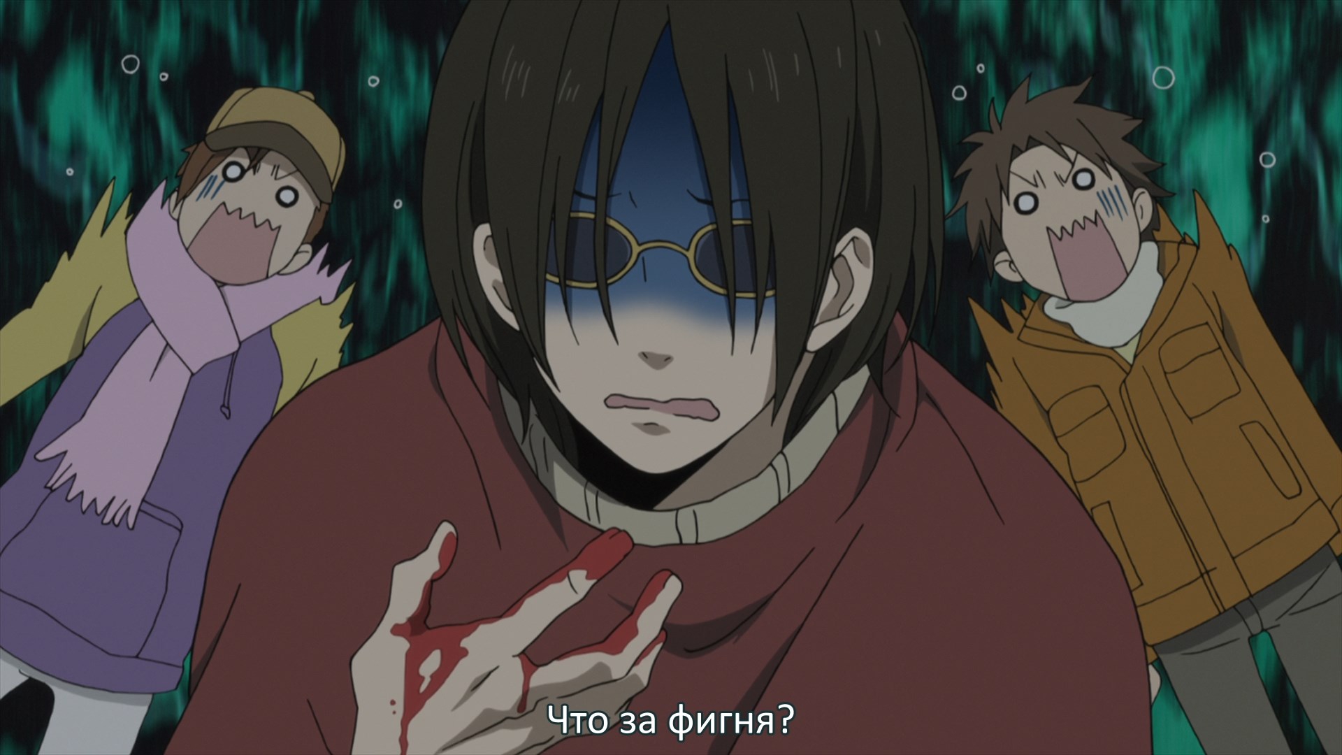 Пиздец, они сидели вдвоём на лестнице и говорили, и тут у этой пизды начинается приход, она видит свою любимую химечан и начинает плакать и с ней разговаривать. Я бы на месте гяру встал и ушёл бы, просто нахуй надо каких-то ебанашек успокаивать. Вот реально, это же до чего нужно было дойти, чтобы юри-тайтл исключительно бугурт и негатив вызывал. Но у этого мультика получилось.