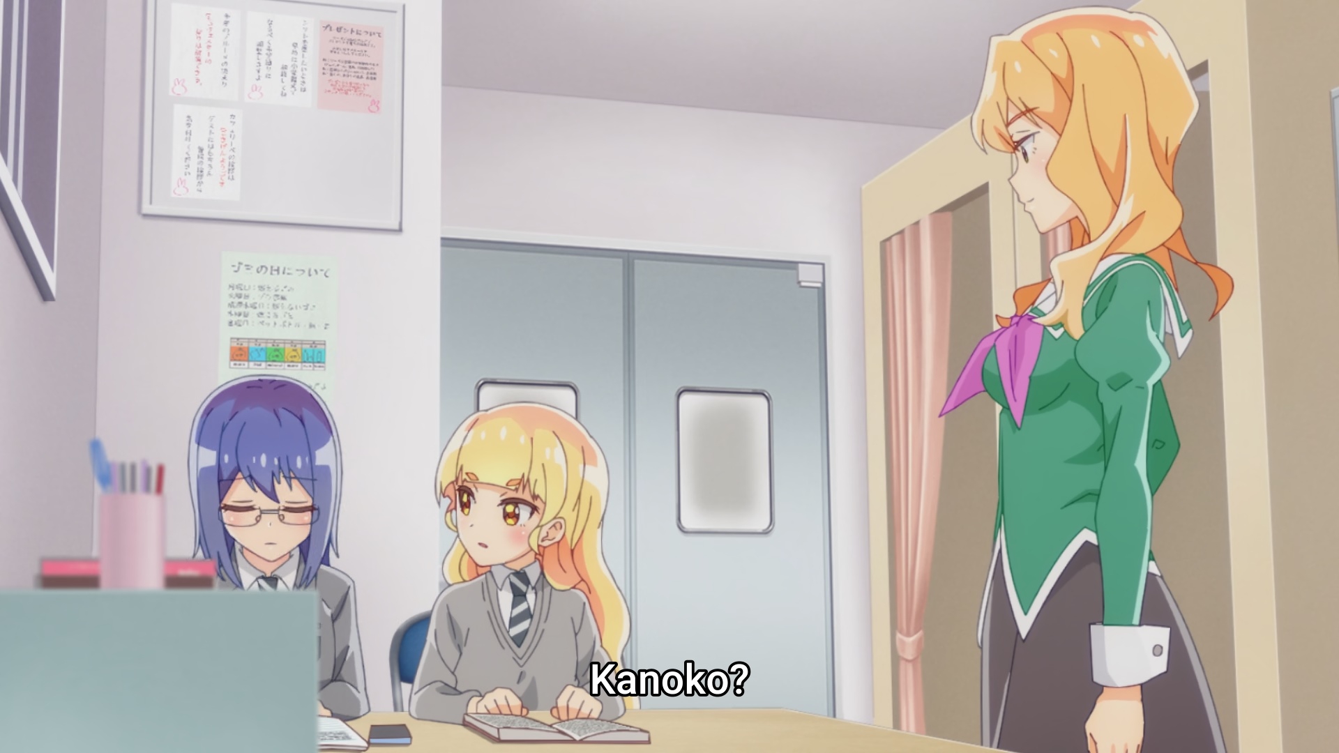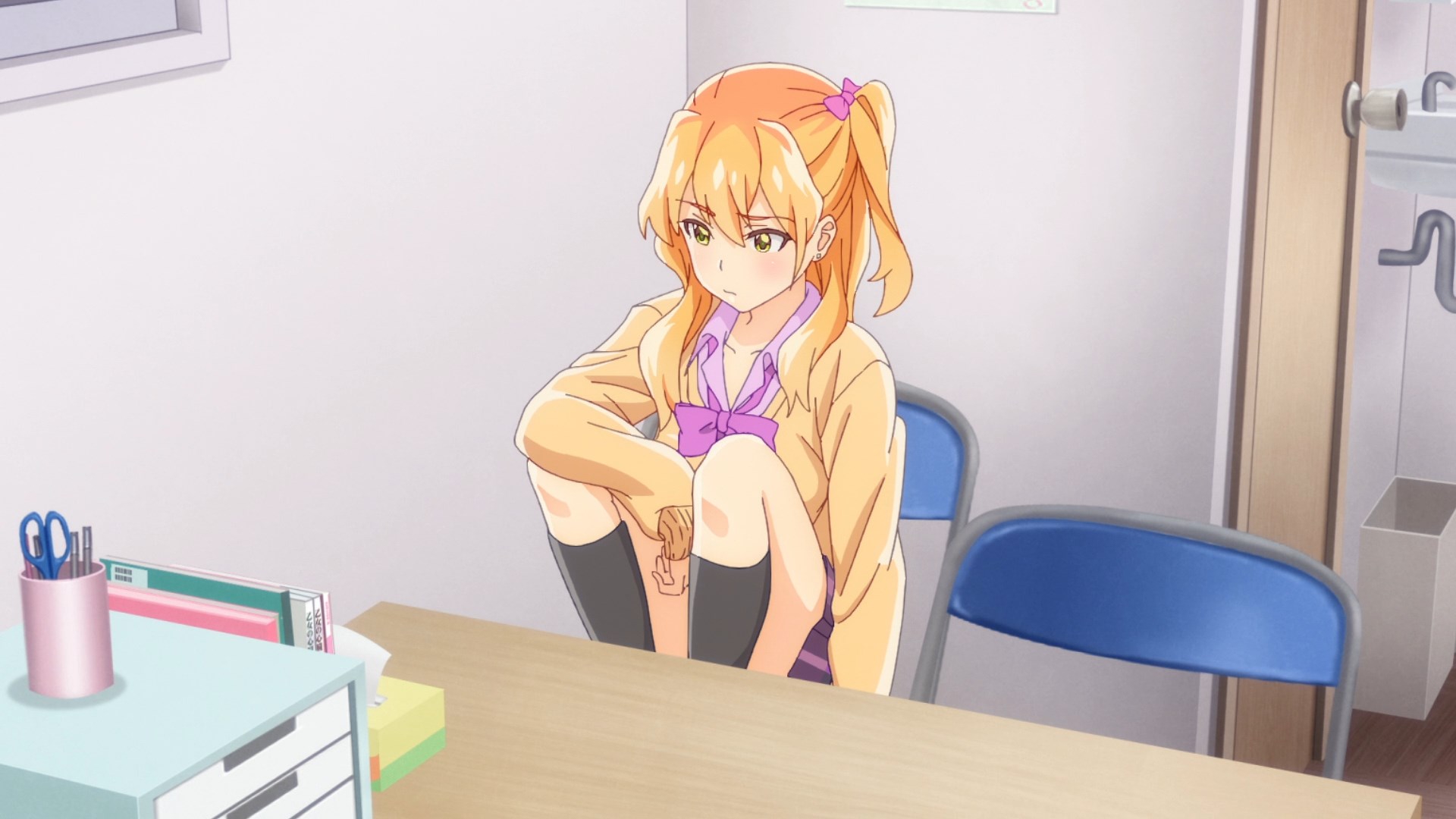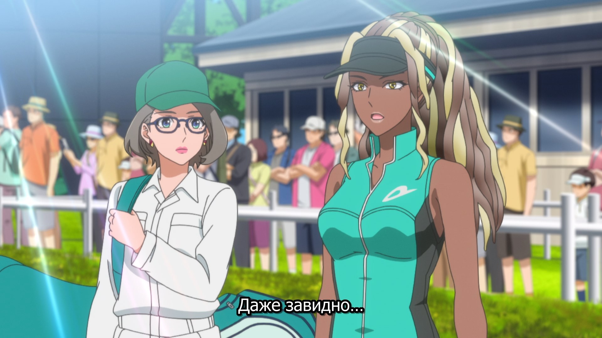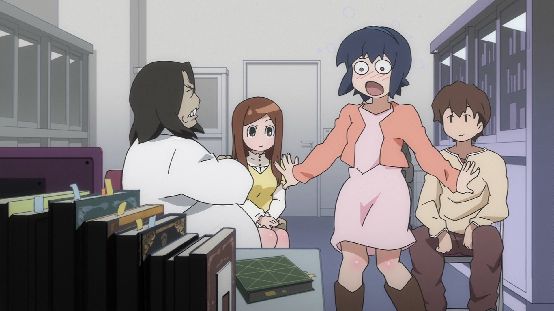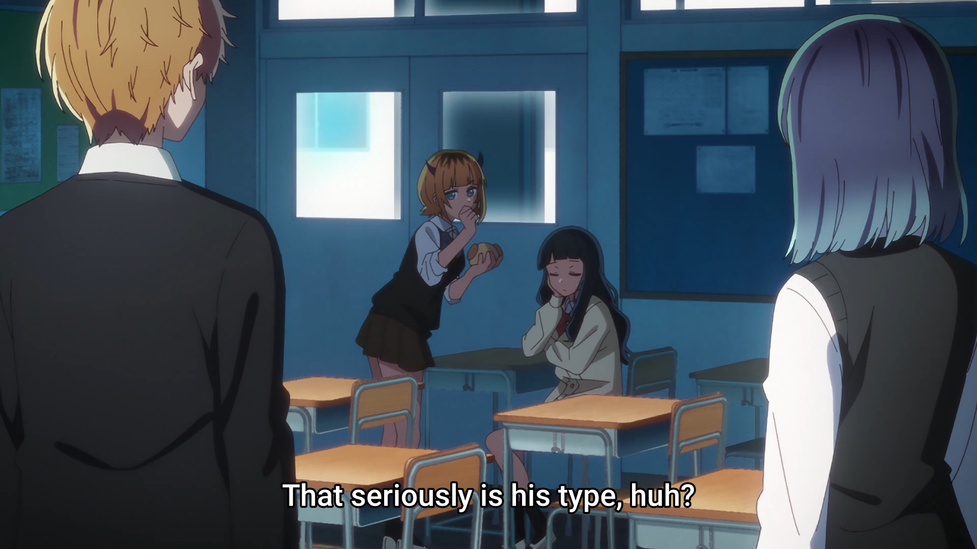 Пиздец, они сидели вдвоём на лестнице и говорили, и тут у этой пизды начинается приход, она видит свою любимую химечан и начинает плакать и с ней разговаривать. Я бы на месте гяру встал и ушёл бы, просто нахуй надо каких-то ебанашек успокаивать. Вот реально, это же до чего нужно было дойти, чтобы юри-тайтл исключительно бугурт и негатив вызывал. Но у этого мультика получилось.