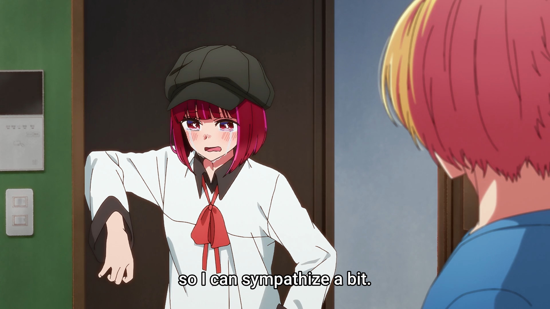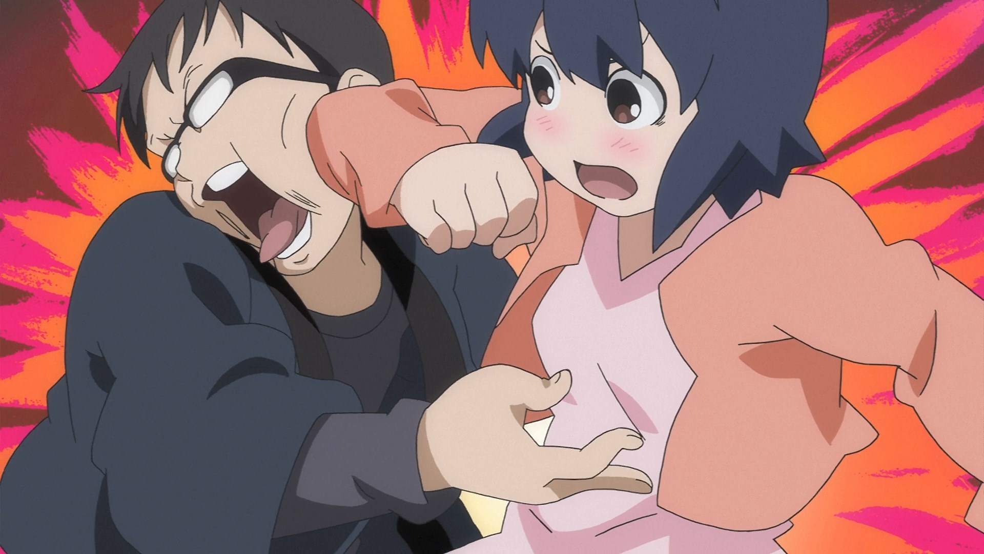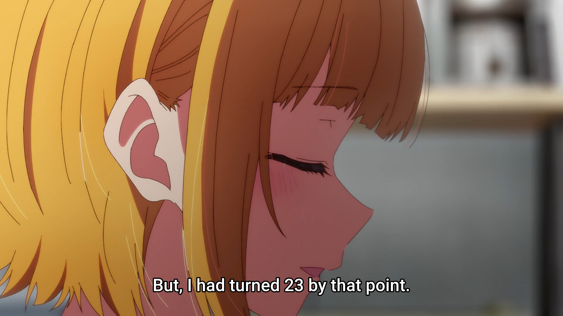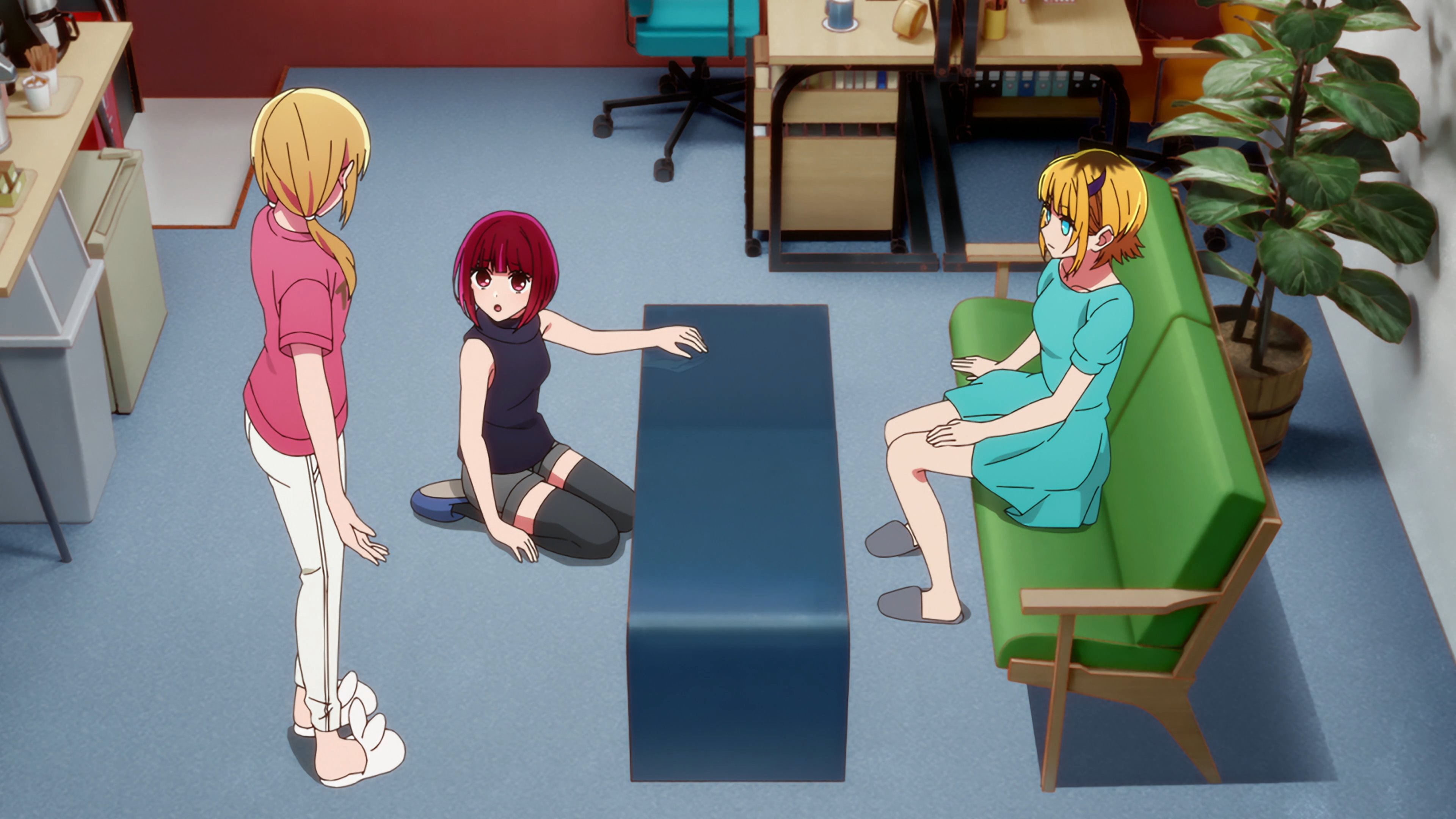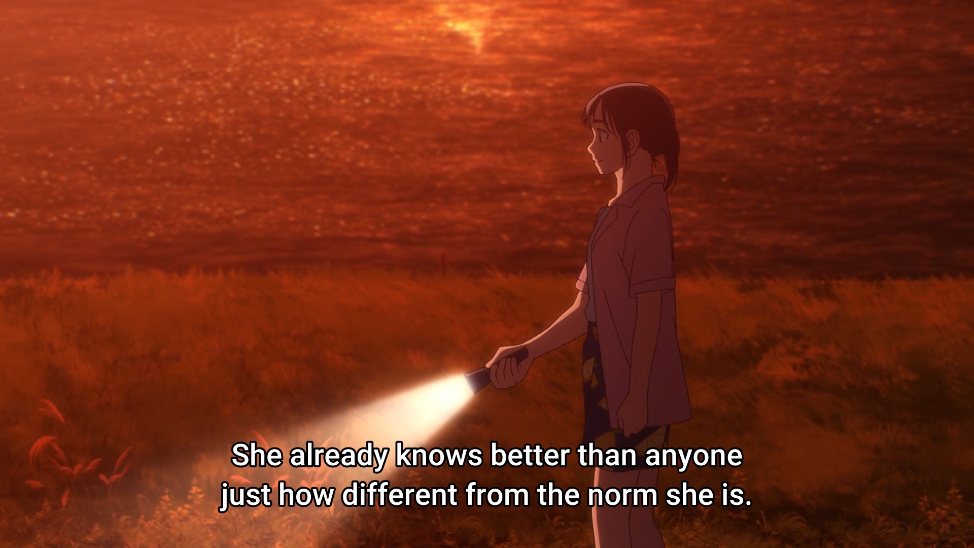 Пиздец, они сидели вдвоём на лестнице и говорили, и тут у этой пизды начинается приход, она видит свою любимую химечан и начинает плакать и с ней разговаривать. Я бы на месте гяру встал и ушёл бы, просто нахуй надо каких-то ебанашек успокаивать. Вот реально, это же до чего нужно было дойти, чтобы юри-тайтл исключительно бугурт и негатив вызывал. Но у этого мультика получилось.