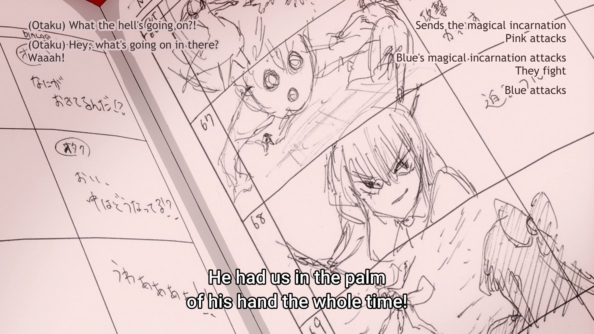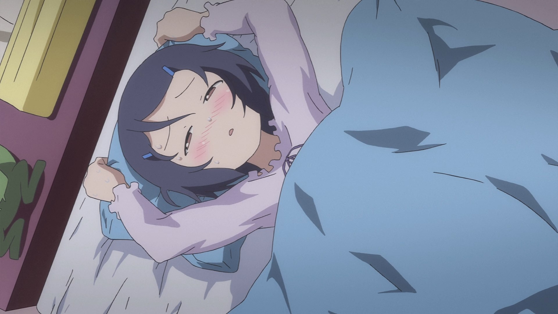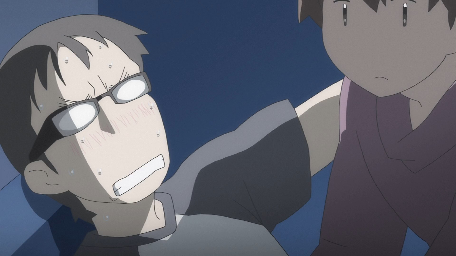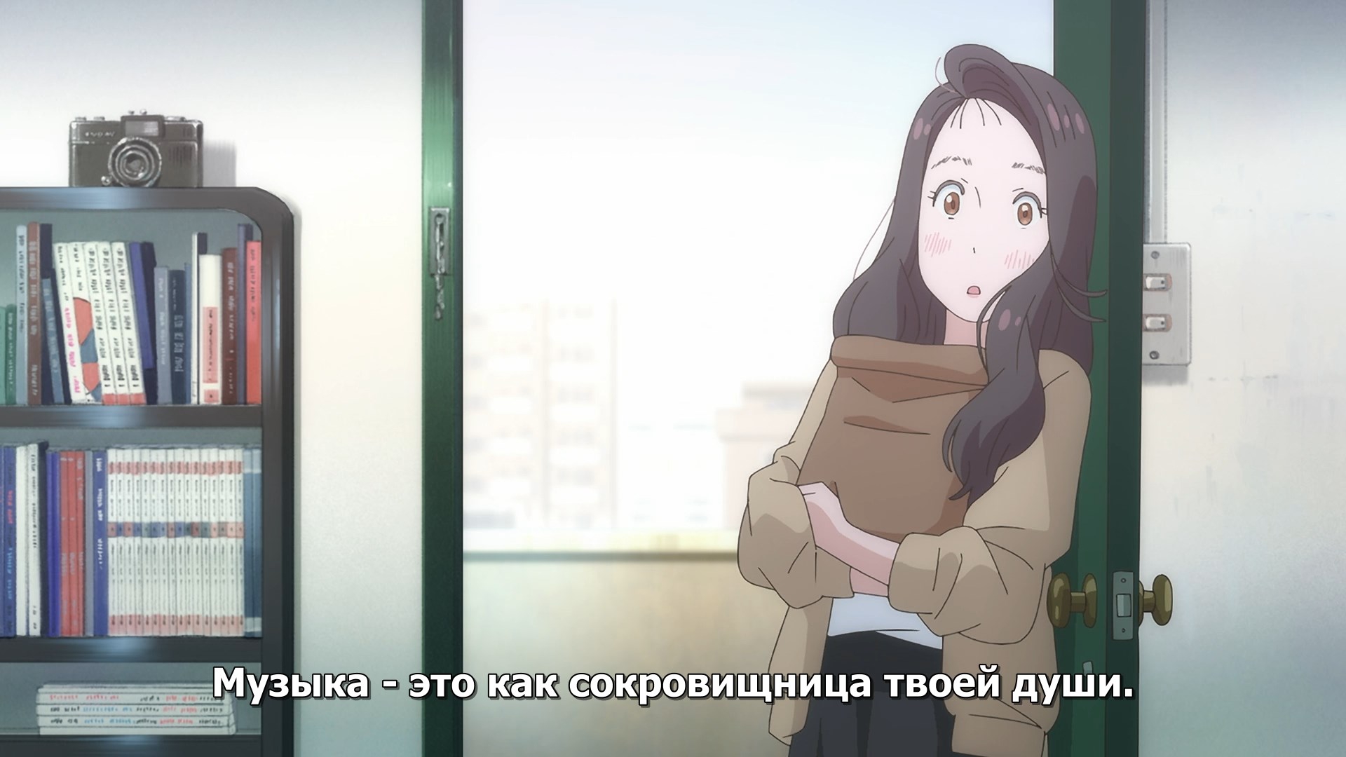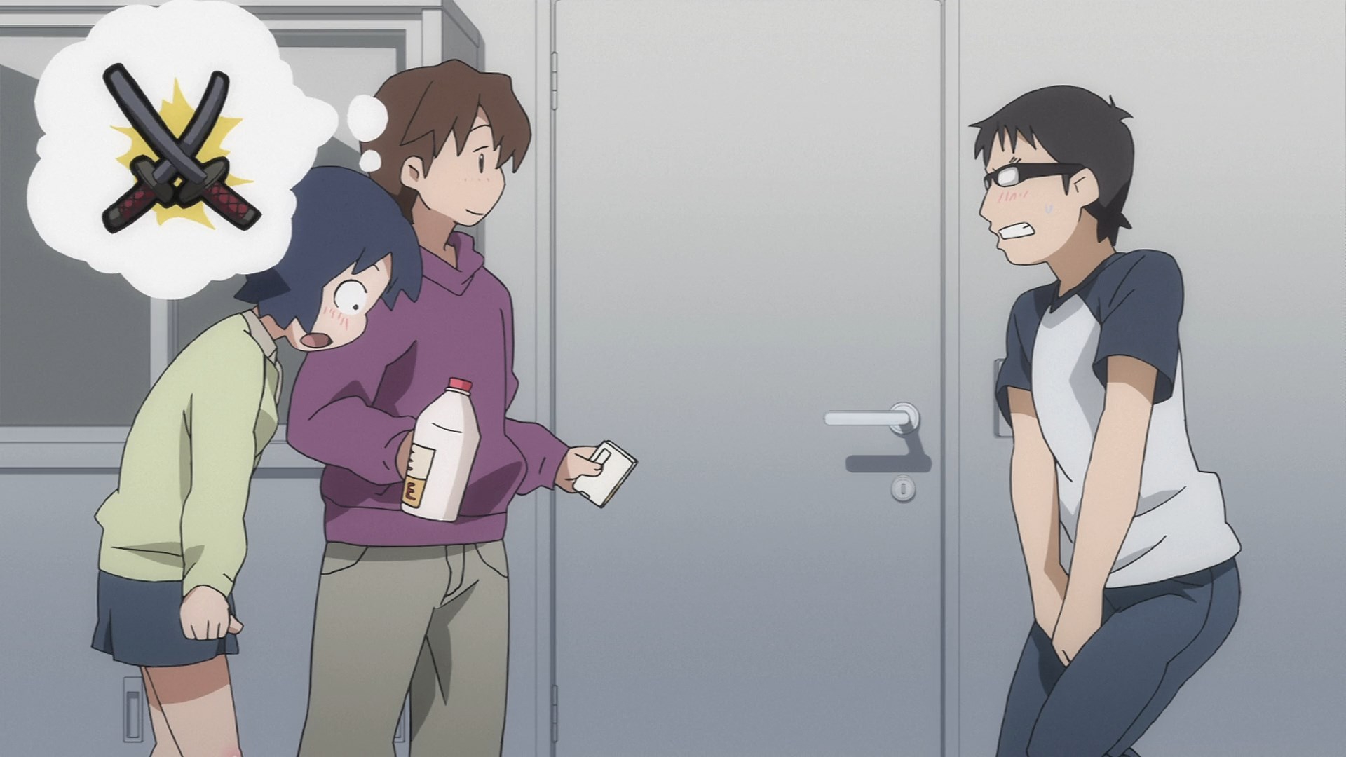 Пиздец, они сидели вдвоём на лестнице и говорили, и тут у этой пизды начинается приход, она видит свою любимую химечан и начинает плакать и с ней разговаривать. Я бы на месте гяру встал и ушёл бы, просто нахуй надо каких-то ебанашек успокаивать. Вот реально, это же до чего нужно было дойти, чтобы юри-тайтл исключительно бугурт и негатив вызывал. Но у этого мультика получилось.
