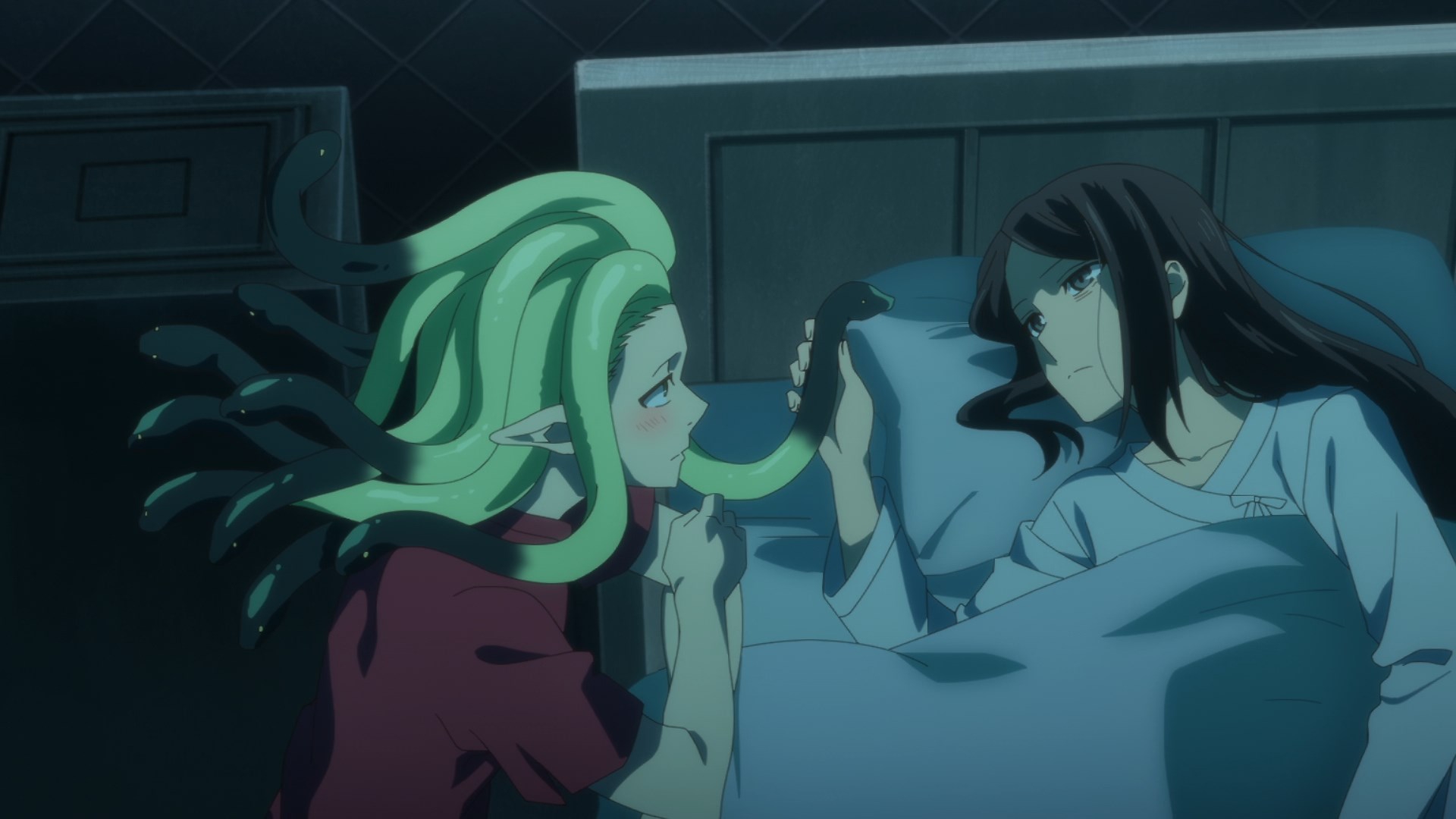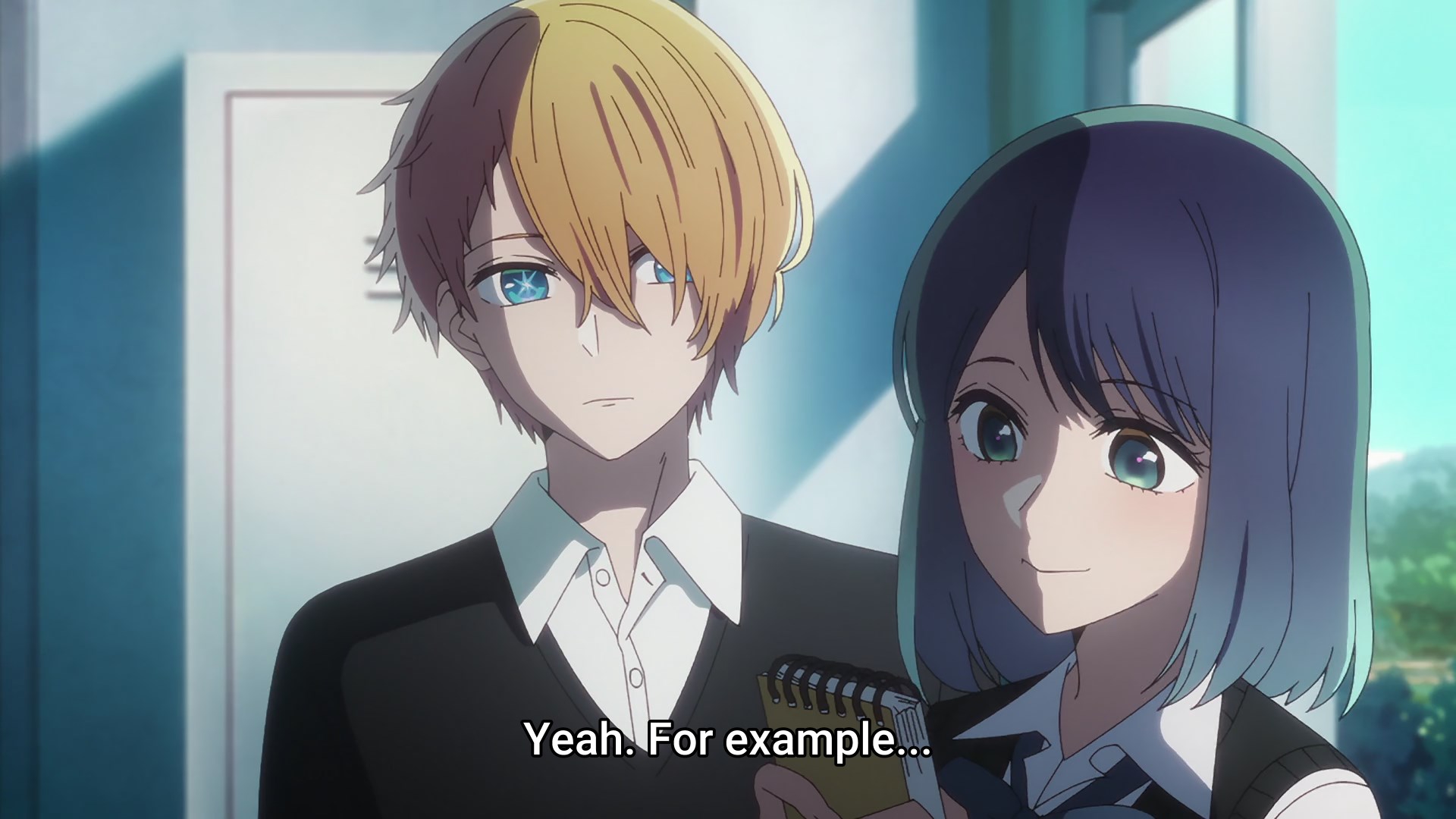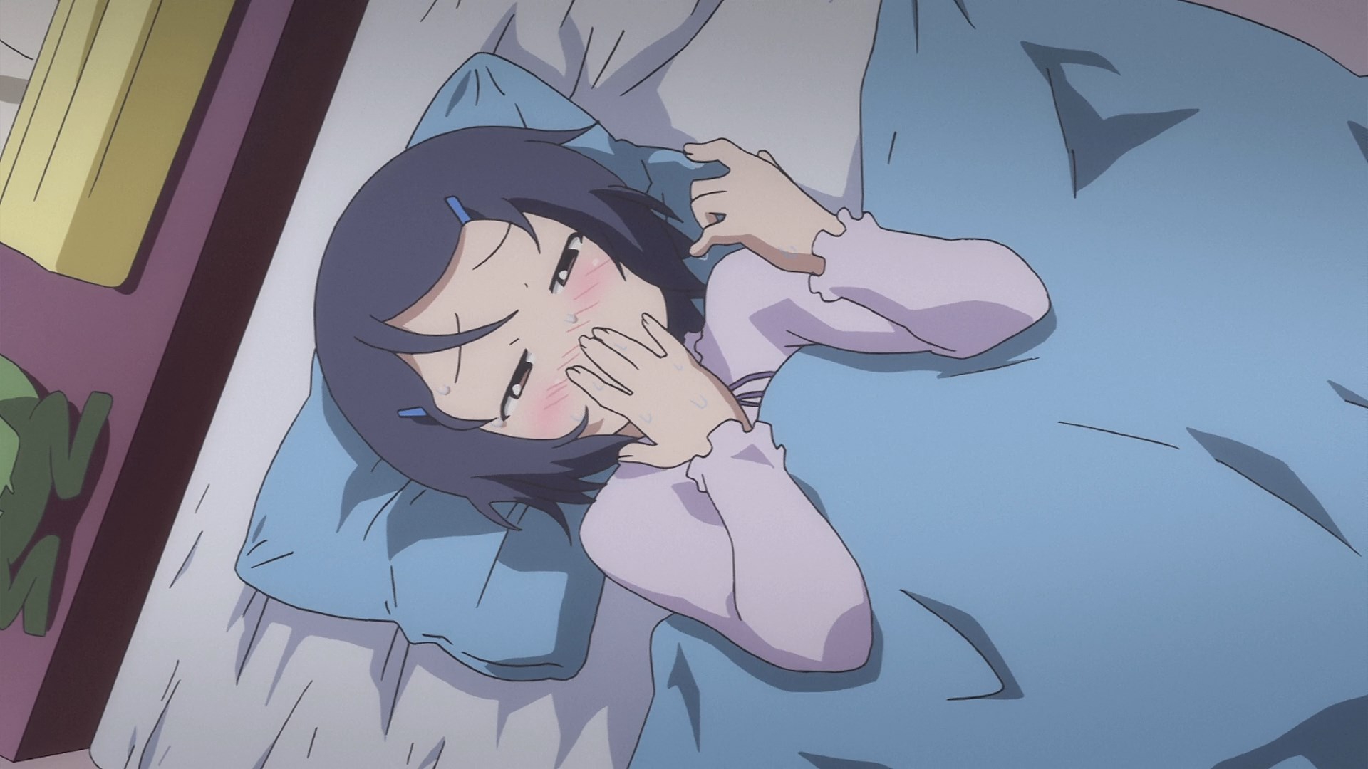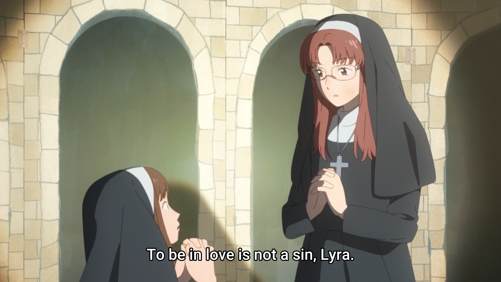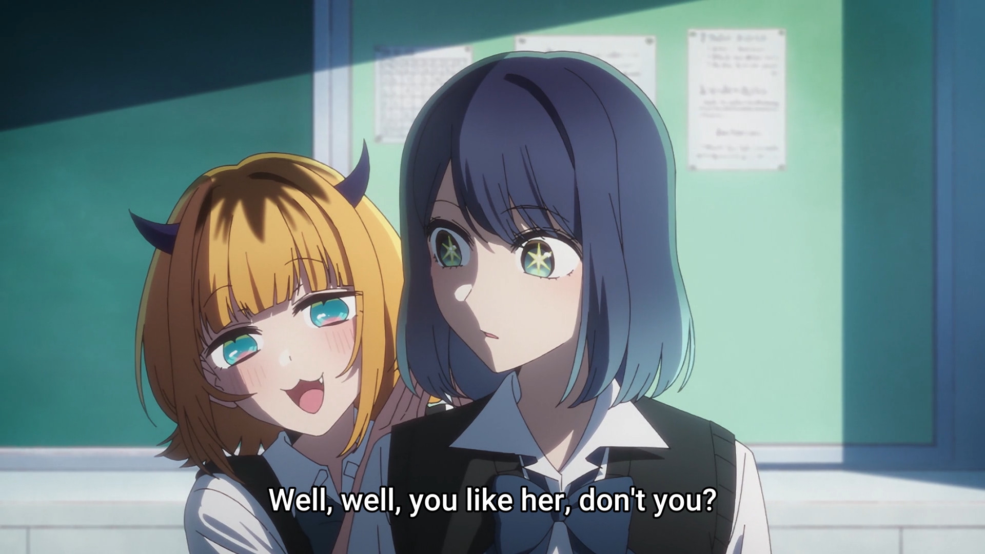 Пиздец, они сидели вдвоём на лестнице и говорили, и тут у этой пизды начинается приход, она видит свою любимую химечан и начинает плакать и с ней разговаривать. Я бы на месте гяру встал и ушёл бы, просто нахуй надо каких-то ебанашек успокаивать. Вот реально, это же до чего нужно было дойти, чтобы юри-тайтл исключительно бугурт и негатив вызывал. Но у этого мультика получилось.