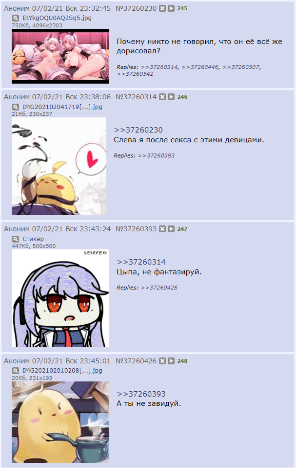 Ну и зачем тебе тогда гарем, дружище, раз ты на такую невинную штуку так сильно реагируешь. >>175387 Блен, точно. В любом случае она сейчас там самая адекватная. Есть ещё мелкая правда, но я к ней личную неприязнь испытываю. >>175388 Про кафе-театр, где школьницы притворяются юринахами на потеху быдлу.