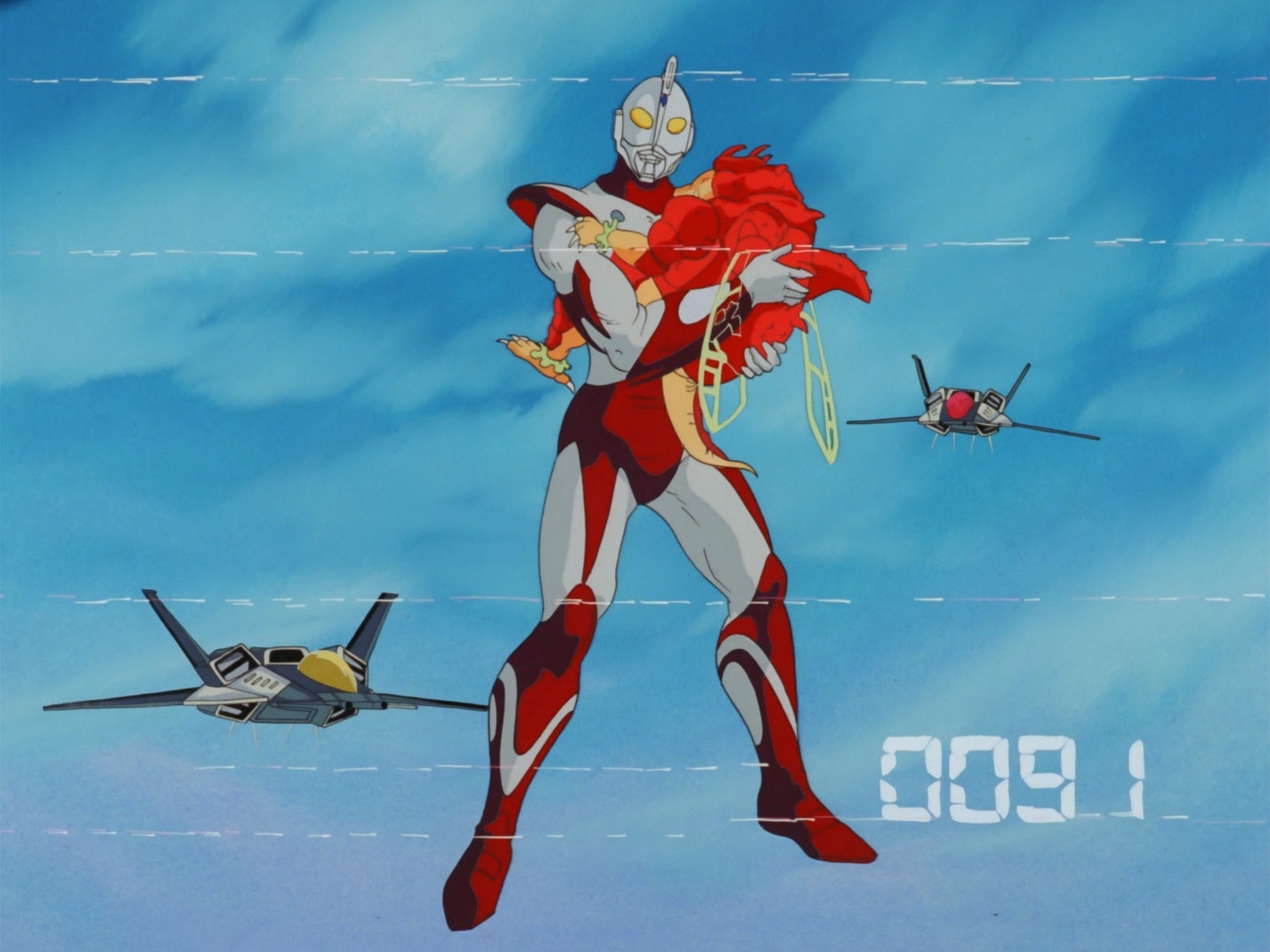 Из хорошего могу еще сказать, что мне очень понравилось как много, мать его, тут было истребителей! Да это аниме не про чела в дебильном трико нелепо колошматящего какашечных монстров и громко кряхтящего, потому что ультрамен в каждой серии появлялся на пару минут, а про пилотов истребителей. Самолеты показывали много, с разных ракурсов, и они выглядели очень даже неплохо Ну и еще во второй половине появился космический корабль, немного действия в космосе, и это тоже мне зашло