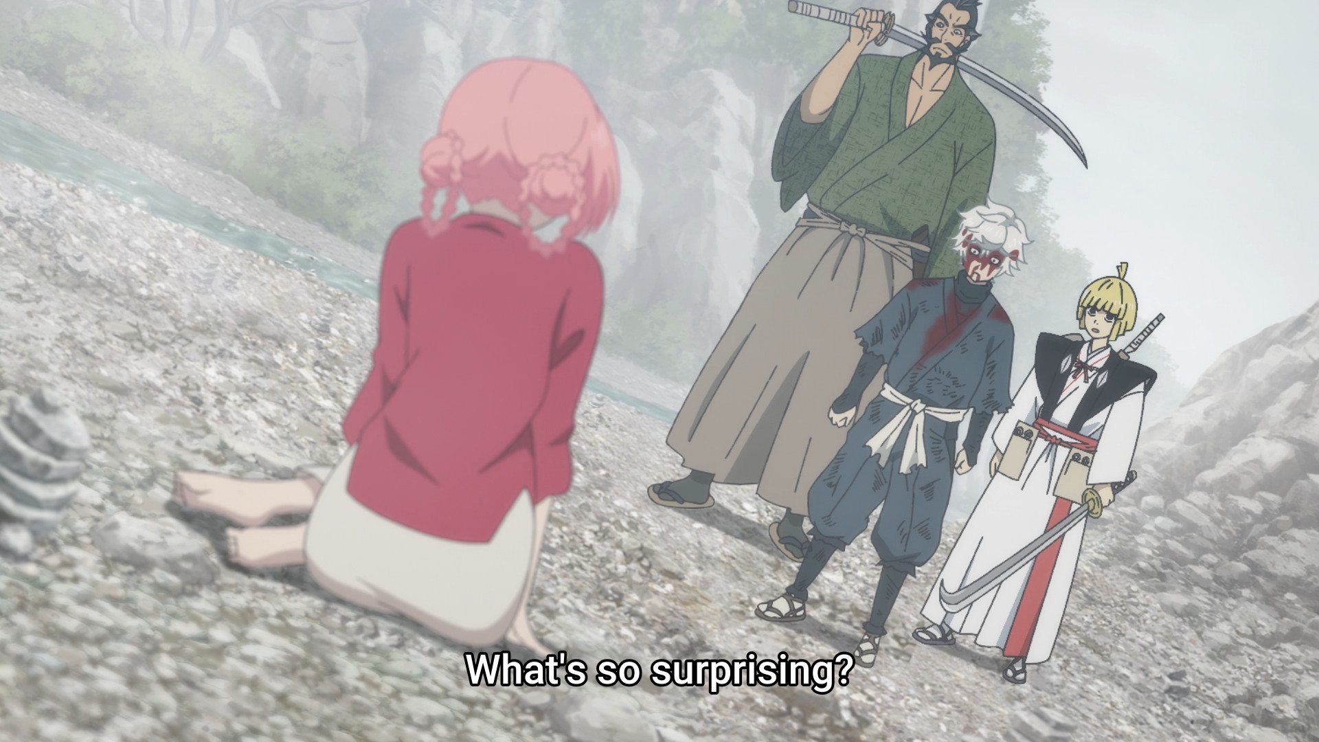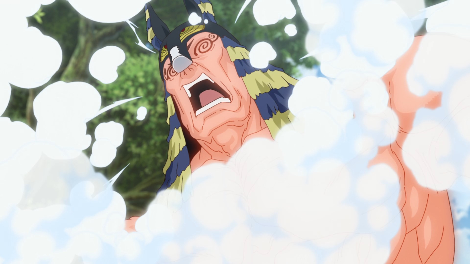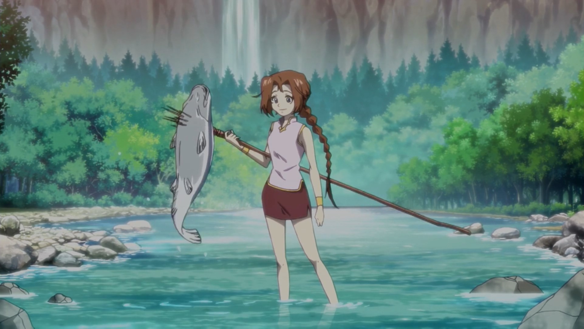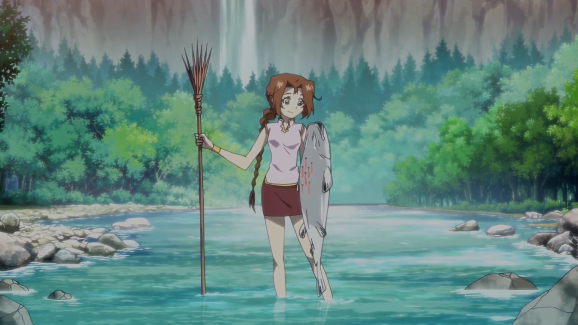 Потом когда они добрались уже до этого острова, у меня тут возникла по-моему очевидная мысль - Сенку буквально может создать что угодно, и оружие типа слезоточивого газа уже делал. Какого хуя он не делает какое-нибудь эффективное оружие против этого племени? Но вместо этого смехуешки с проникновением в деревню под видом наложниц