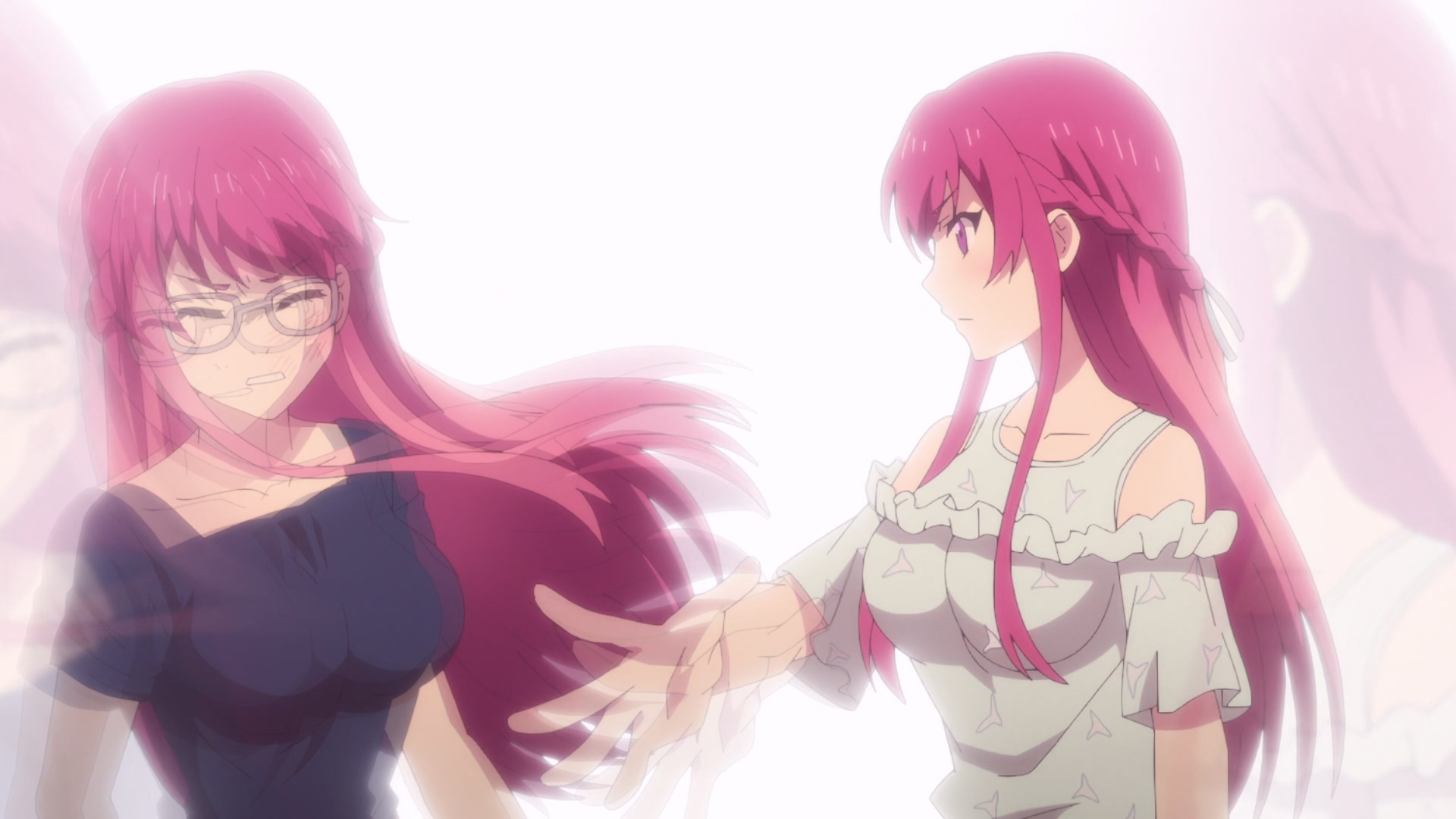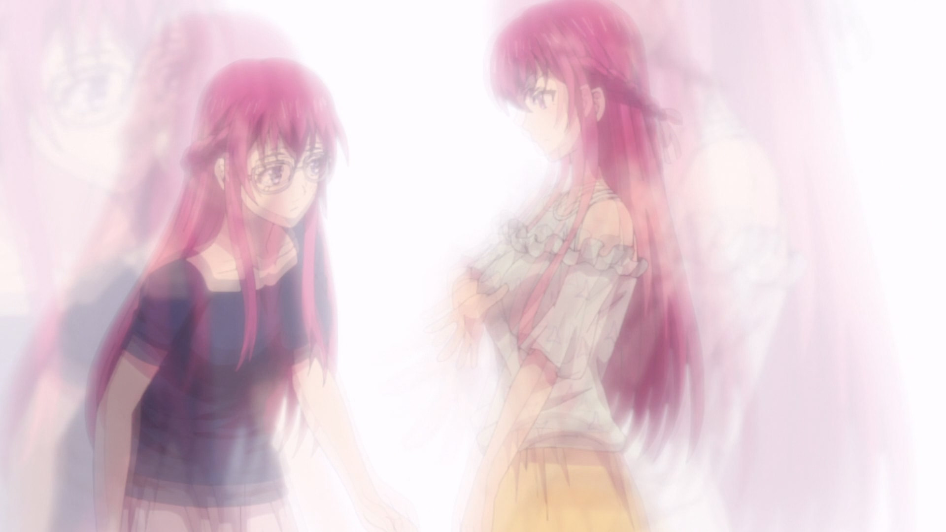 С каждой серией драма становится всё более и более идиотской. >нееет вы не можете становиться парой, это ведь МЕШАЕТ НАШЕЙ ИГРЕ В СЕСТЁР В КАФЕ Параллельно синяя мегане ведёт себя как полная мразь со своими ублюдочными яндере-замашками, при этом ничего из себя не представляя. Взять и уебать бы. И главное когда прошлая драма разрешилась, я уже подумал было, что наконец-то тайтл что-то приятное станет показывать. Но нет, только хуже стало. Отличное, блять, юри.