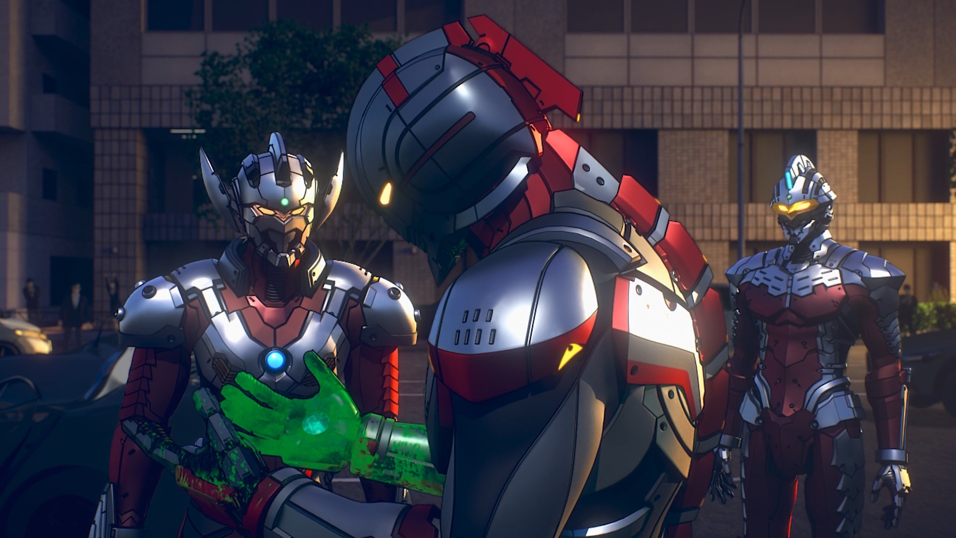 Хороший фильмец Выглядит отлично - анимации и рисовка норм, сам блюрей релиз отличный Были красивые кадры с истребителями и пилотами, во второй половине много неплохих сражений ультраменов с монстрами