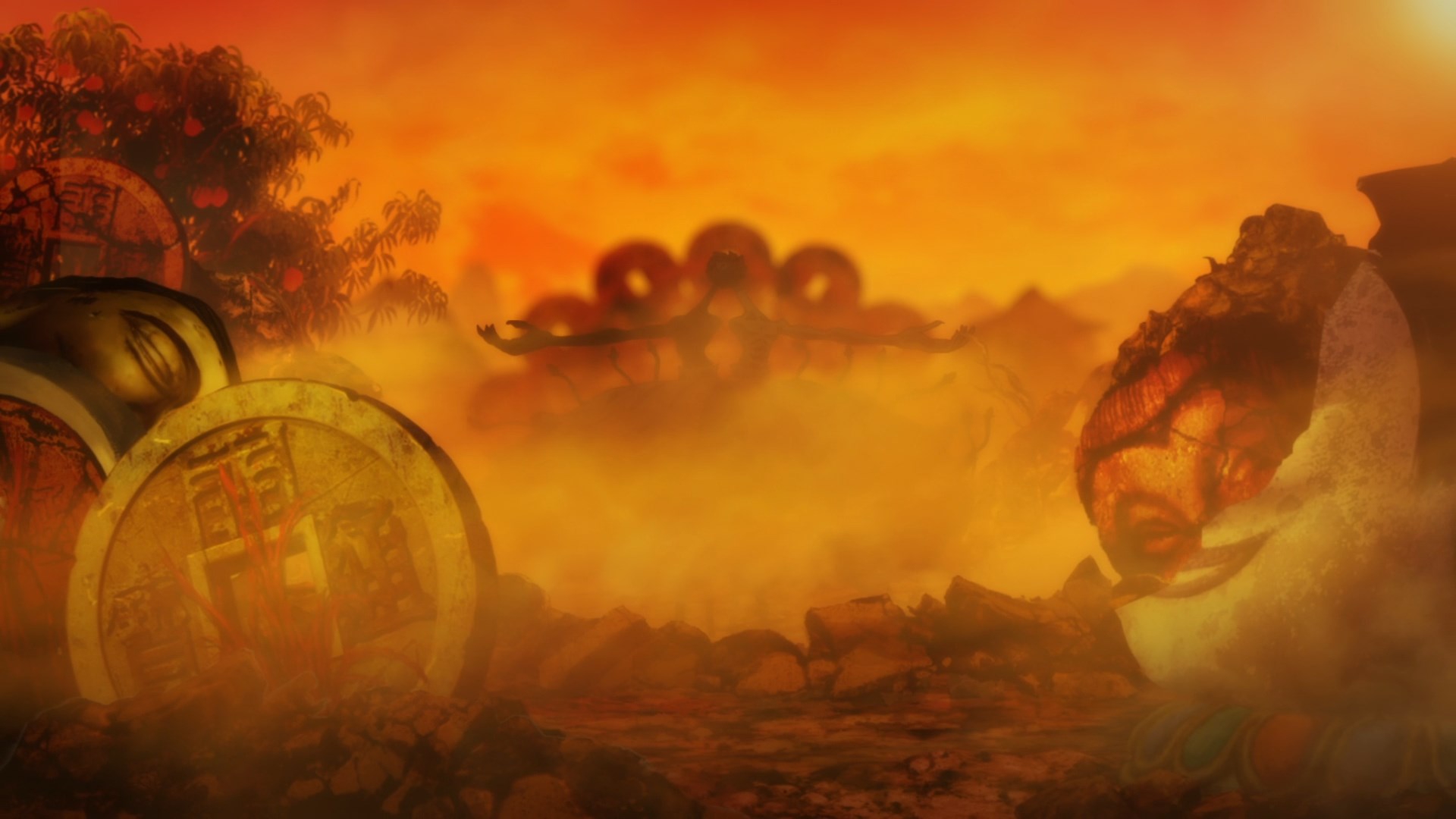 Понятно, что автору было принципиально важно столкнуть лбами буддизм и синтоизм, но бля... Так нелепо эти синтоисткие бойцы выглядят. Самый слабый бой как по мне. Сам Будда классный, но противник(и) просто хуита.