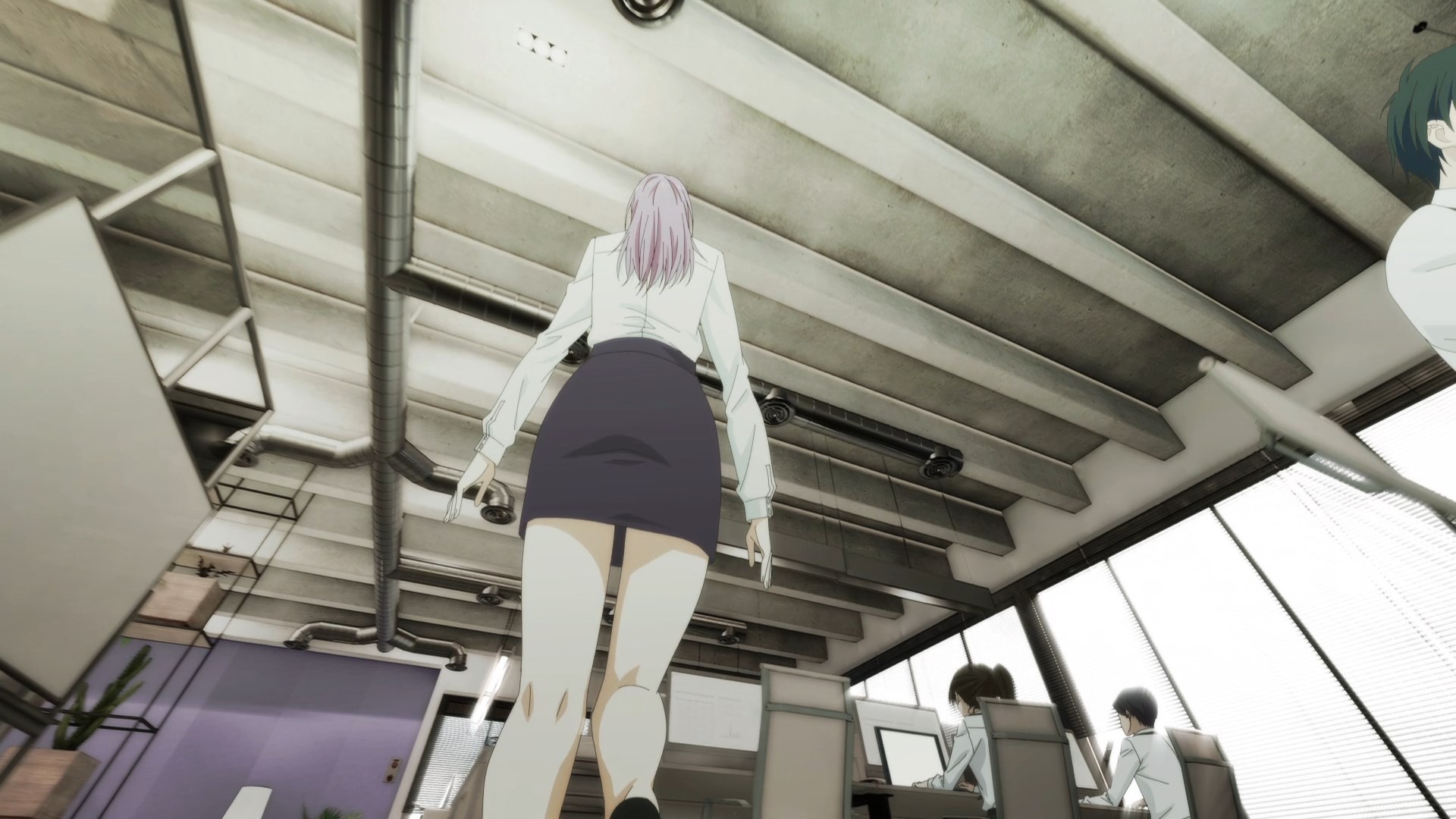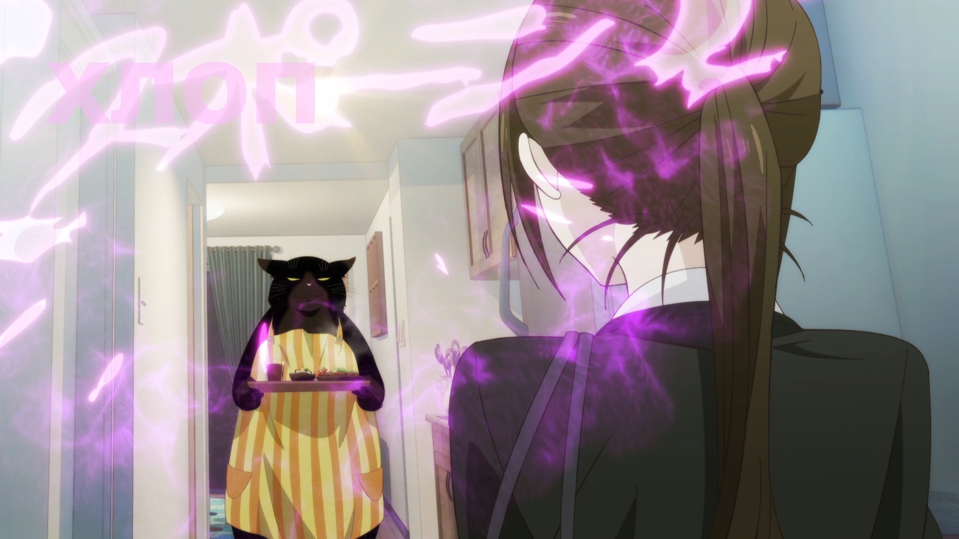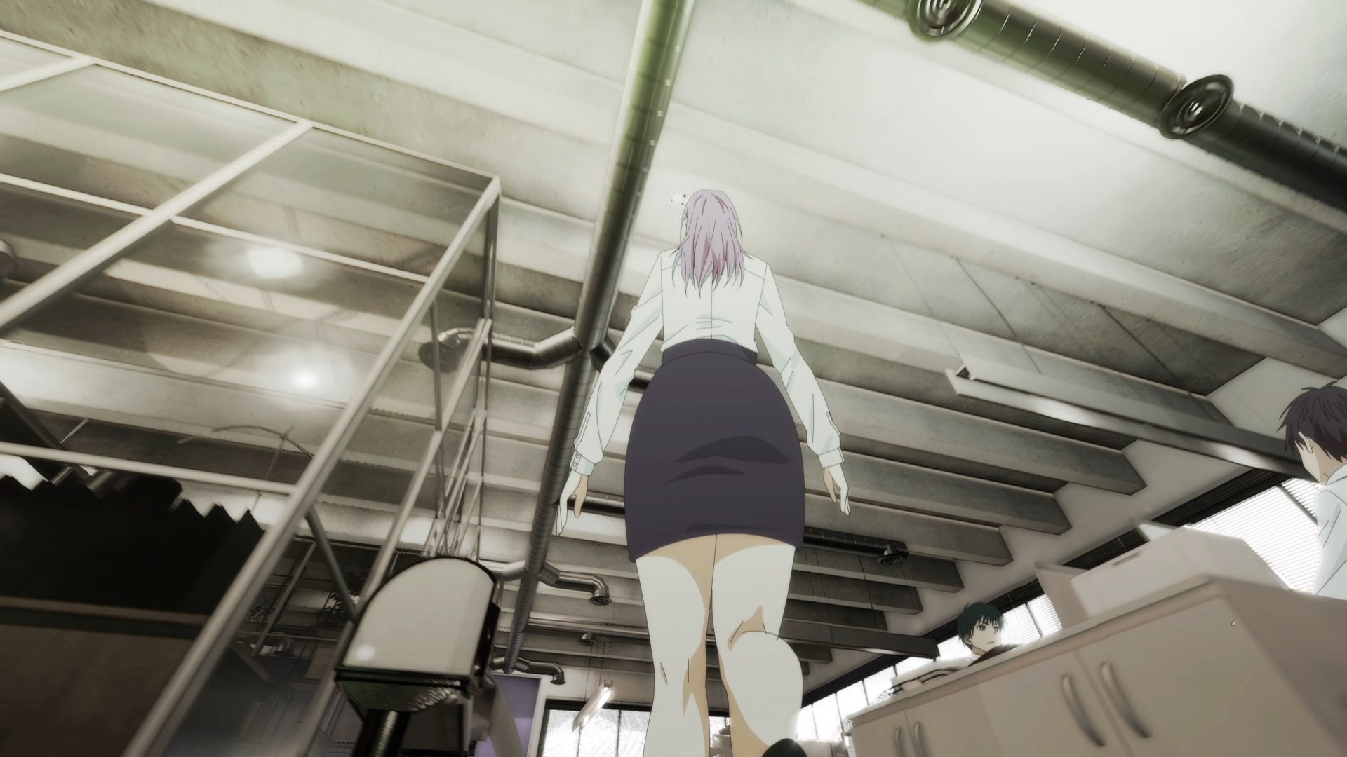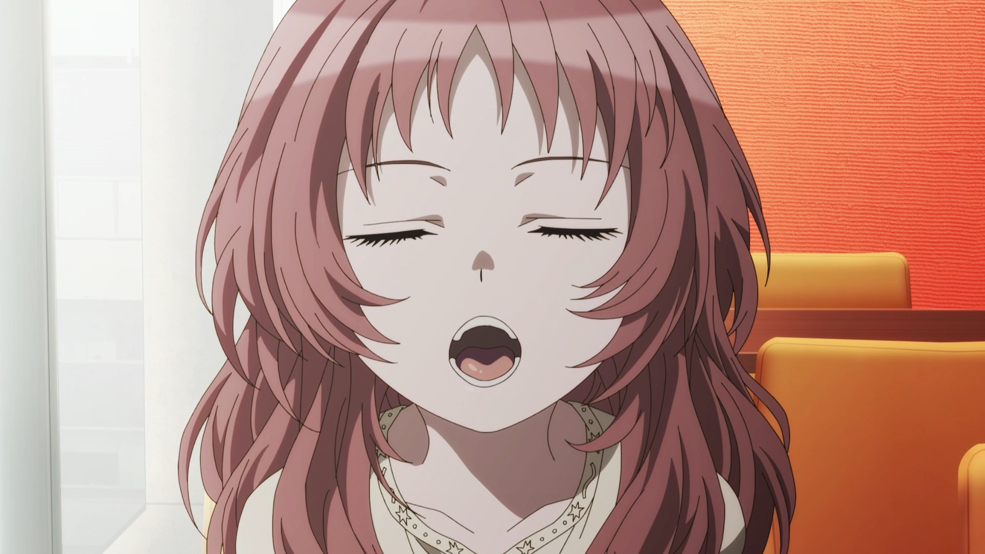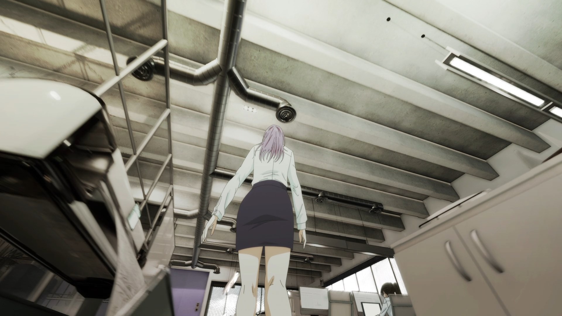 3D с кошмарными текстурами, фото с хуевыми фильтрами, кислотные цвета с аберрациями, странная анимация, ебанутая камера, фокус на анимации волос героини, при этом разные их слои живут своей независимой жизнью и вообще своим движением волосы мало напоминают. Но самое забавное, что при всей своей хреновости эта анимация все равно трудозатратная почти настолько же, как если бы она была нормальной - так что сомневаюсь, что дальше нас ей будут часто "радовать"(а жаль, очень смешно). Из неироничных плюсов - крупные планы с милыми мордочками героини и ее сейю.