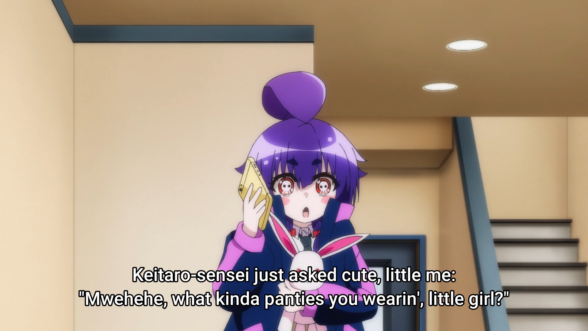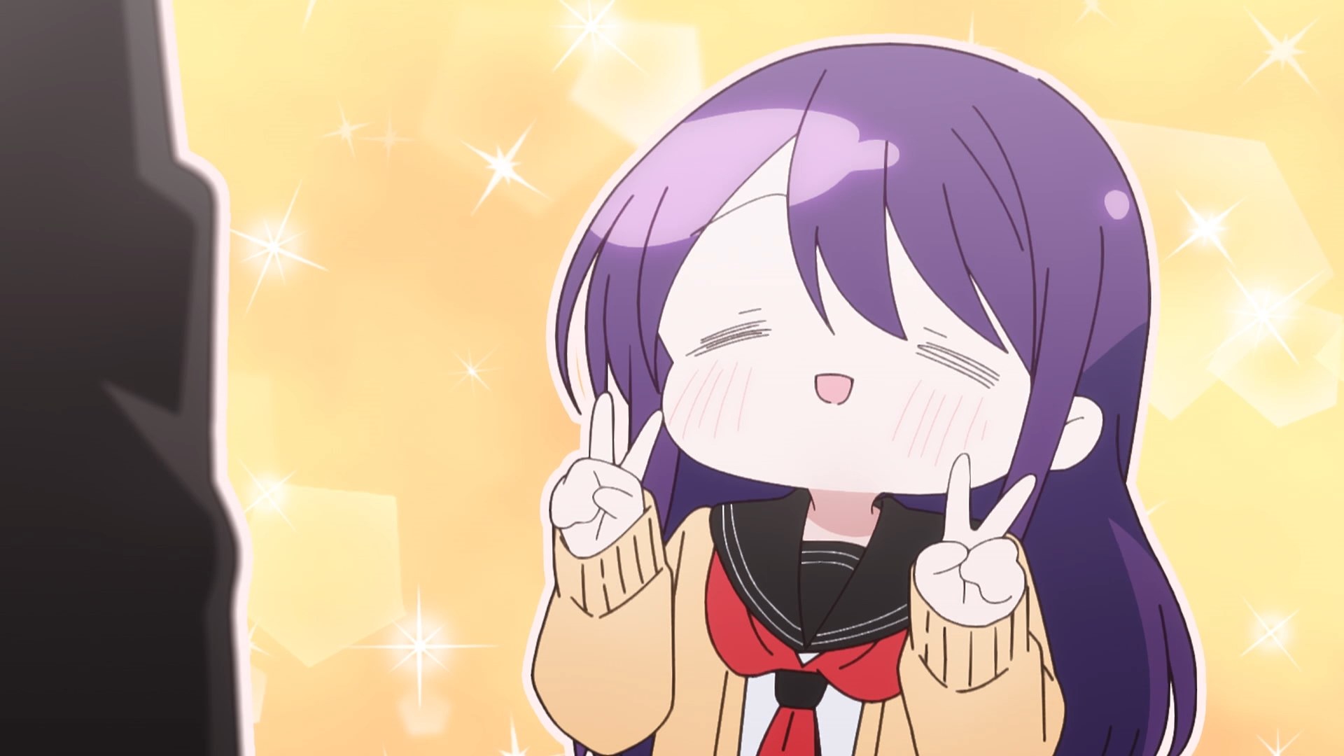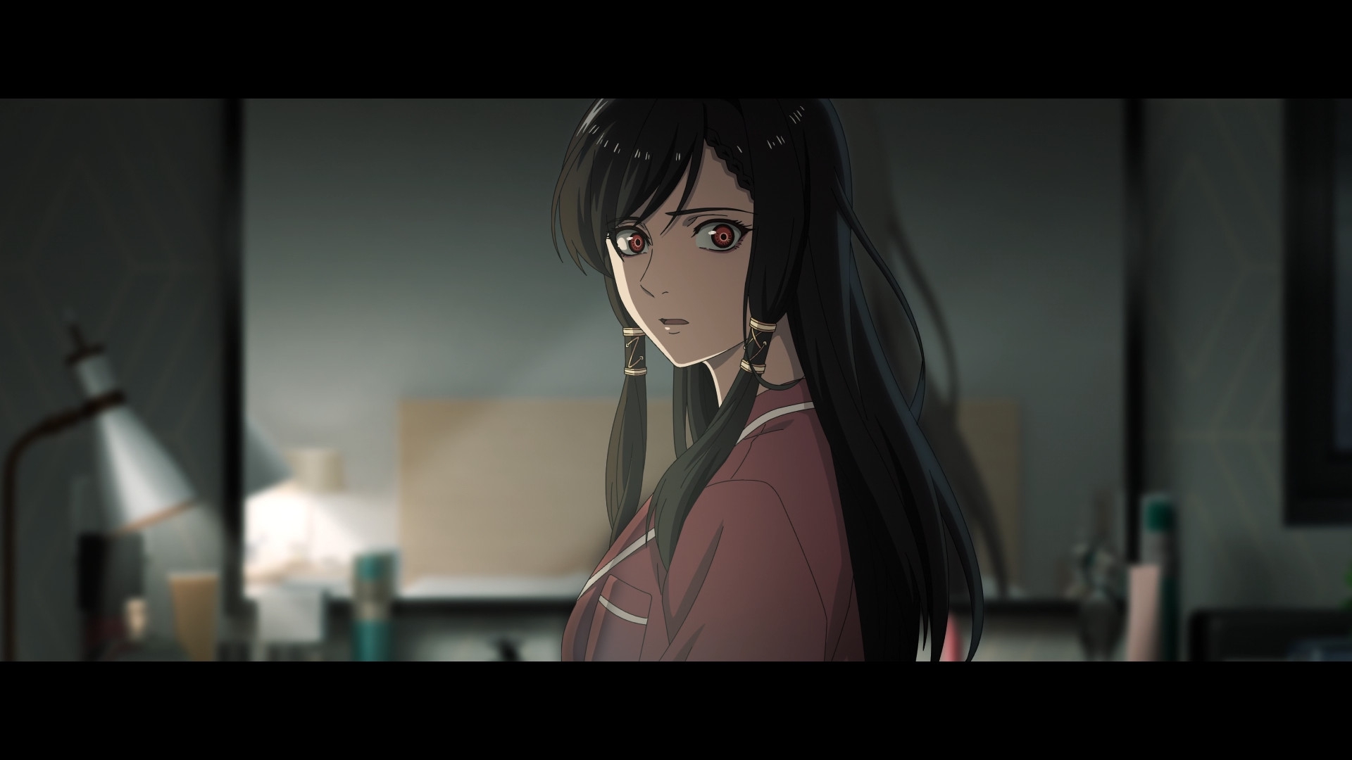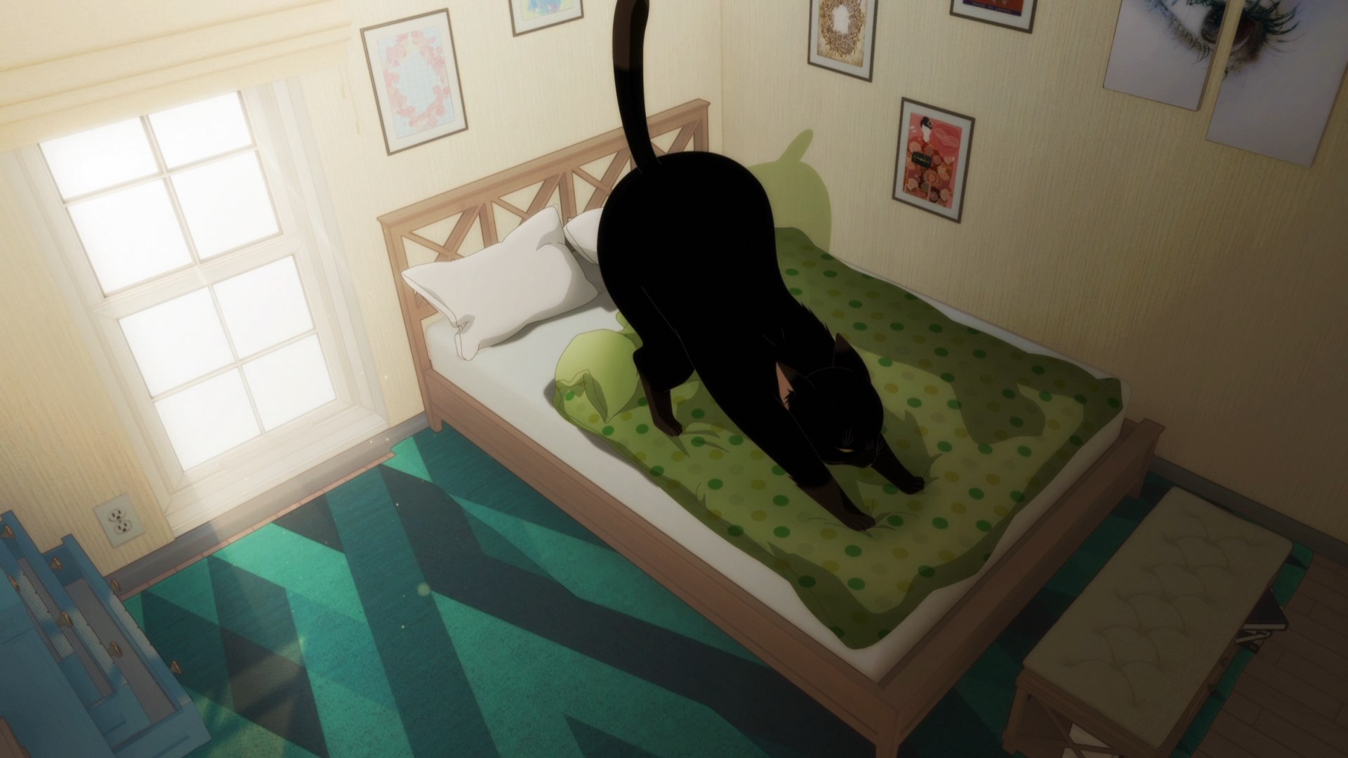 3D с кошмарными текстурами, фото с хуевыми фильтрами, кислотные цвета с аберрациями, странная анимация, ебанутая камера, фокус на анимации волос героини, при этом разные их слои живут своей независимой жизнью и вообще своим движением волосы мало напоминают. Но самое забавное, что при всей своей хреновости эта анимация все равно трудозатратная почти настолько же, как если бы она была нормальной - так что сомневаюсь, что дальше нас ей будут часто "радовать"(а жаль, очень смешно). Из неироничных плюсов - крупные планы с милыми мордочками героини и ее сейю.