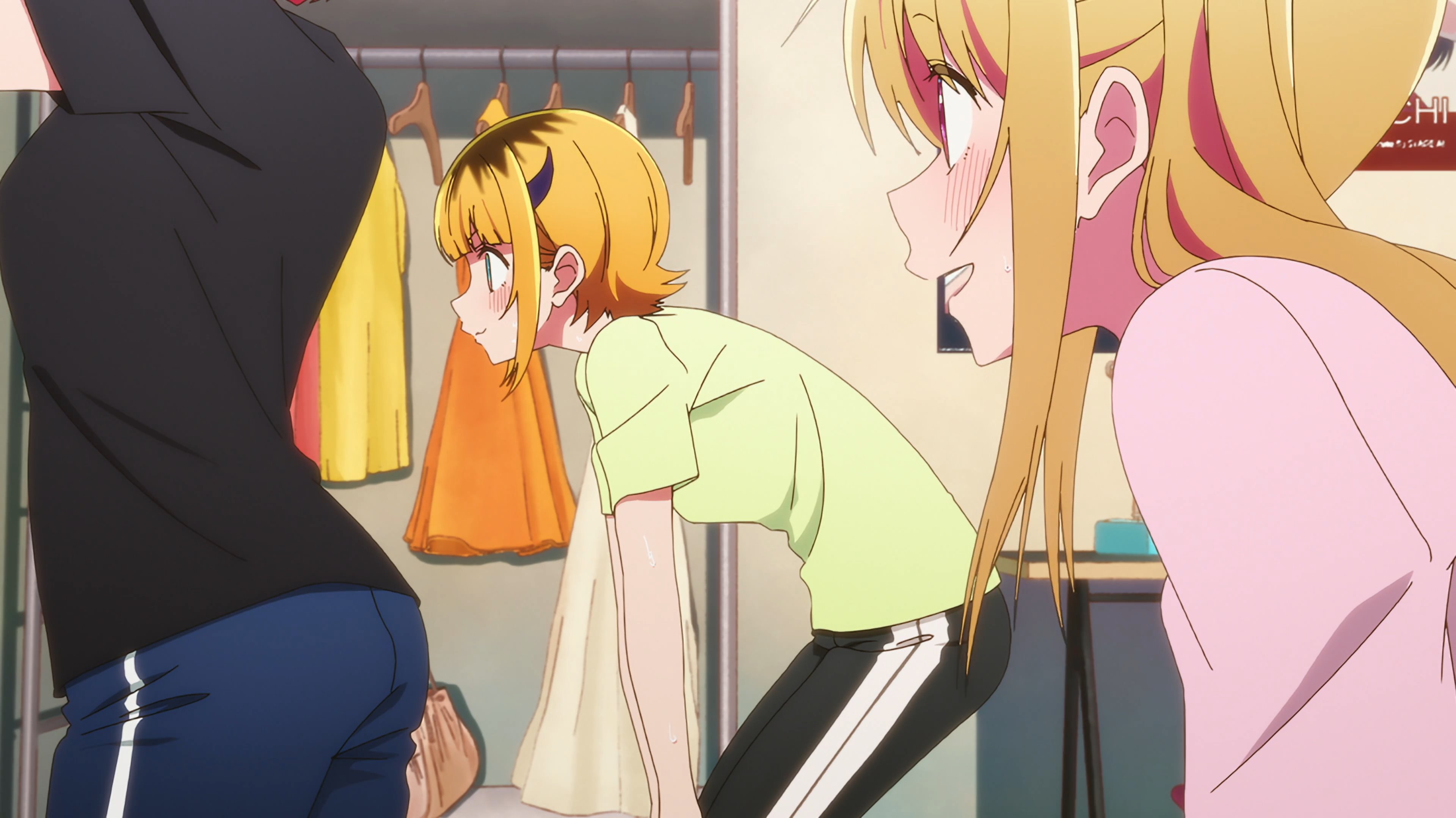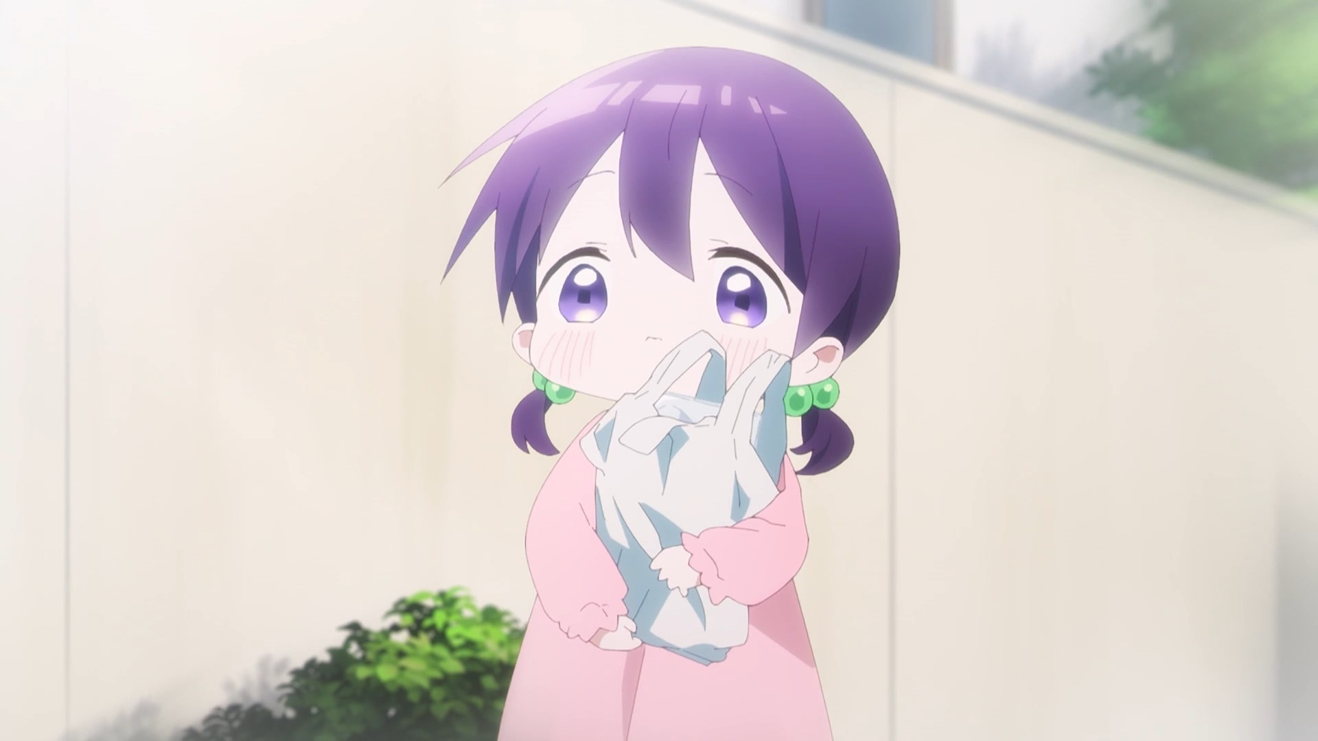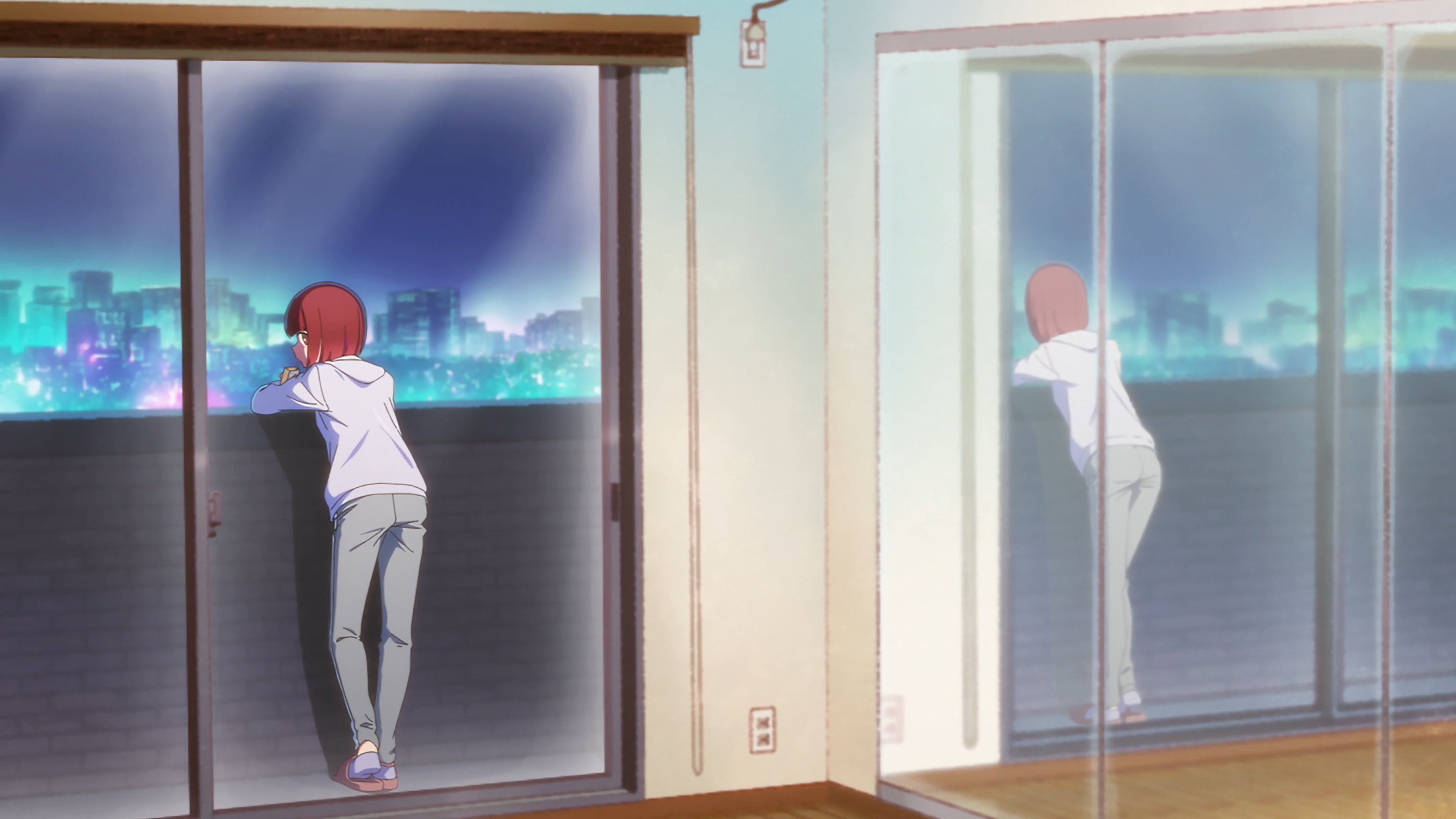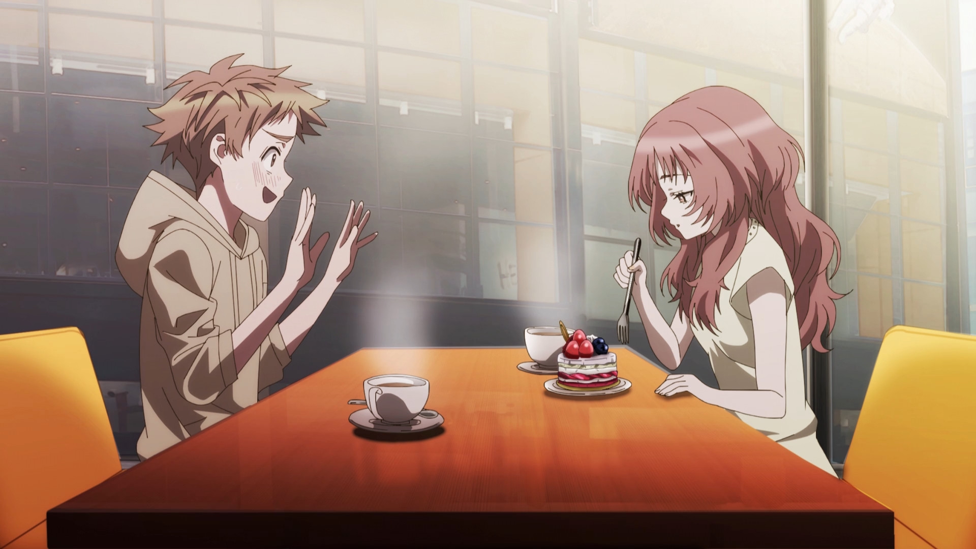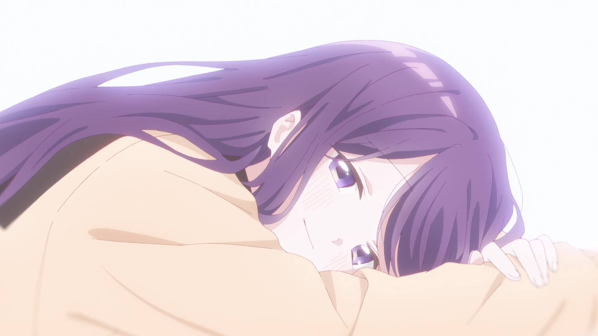 3D с кошмарными текстурами, фото с хуевыми фильтрами, кислотные цвета с аберрациями, странная анимация, ебанутая камера, фокус на анимации волос героини, при этом разные их слои живут своей независимой жизнью и вообще своим движением волосы мало напоминают. Но самое забавное, что при всей своей хреновости эта анимация все равно трудозатратная почти настолько же, как если бы она была нормальной - так что сомневаюсь, что дальше нас ей будут часто "радовать"(а жаль, очень смешно). Из неироничных плюсов - крупные планы с милыми мордочками героини и ее сейю.