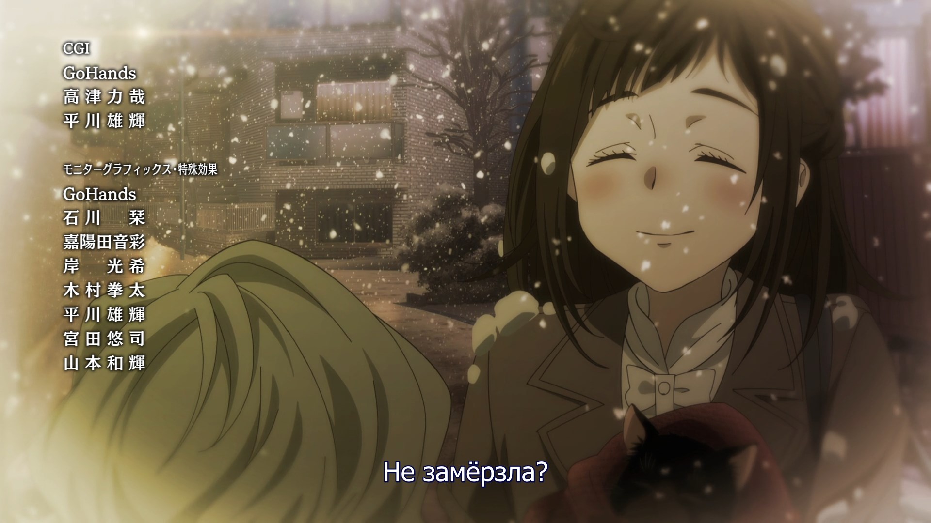 Аниме уютное, девочки милые, эльфиича хочется замаморить от всех ужасов внешнего мира. Только вот эти исторические вставочки, да еще и рассказываемые чуть ли не цитатами из википедии, впихнуты в повествование порою слишком уж топорно. Эндинг еще отличный, хотя меня всю дорогу не покидало ощущение, что мелодию частично слямзили с Every Breath You Take Стинга и ко.