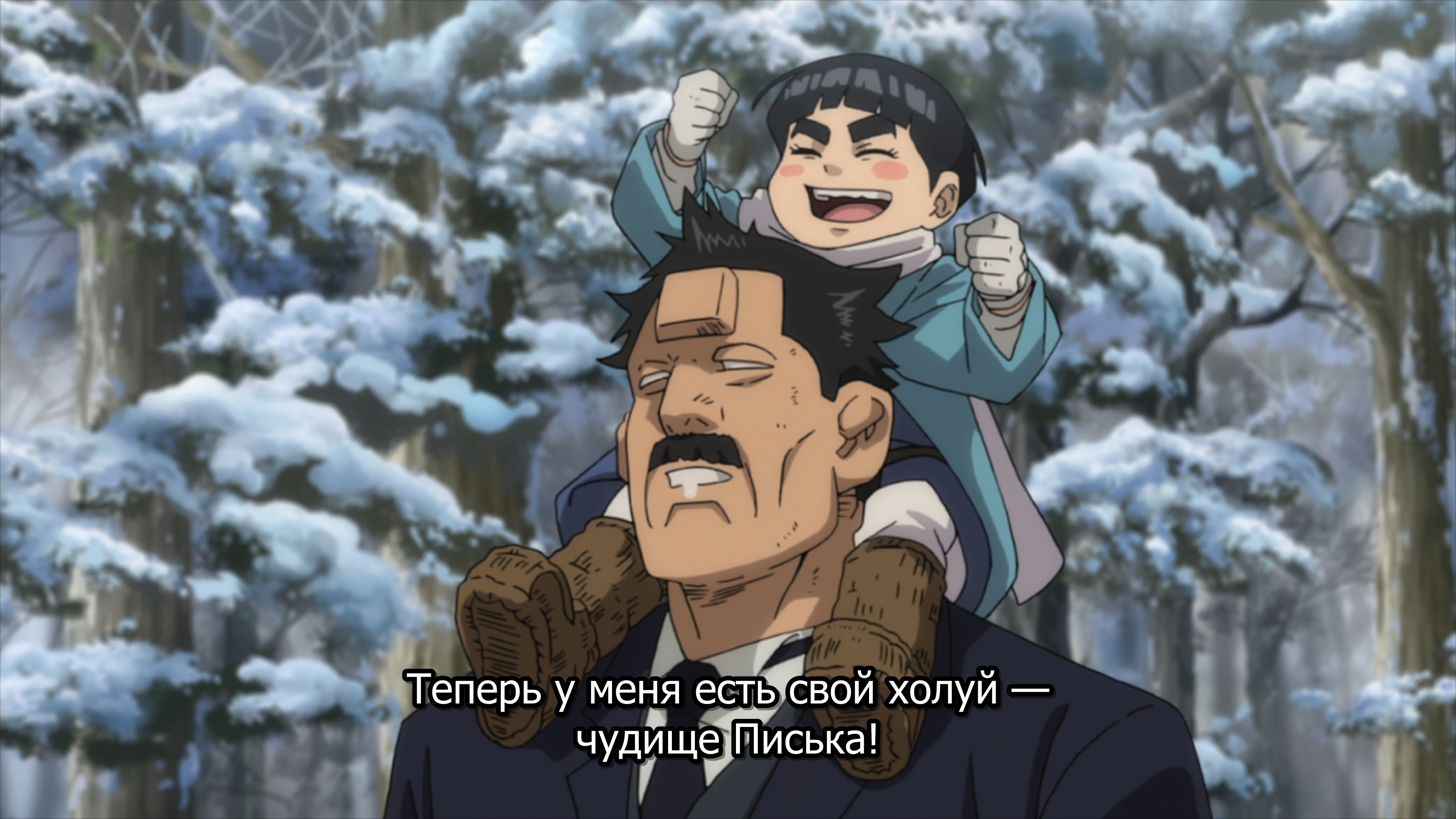 По ощущениям даже более разгрузочный и подготовительный сезон чем прошлый. Флешбеки, чуть ли не филлерные истории... очевидно всю движуху припасли на финал. Ну а так - вернулся Дед, стало больше Цуруми, Сугимото с малой наконец-то воссоединились (по одиночке, к сожалению, они не тянут, только в тандеме), Усами прям раскрылся в весьма занятного перца, ну и бывший смотритель оказался реально отличным персонажем, напомнившем мне Мистера Розового (который Бушеми) из Бешенных псов. забавно будет, если он в конце выживет, а его напарники нет Ну и Камуй до сих пор способен меня по хорошему удивлять, потому что спермодуэль... бля, это охуенно. Разве что абсолютно безобразная серия с Танигаки и его овуляхой, где у меня прям было отчетливое ощущение, что я какую-то нарутку смотрю, особенно когда поперли пафосные разговоры о добре и справедливости. Вот вообще не в духе сериала. Все же как персонаж он слишком нормис среди всех этих поехов, поэтому и история у него какая-то приземленная. Ну и на примере Цуруми видно, что автор начинает топать проторенной дорожкой - сначала ты делаешь охуенного расчетливого злодея, а потом, когда приходит пора светлой стороне восторжествовать, начинаешь его отуплять, чтобы у добрышей были хоть какие-то шансы (вспомним Лайта и взгрустнем).8/10