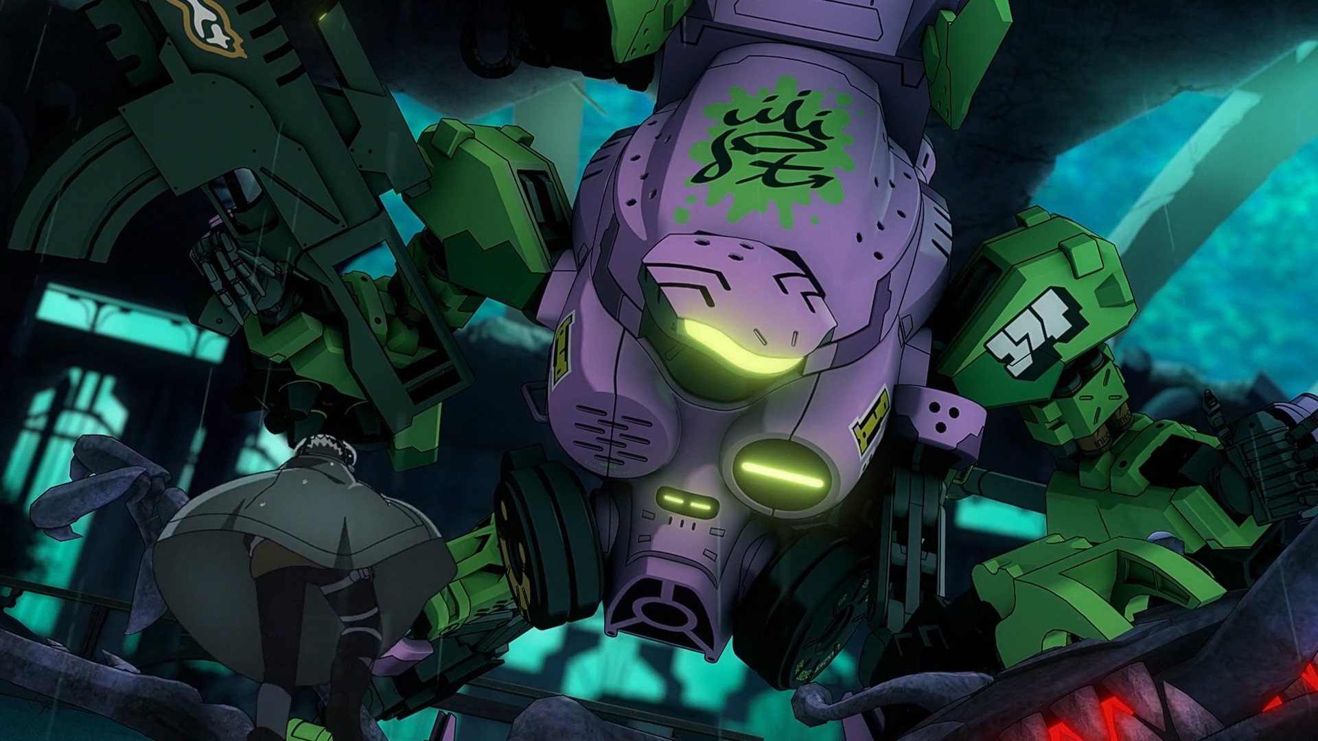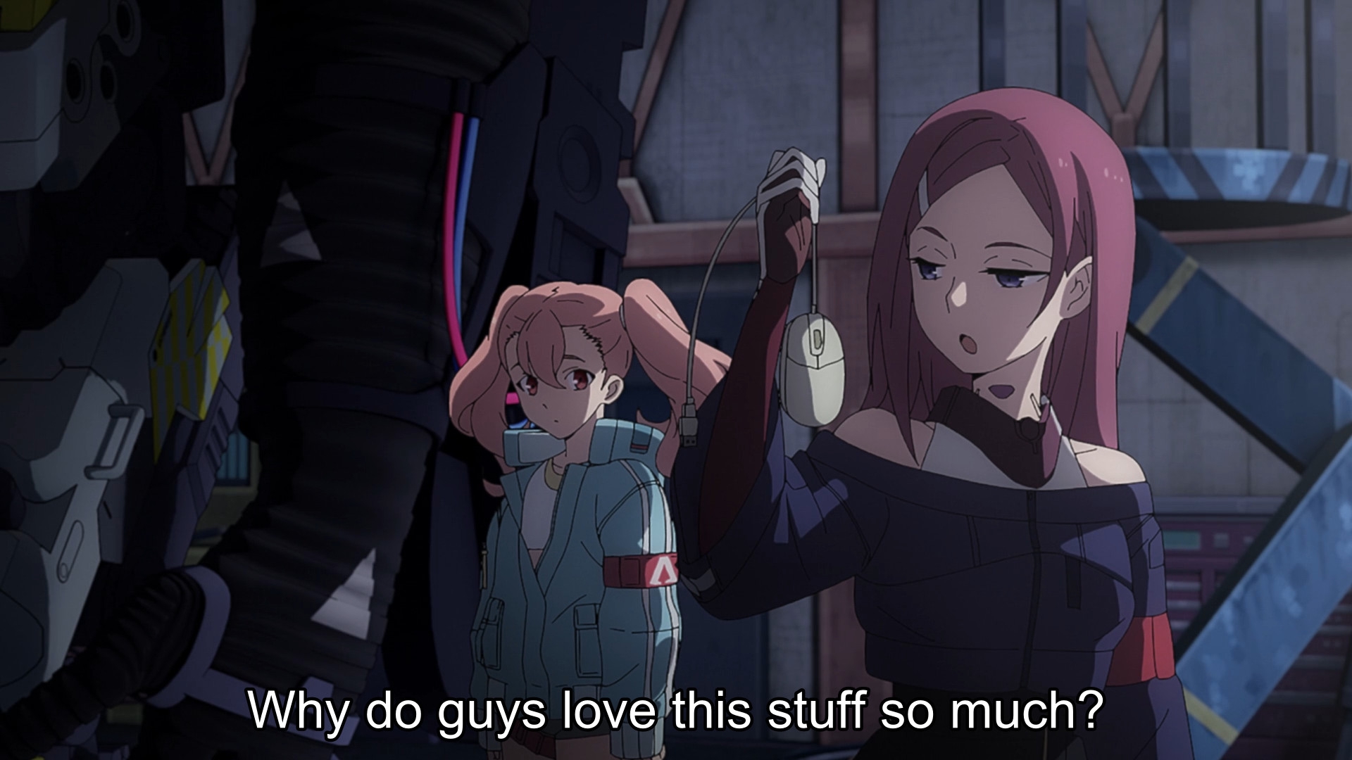 Если всё-таки что-то выделять, то: 1)Бронеходы - тяжёлые. Они реально двигаются как такая йоба-массивная техника. Смотреть как один робот отрывает другому кабину пилота рукой просто кайф, в отличие от унылых перестрелок. 2)Здесь есть арка про типа вьетнамскую войну, но с роботами и вместо гуков партизаны в греческих туниках. 3)Это аниме одновременно суровое и какое-то наивно-придурошное одновременно: Нам нужно достать Кирико из тюрьмы! Как это сделать? Мы возьмём гигантский газовый резак, который должны тащить 2 человека и просто прорежем себе путь сквозь стены, трубы и тд до камеры Кирико. Разумеется, их не запалили. Или когда Кирико чуть не пизданули байкеры в начале, когда на нём ещё маячок от военных висел. Военные видят, что он в опасности, орбитальный спутник стреляет в угрозу. В башке преследователя спереди появлятся маленькая дырочка, потолок цел. Мало того, Кирико абсолютно срать не произошедшее, у него даже мысли о снайпере не промелькнуло. Ещё нельзя забывать про то, что в армиях двух враждующих космодержав служил один мужик на одинаковых постах и при этом он ВООБЩЕ никак не шифровался и даже имя не меня. 4)Мне понравился Кирико. После современных соплежуев этот чувак смотрится очень свежо. Умеет думать и решать проблемы, не ведётся на рофляночки местных клоунов и просто продолжает молча программировать робота. В конце вместо пиздежа в богом-компьютером или бесполезной, но пафосной стрельбы в говорилку/мониторы побежал вырубать ячейки питания, а чтобы добраться до его ядра очень хорошо отыграл промывку в мозгов и в своих без колебаний стрелял, пусть и не на поражение. Ещё серии про его ПТСР очень понравились. Вообще, тайтл очень антивоенный в хорошем смысле. Не "ряяя людей убивать плоха", а про поломанную психику с телом, стигматизацию участников боевых действий, последствия разрушений и загрязнений, отдалённые территории, которым никто не поможет, невозможность строить хоть немного долгосрочные планы на жизнь и то, что в итоге от войн устают даже машины государств-инициаторов. Блять, самый счастливый человек этого тайтла - торговец оружием. Он единственный, кто получал профит из всех ситуаций в сериале и был на чилле. У военных кислое ебало, а он потирая ручки продаёт боеголовки. Там нет никакий углублений в эти темы, но для боевика без претензий пойдёт, я считаю. 7/10
