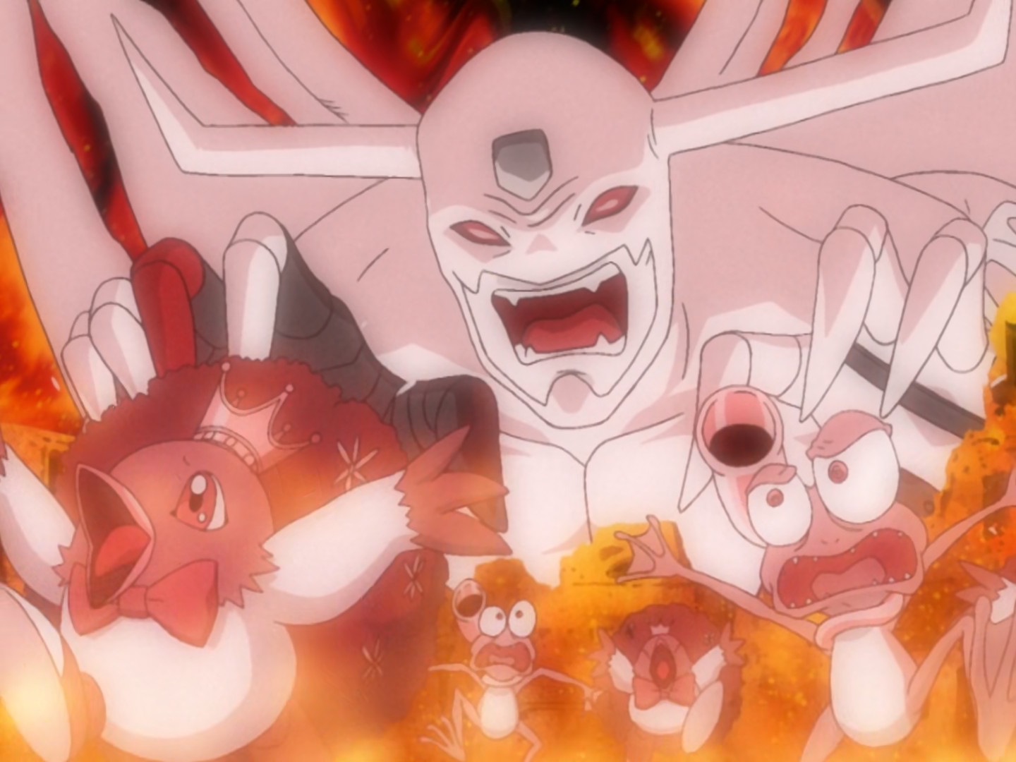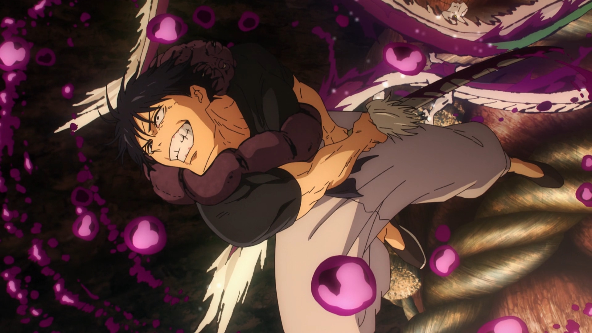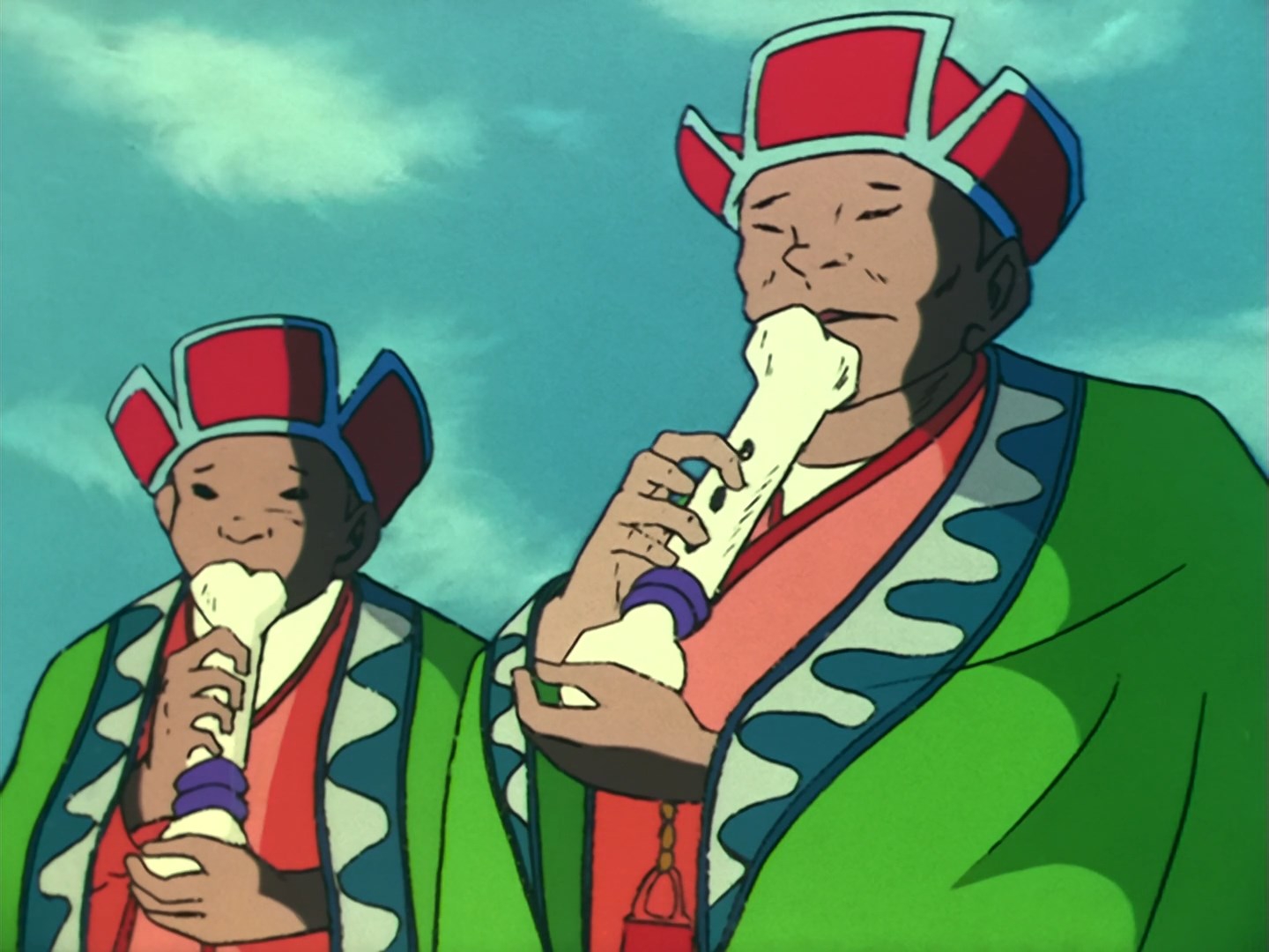 Что-то прям жуткие серии пошли. Танцующие мертвяки, тибетские монахи играющие на человеческих костях, птицы-людоеды...и целая куча убийств. В первой половине тайтла даже мимокроков почти не убивали, если что.
