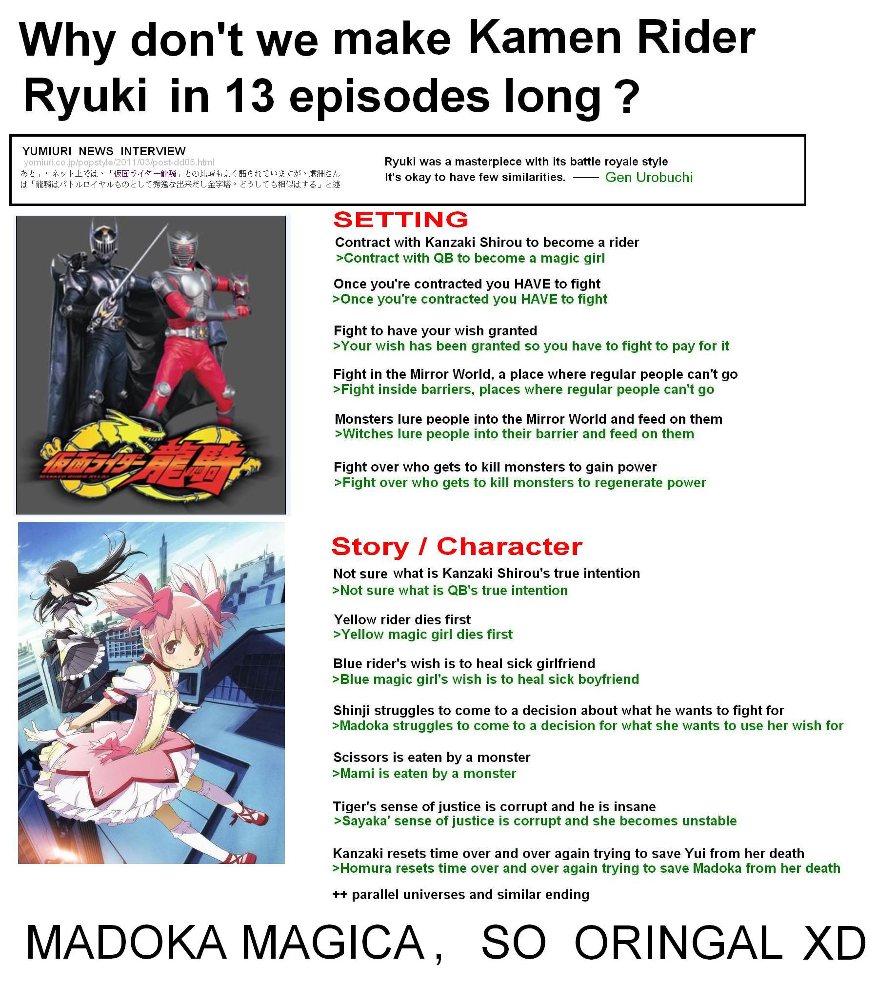 >>176725 Ну у тебя и примеры конечно. Мне кажется это всё же немного иное. А зачем? Да потому что могут. Как не крути, а жанр всё равно развивается, чтобы выкачивать японские шекели из фанатов. Вспоминается тот график где каждые 16 лет индустрия создаёт нечто новое. Там был Астробой, Гандам, Ева и Мадока. Может так и дальше продолжится и к 2027 году что-то новое придумают. Меха-махо-исекай какой-нибудь.