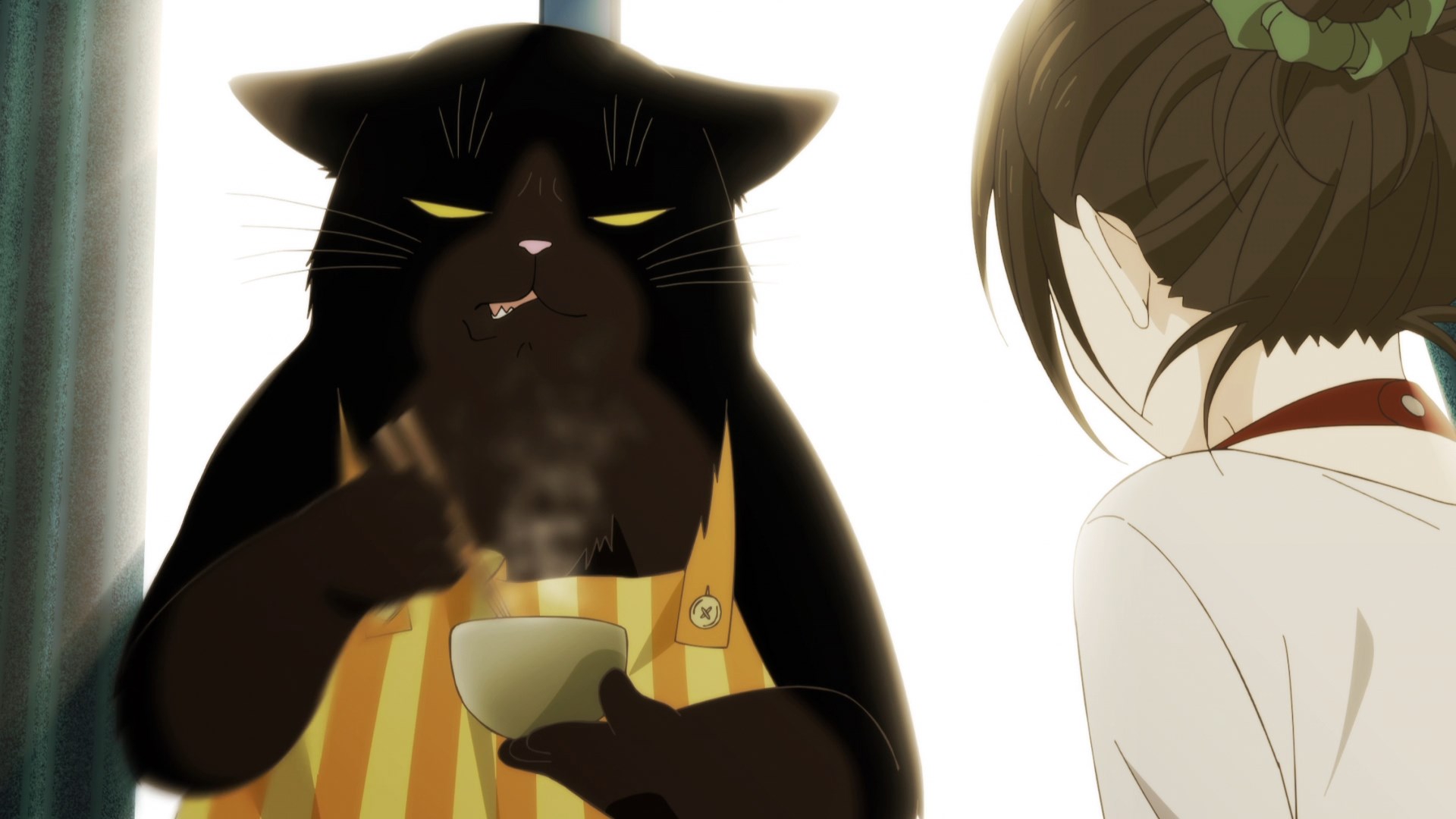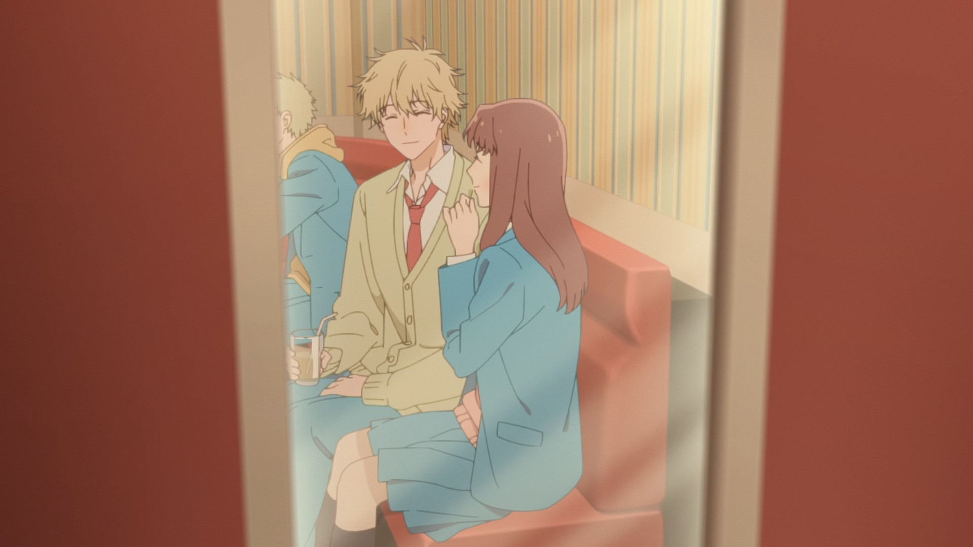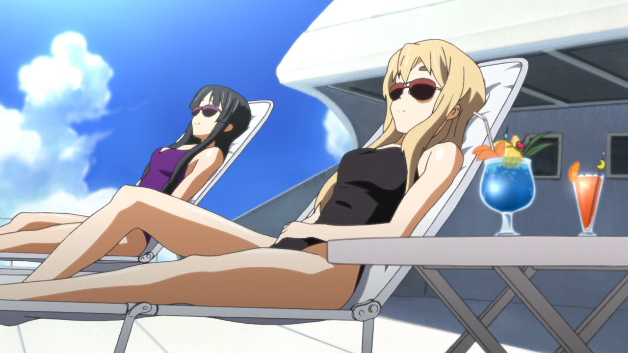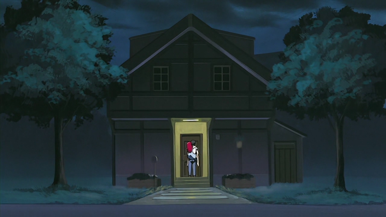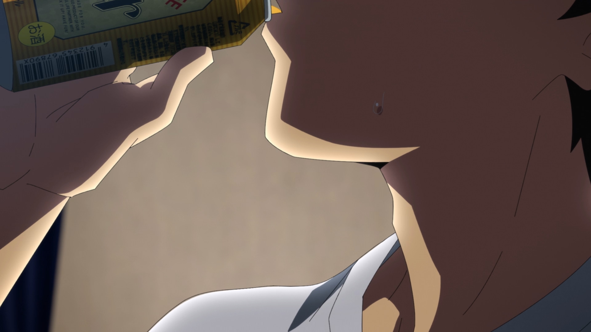Забавно, что первая половина эпизода - такая более стилизованная и неанатомичная, хотя казалось бы - эпизод в летней пляжной кафешке. Немного похоже на имаишевский стиль, особенно анимация, но не он.