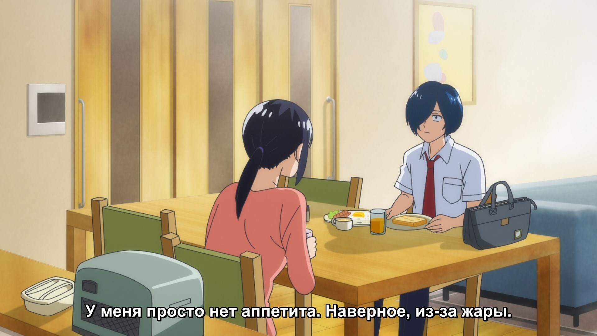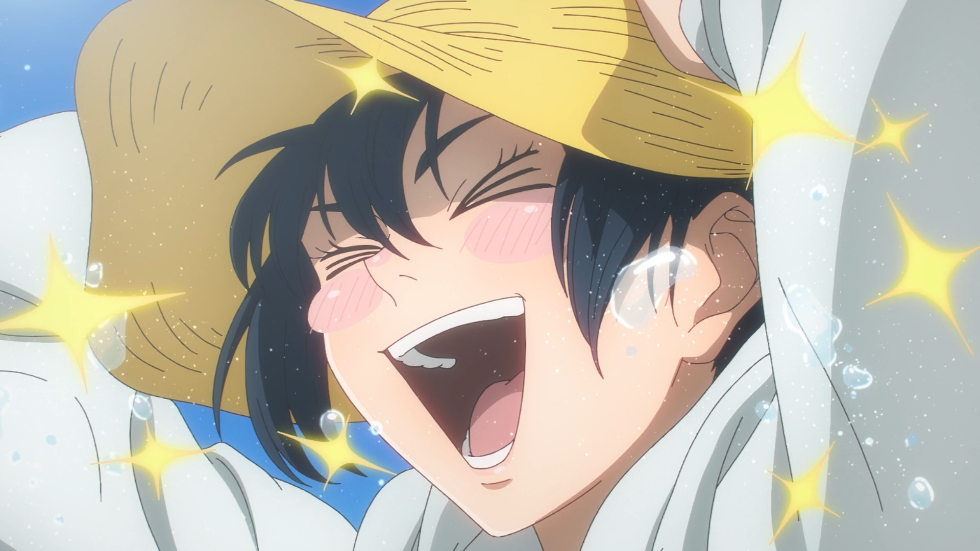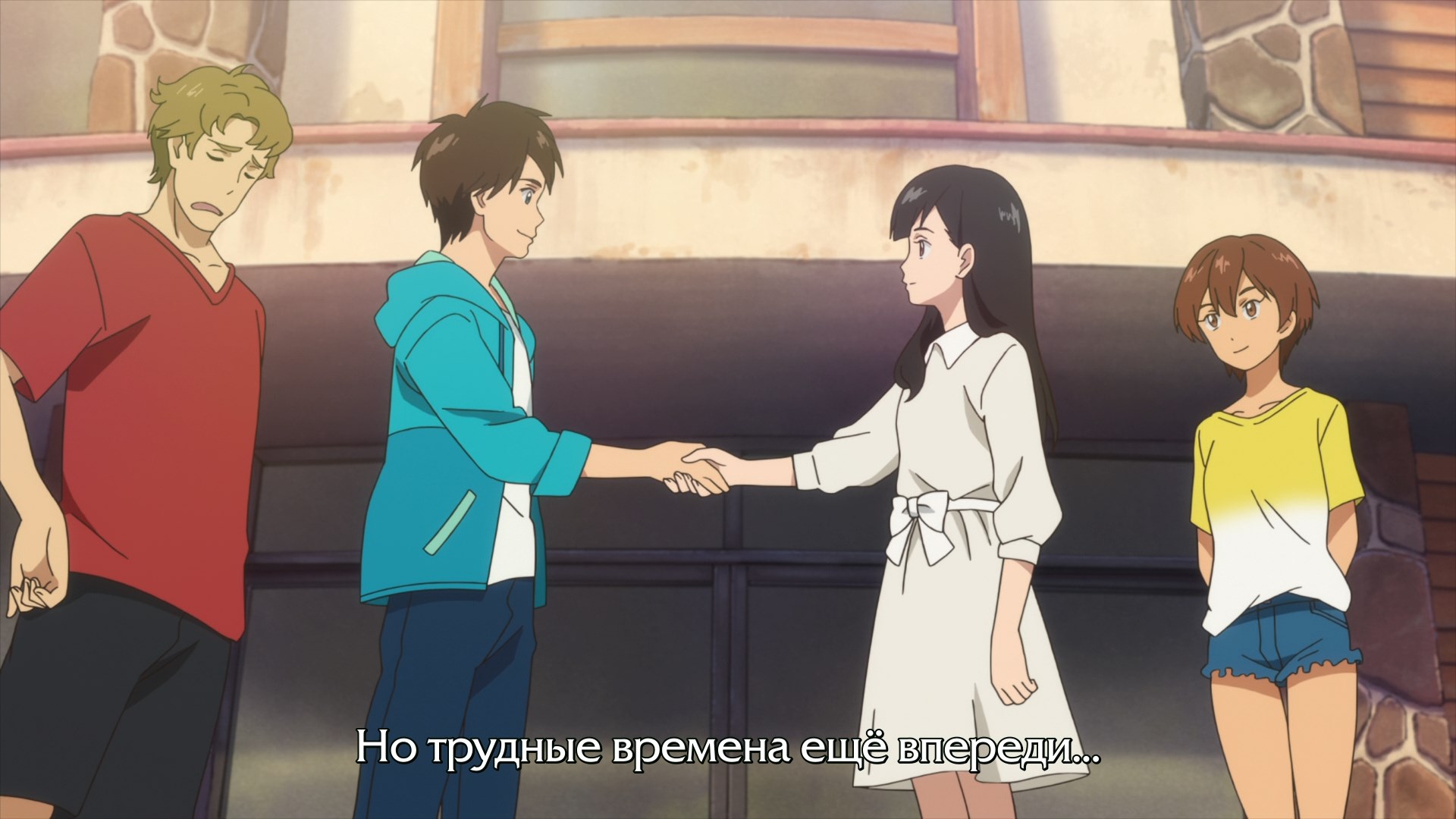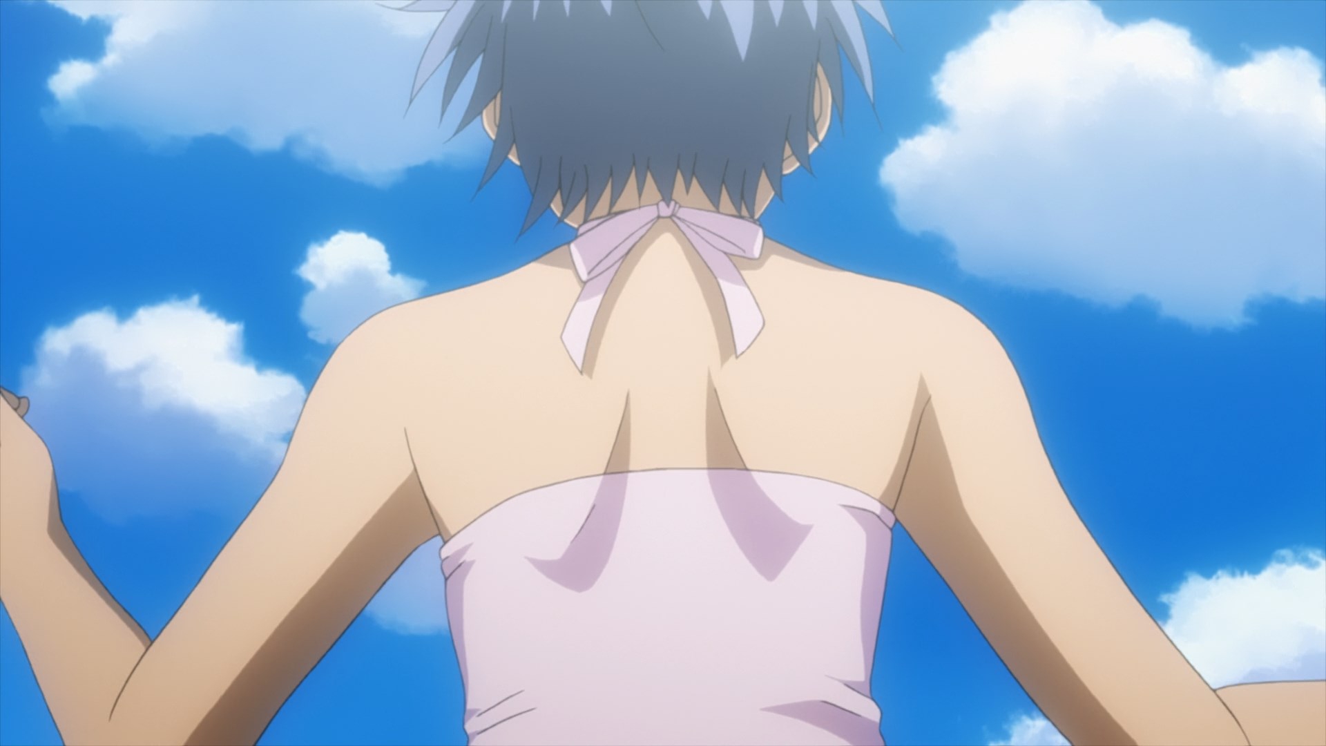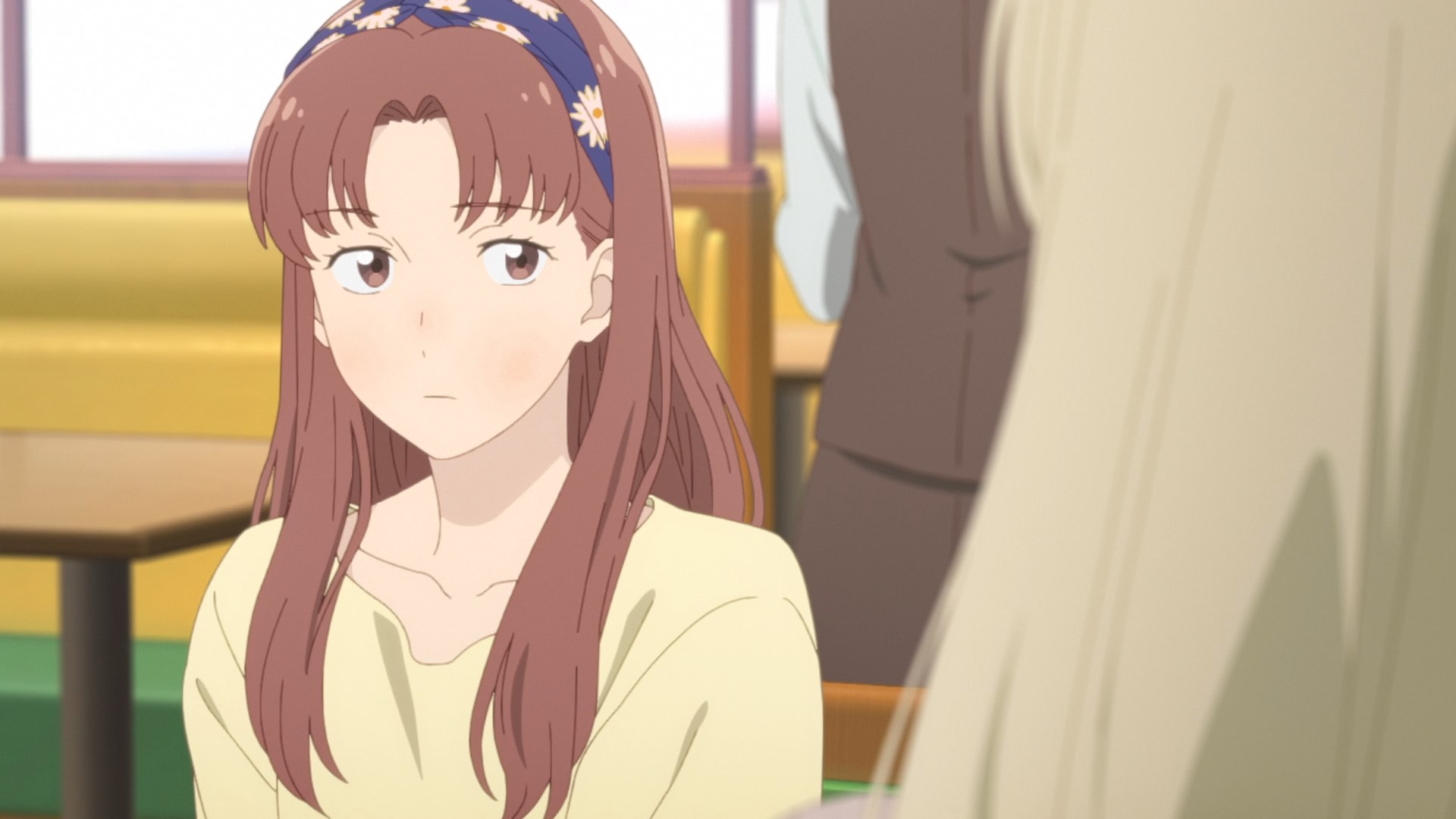Забавно, что первая половина эпизода - такая более стилизованная и неанатомичная, хотя казалось бы - эпизод в летней пляжной кафешке. Немного похоже на имаишевский стиль, особенно анимация, но не он.